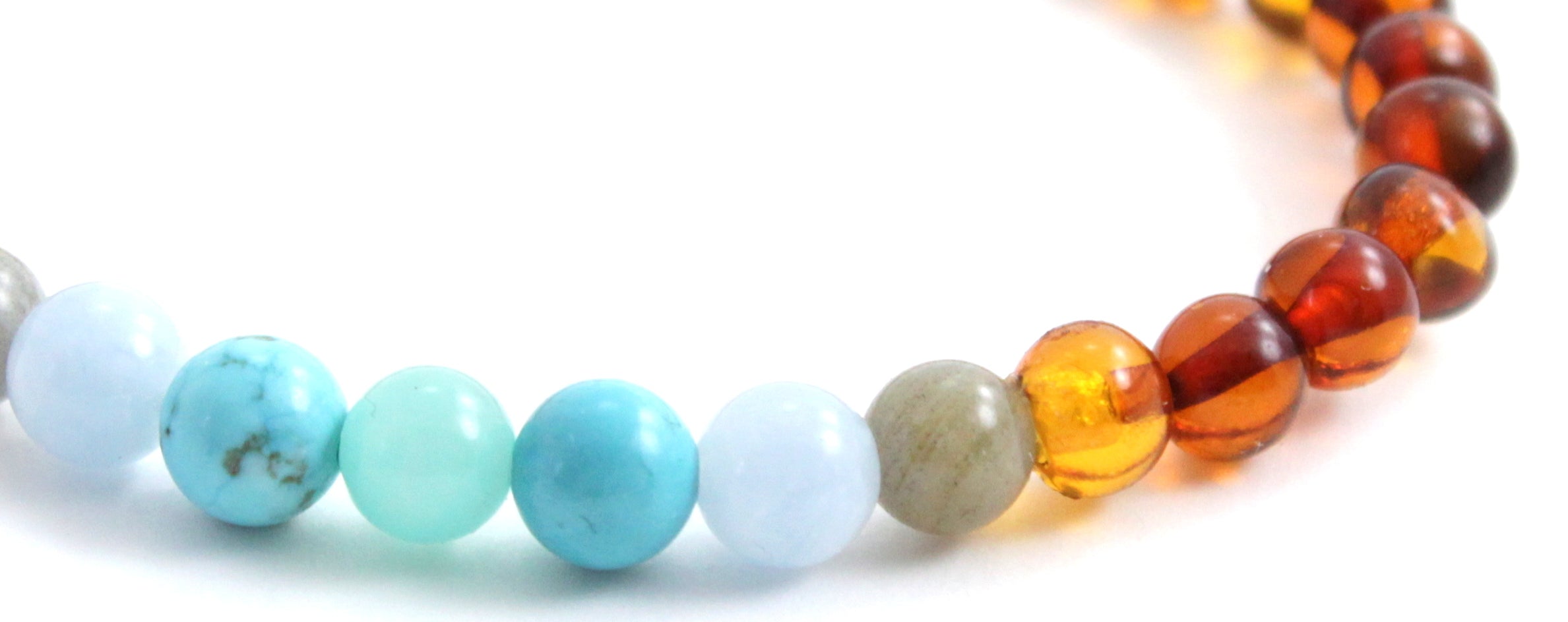 Bead Diameter: ~5 mm (Baltic Amber) and ~6 mm (Gemstones); Amber Color: Cognac (Brown); Amber Bead Surface: Polished; Bracelet Weight: ~6 g (18 cm); Gemstone Beads: Labradorite (Gray),... Read more