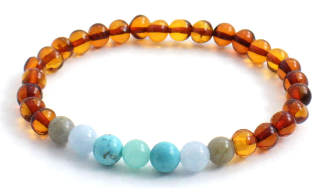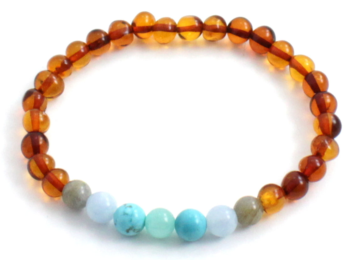 Amber Adult Cognac Stretch Bracelet With Aquamarine and Gems