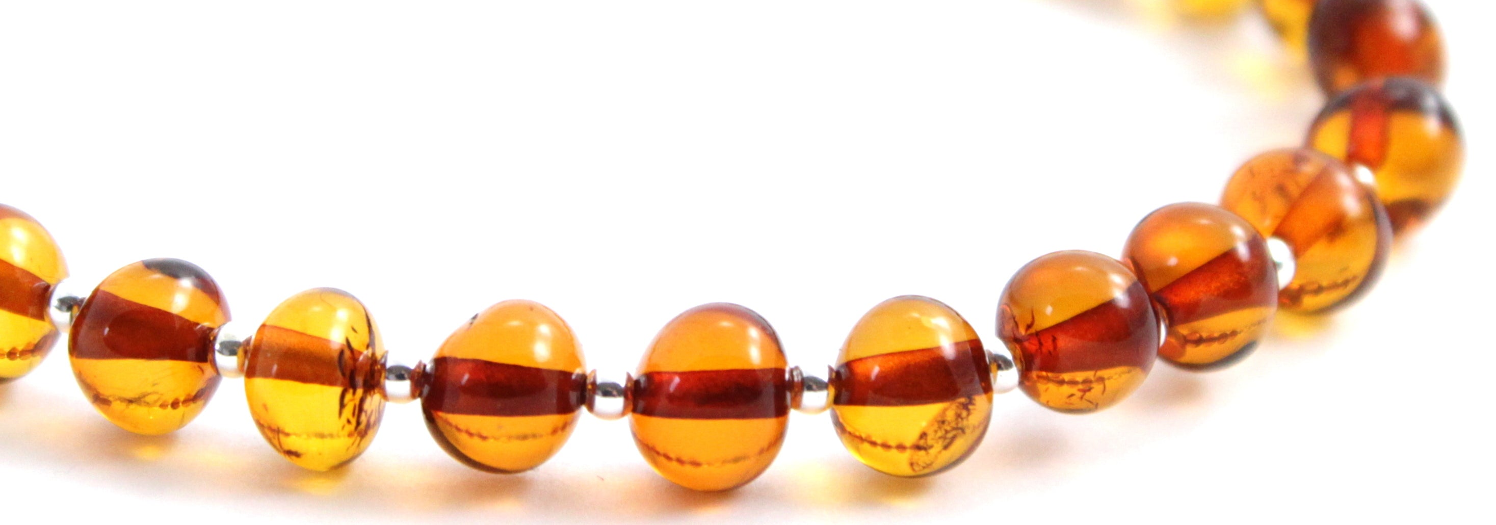 Grade of Silver: Sterling .925; Bracelet Weight: ~7 g (18 cm); Closure: Lobster Claw (from Sterling Silver); Amber Bead Surface: Polished; Amber Bead Shape: Oval... Read more