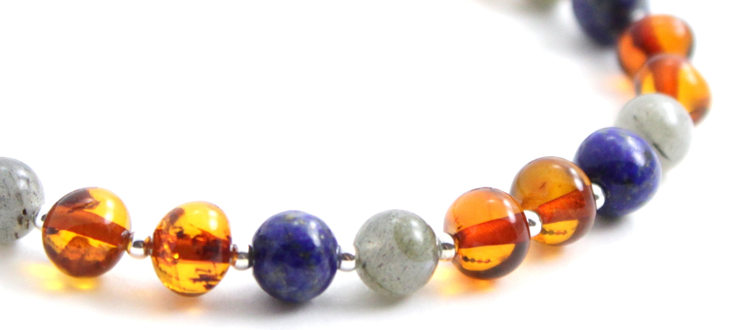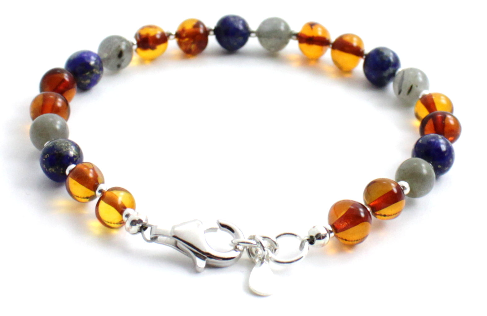 Cognac Amber Bracelet – Sterling Silver, Labradorite & Lapis Lazuli