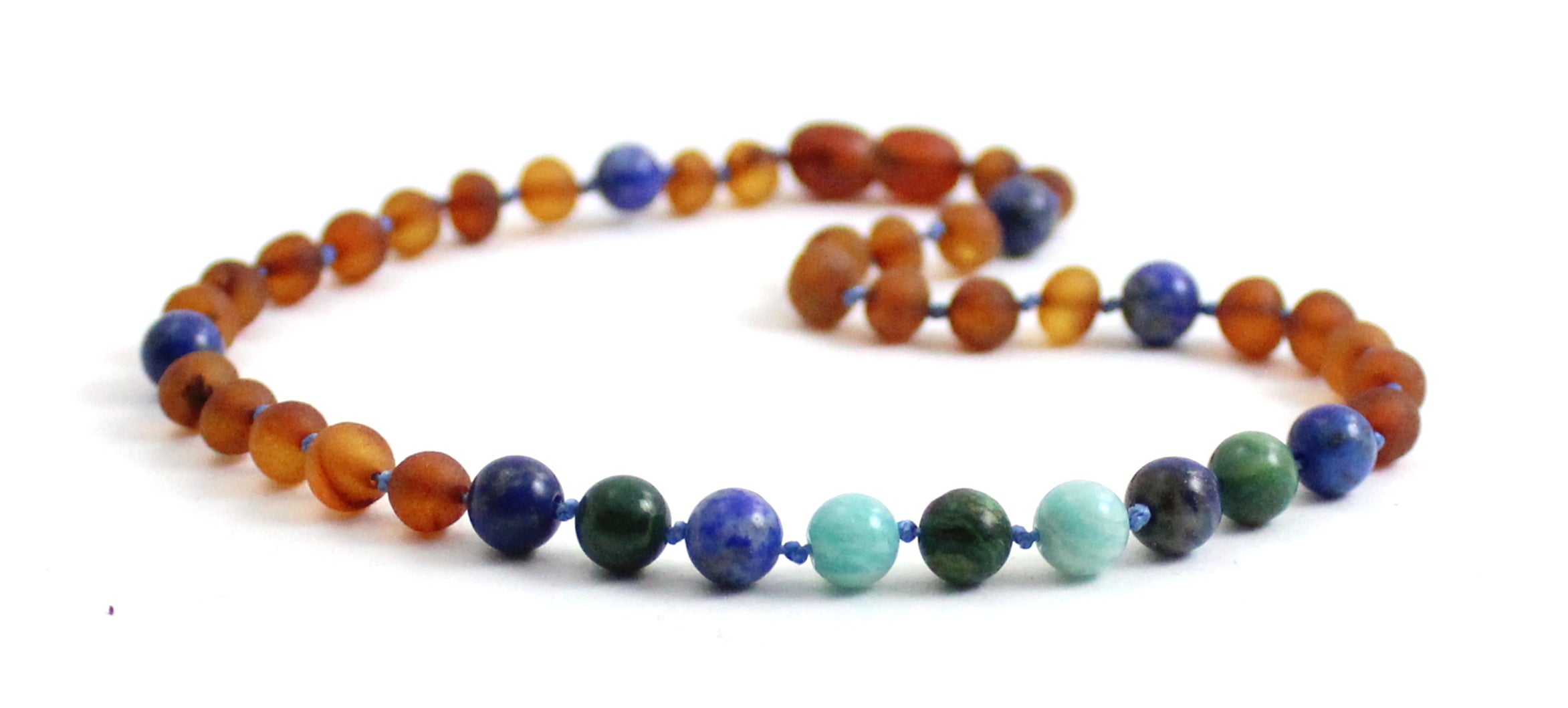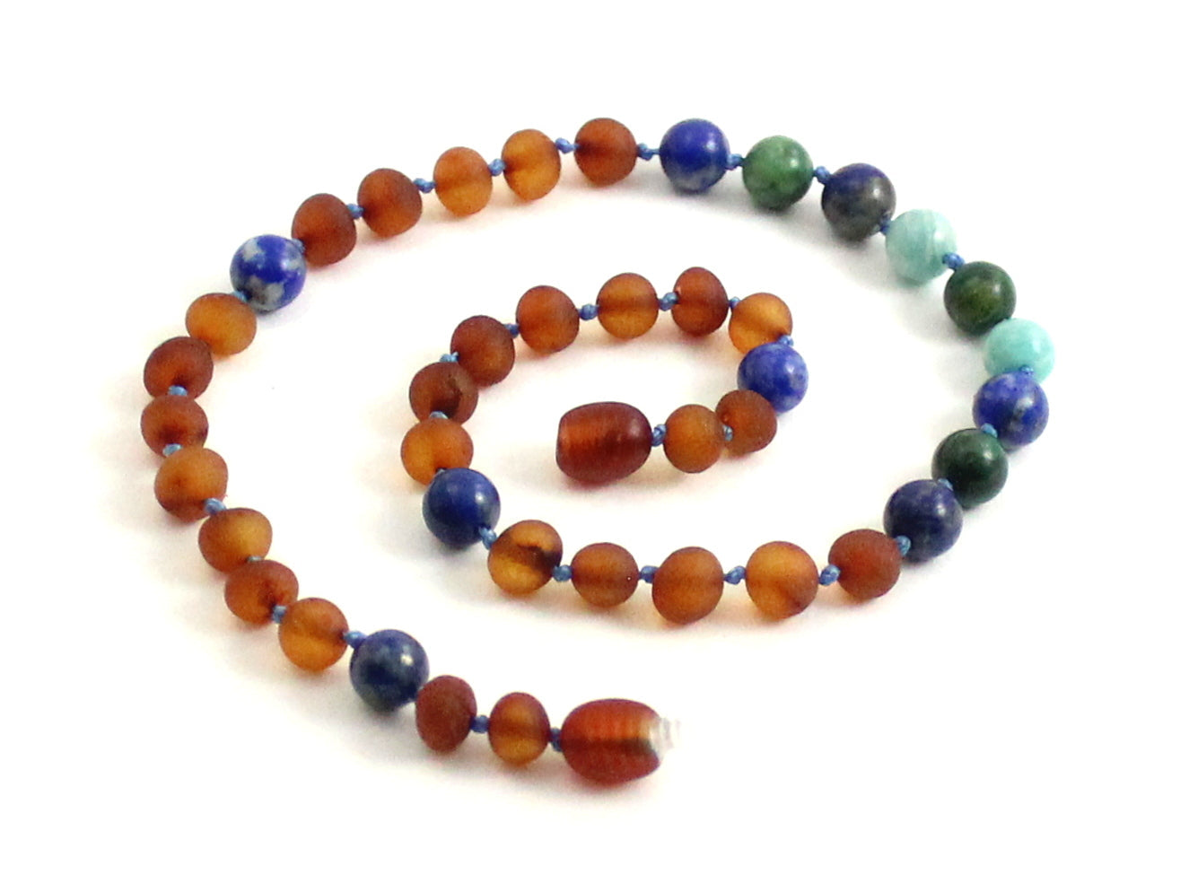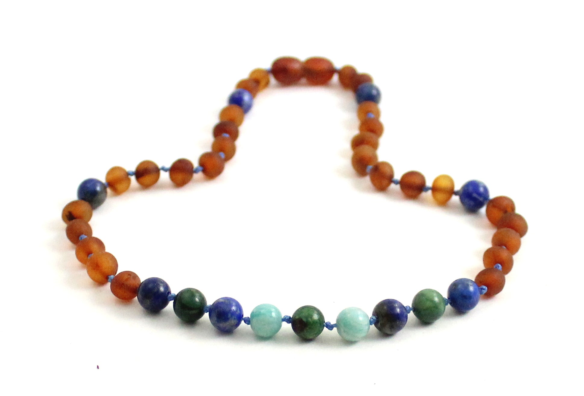 Raw Cognac Amber Necklace – Lapis Lazuli, Jade & Amazonite