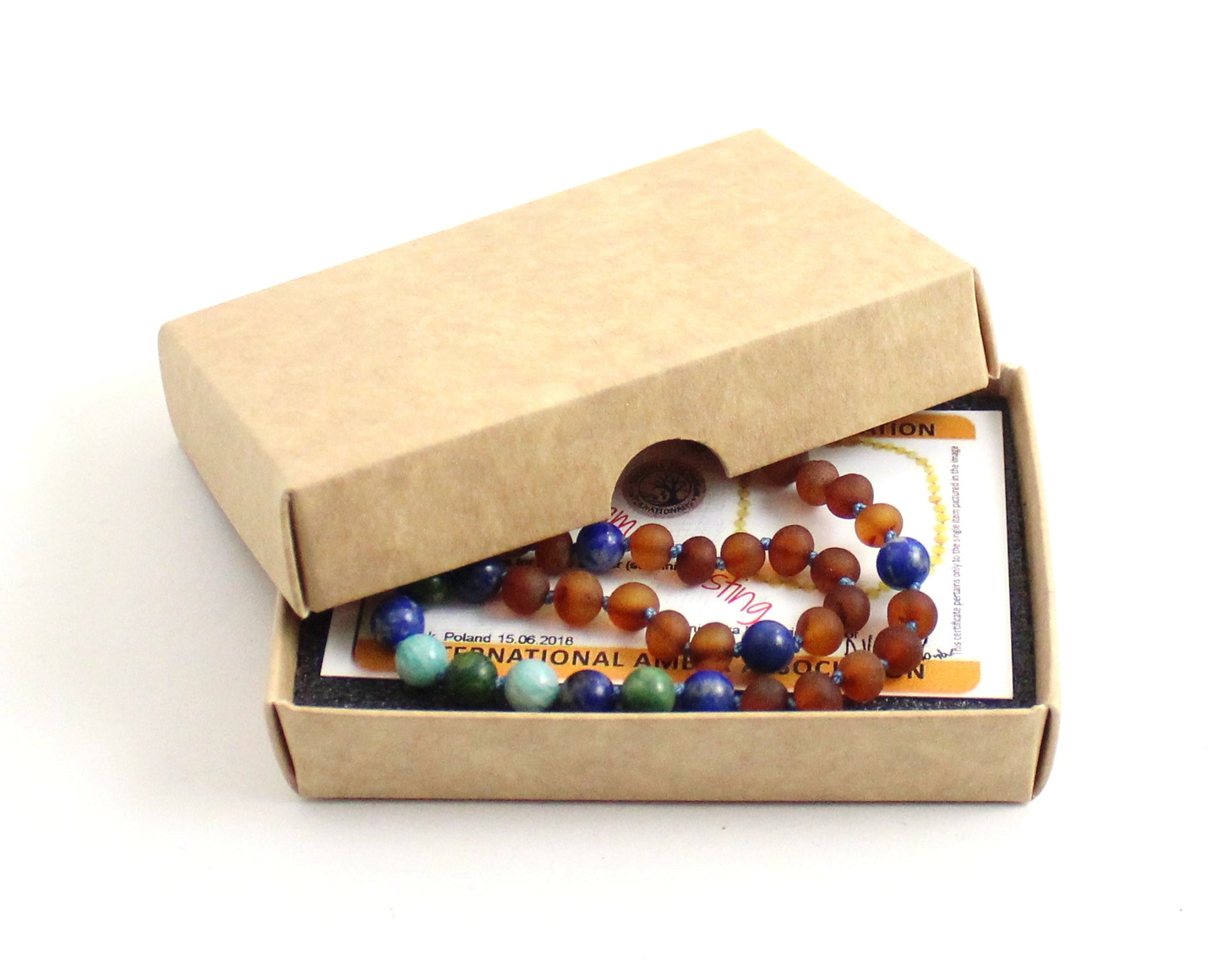 Bead Diameter: ~3-5 mm (Baltic Amber), ~6 mm (Gemstones); Amber Bead Surface: Raw; Gemstone Beads: Lapis Lazuli (Blue), African Jade (Dark Green) and... Read more
