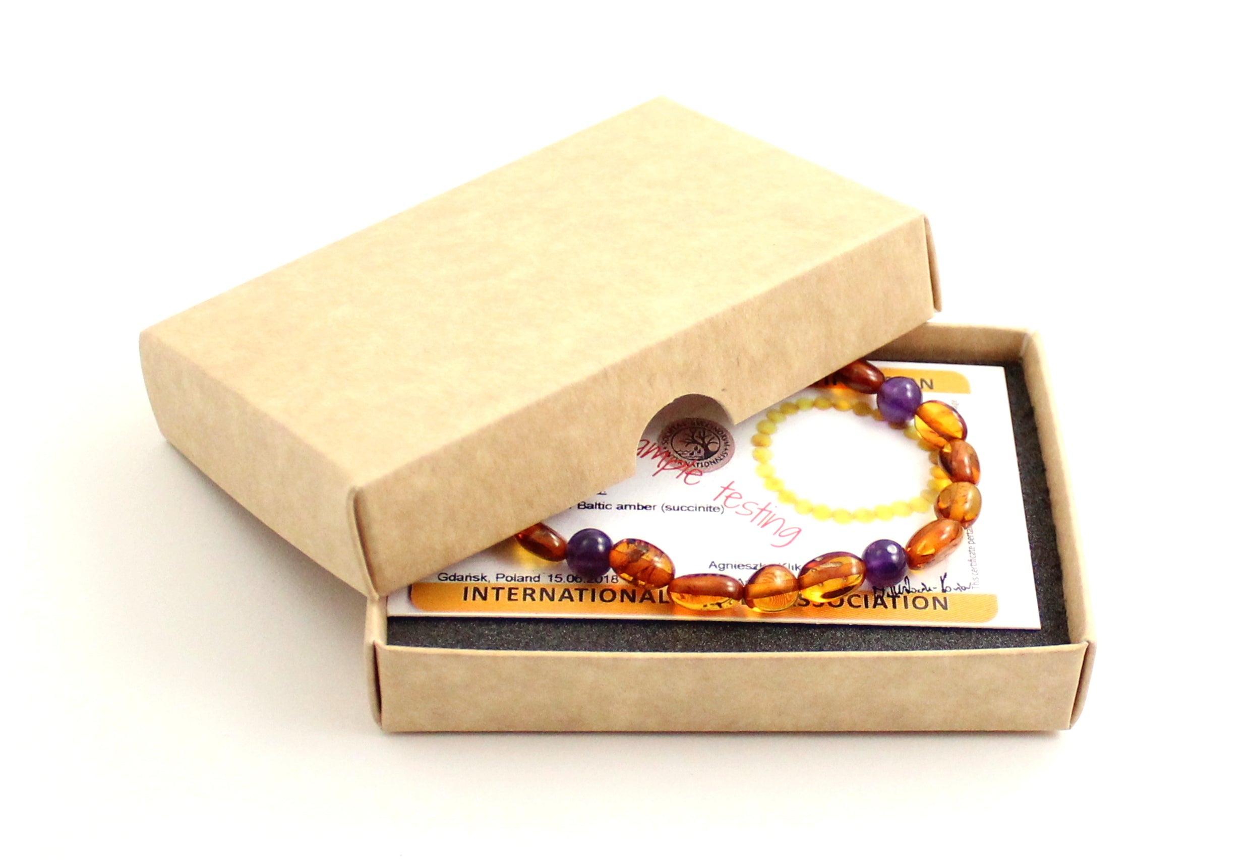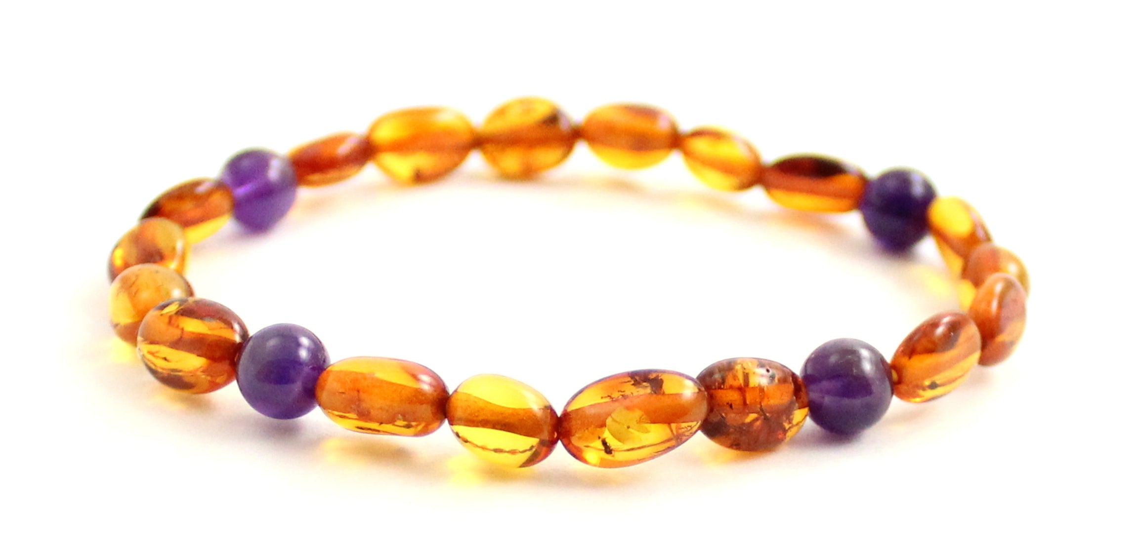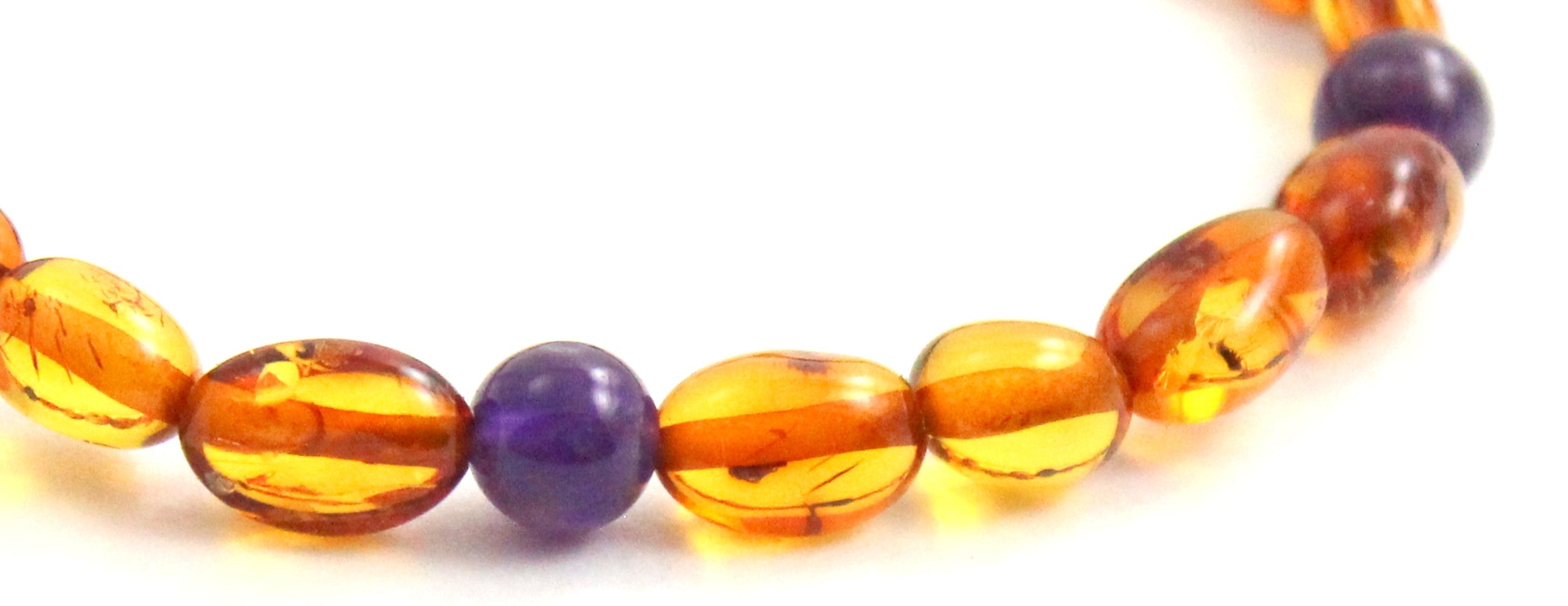 Bead Diameter: ~5 mm (Baltic Amber) and ~6 mm (Amethyst); Amber Color: Cognac (Brown); Bracelet Weight: ~6 g (18 cm); Gemstone Beads: Amethyst (Violet); Amber Bead Shape: Oval... Read more