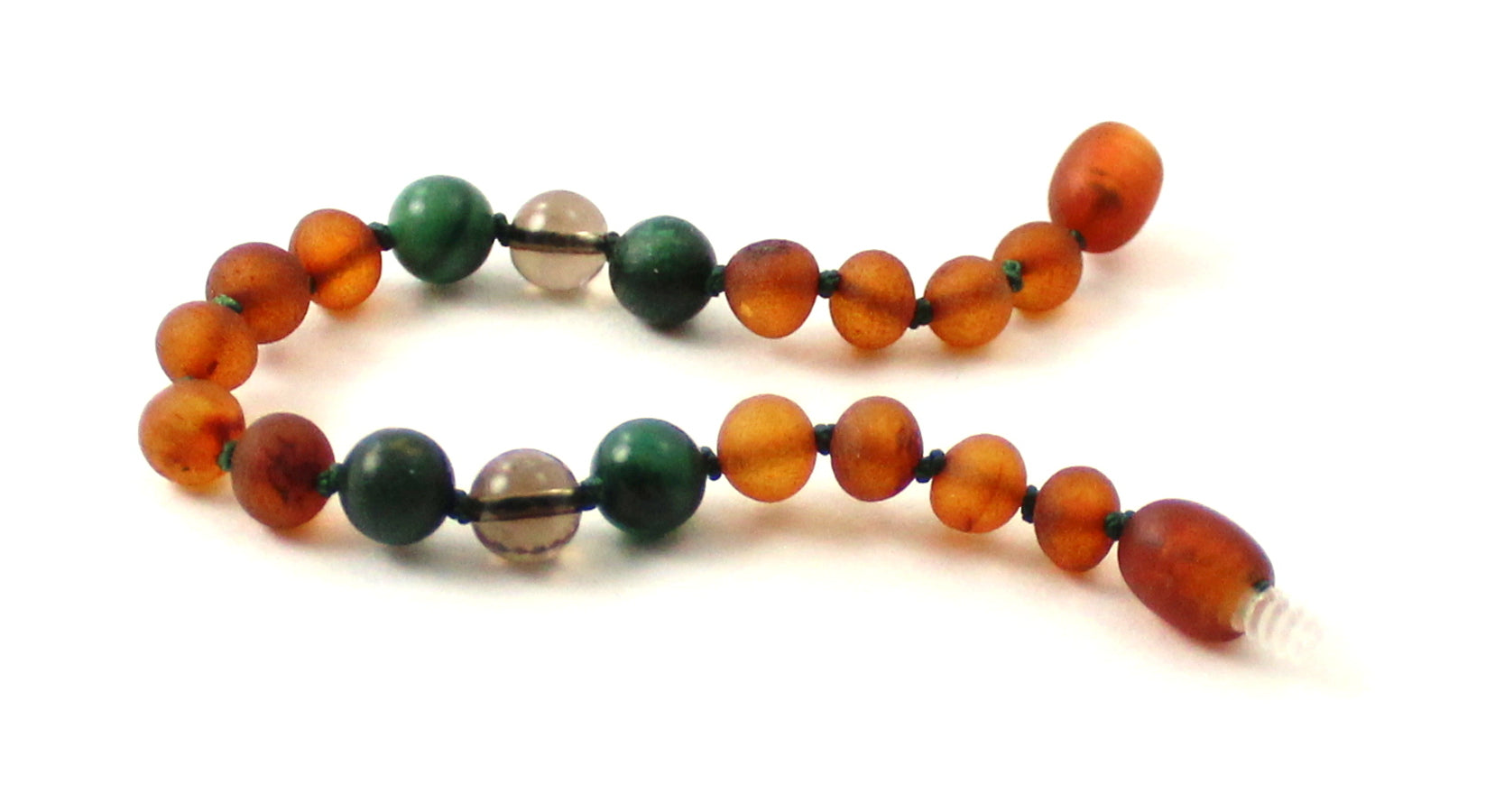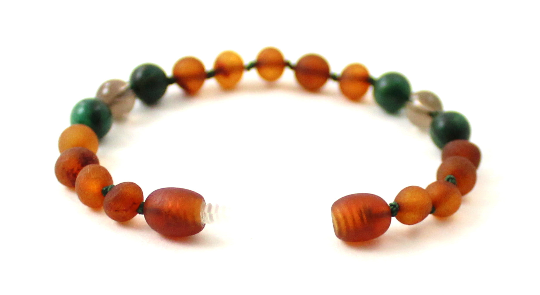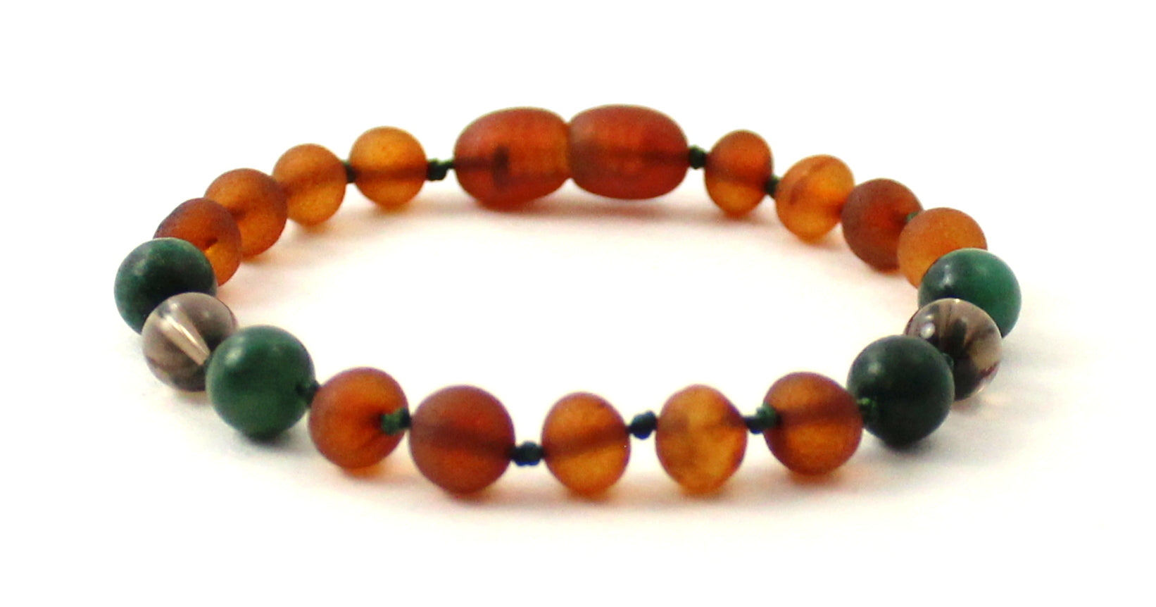 Raw Cognac Amber Bracelet – Quartz & Green African Jade Beads