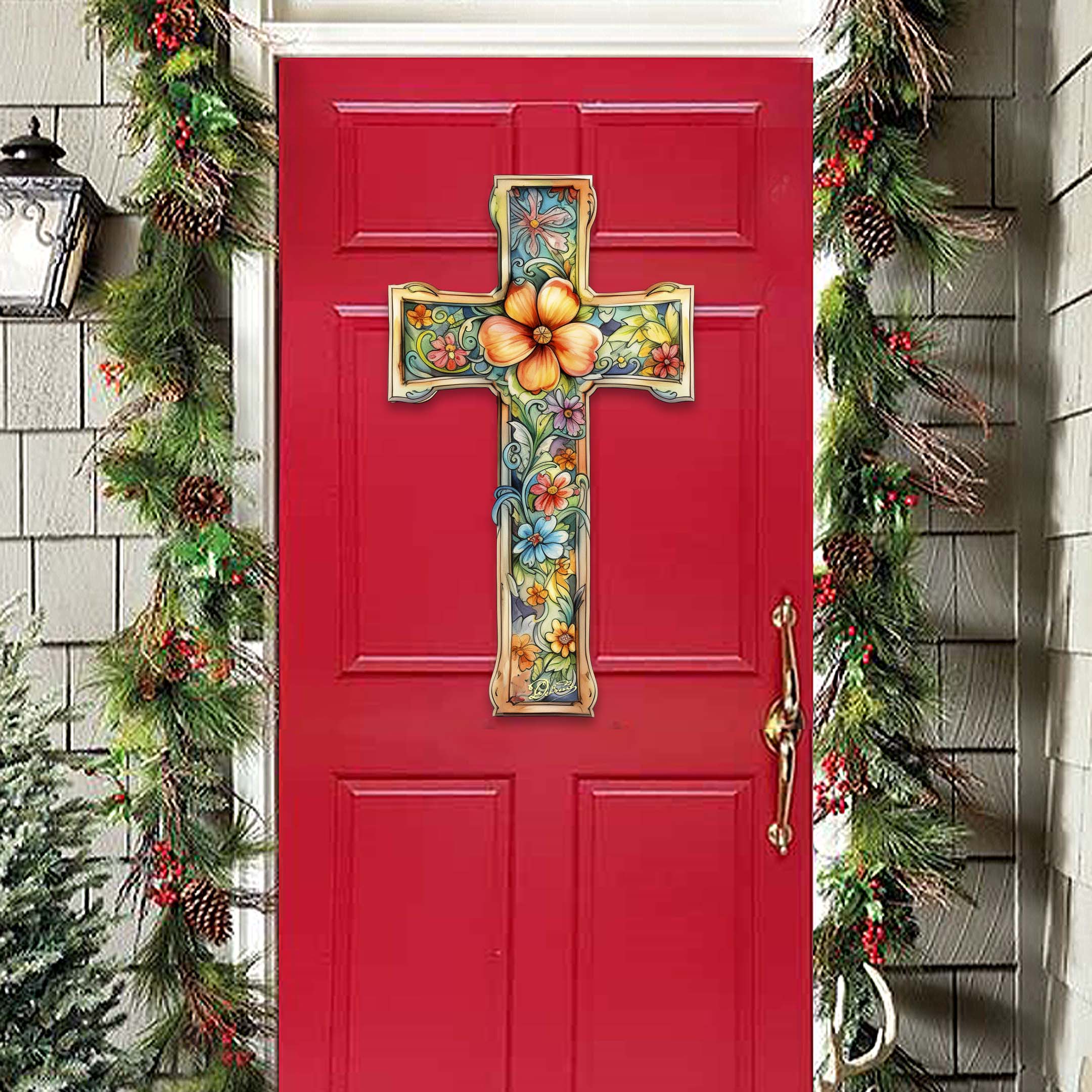 Decorate your door with the beautiful Blossom Cross Holiday Door Decor by G. Debrekht. This Easter Spring Decor features a stunning blossom design, adding a touch of elegance to your home. Made with high-quality materials, it will be a lasting addition to your holiday Decor.