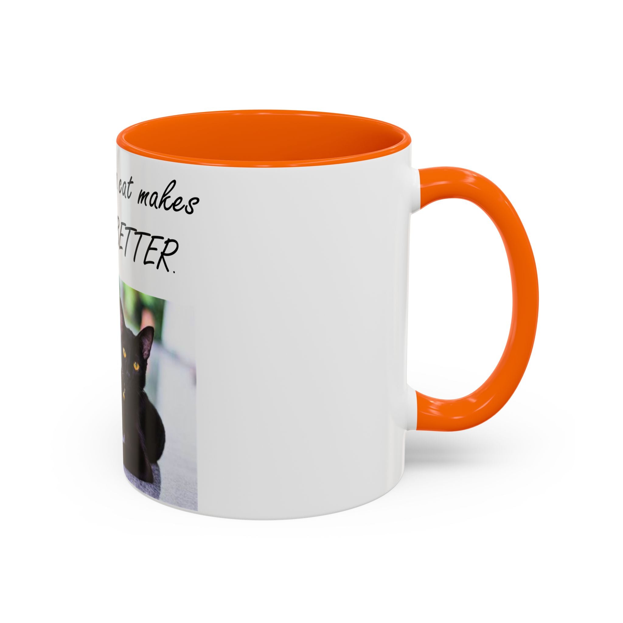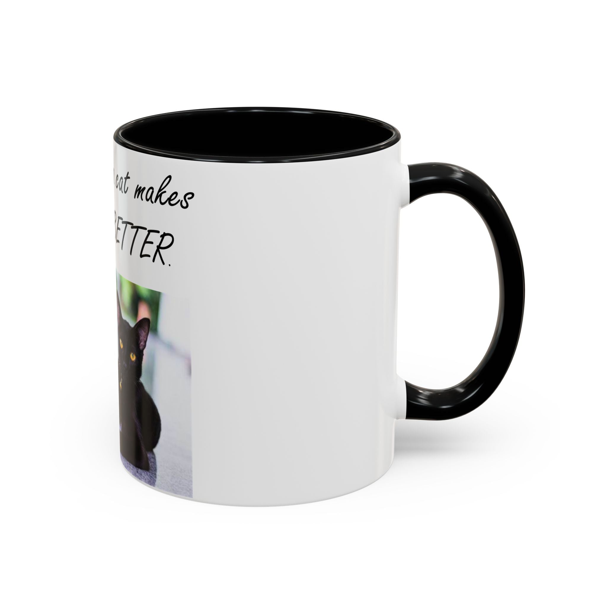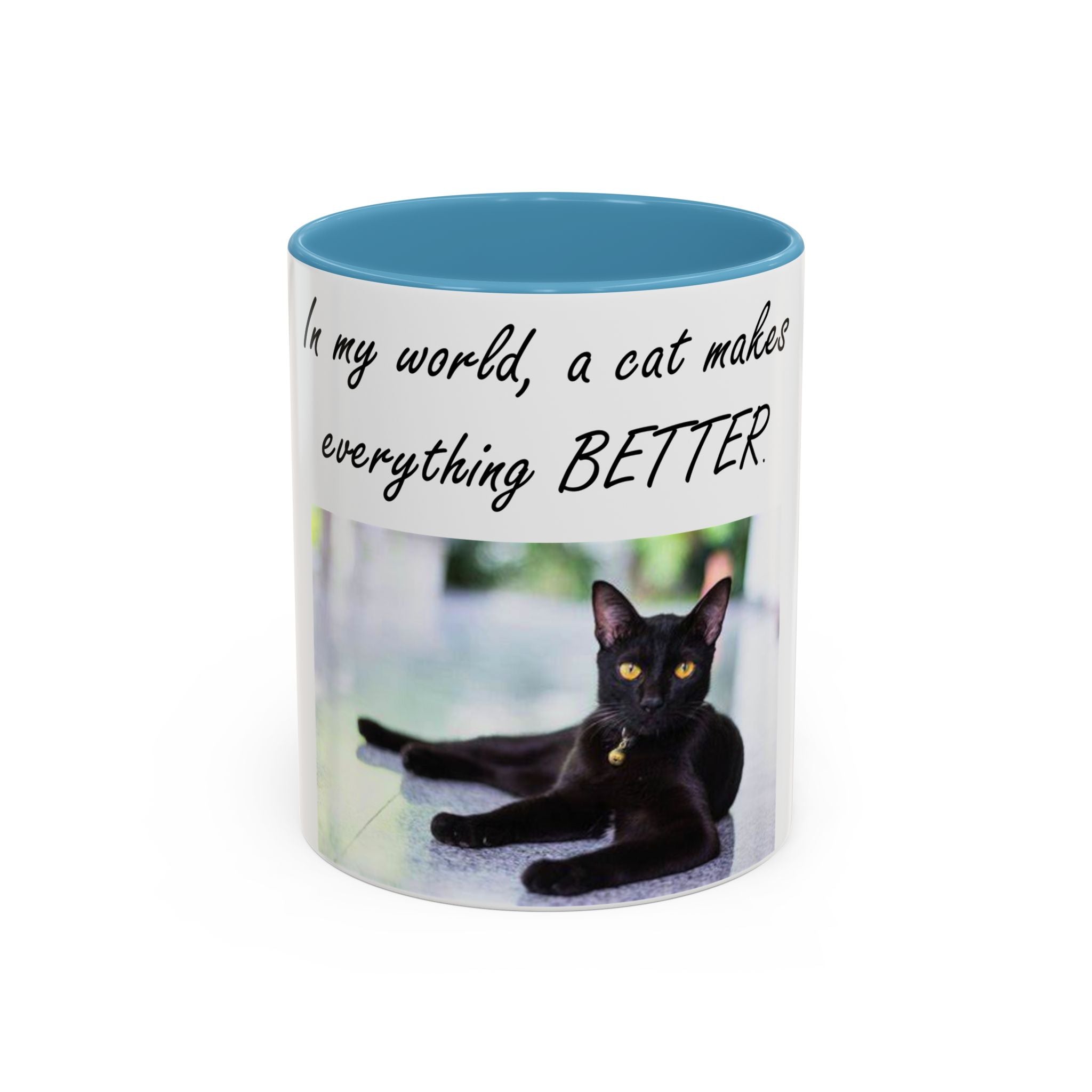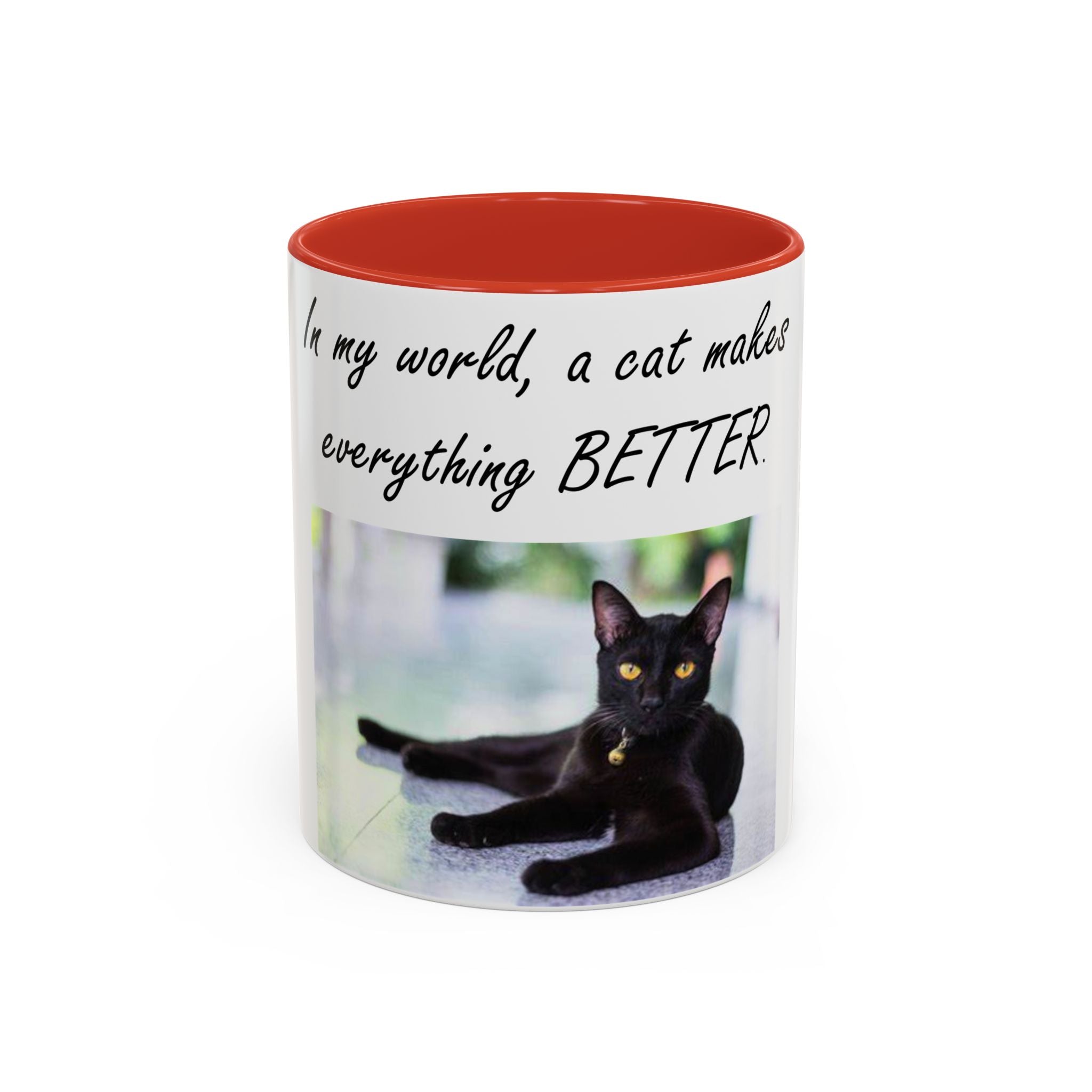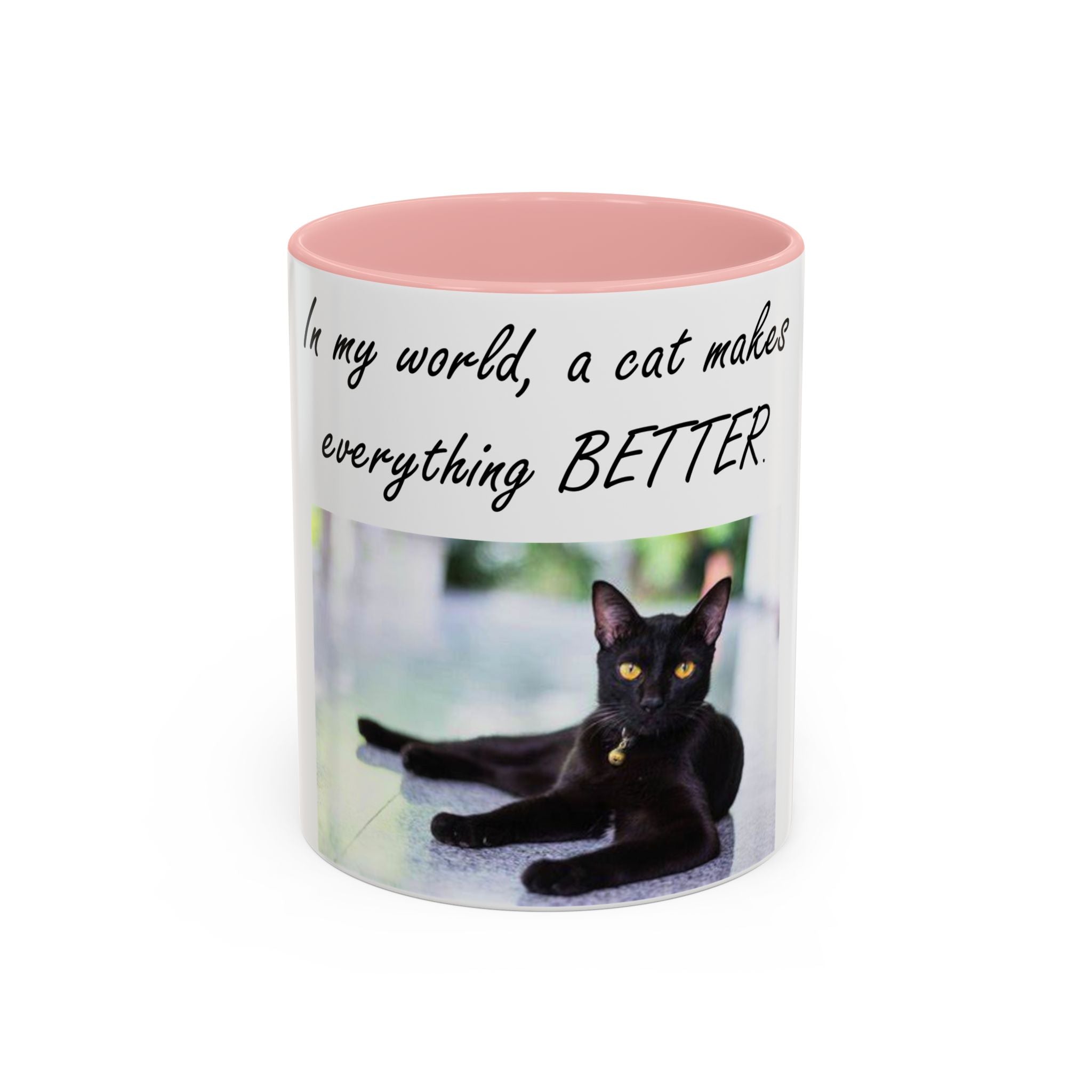 Introducing our vibrant Accent Coffee Mug, the perfect addition to your morning routine! This delightful mug features lively colors and a heartwarming message that will instantly brighten your day. Whether you’re sipping your favorite brew at home or enjoying a quick coffee break at the office, this mug adds a touch of cheer to any moment. Made from durable white ceramic with a colorful interior and handle, it's not only a visual treat but also practical — microwave-safe and dishwasher-safe for your convenience. Ideal for cat lovers and anyone who appreciates a bit of charm in their beverageware, it's the perfect gift for holidays like Christmas, birthdays, and even housewarming parties. Celebrate your love for pets or brighten someone's day with this thoughtful and eye-catching mug!