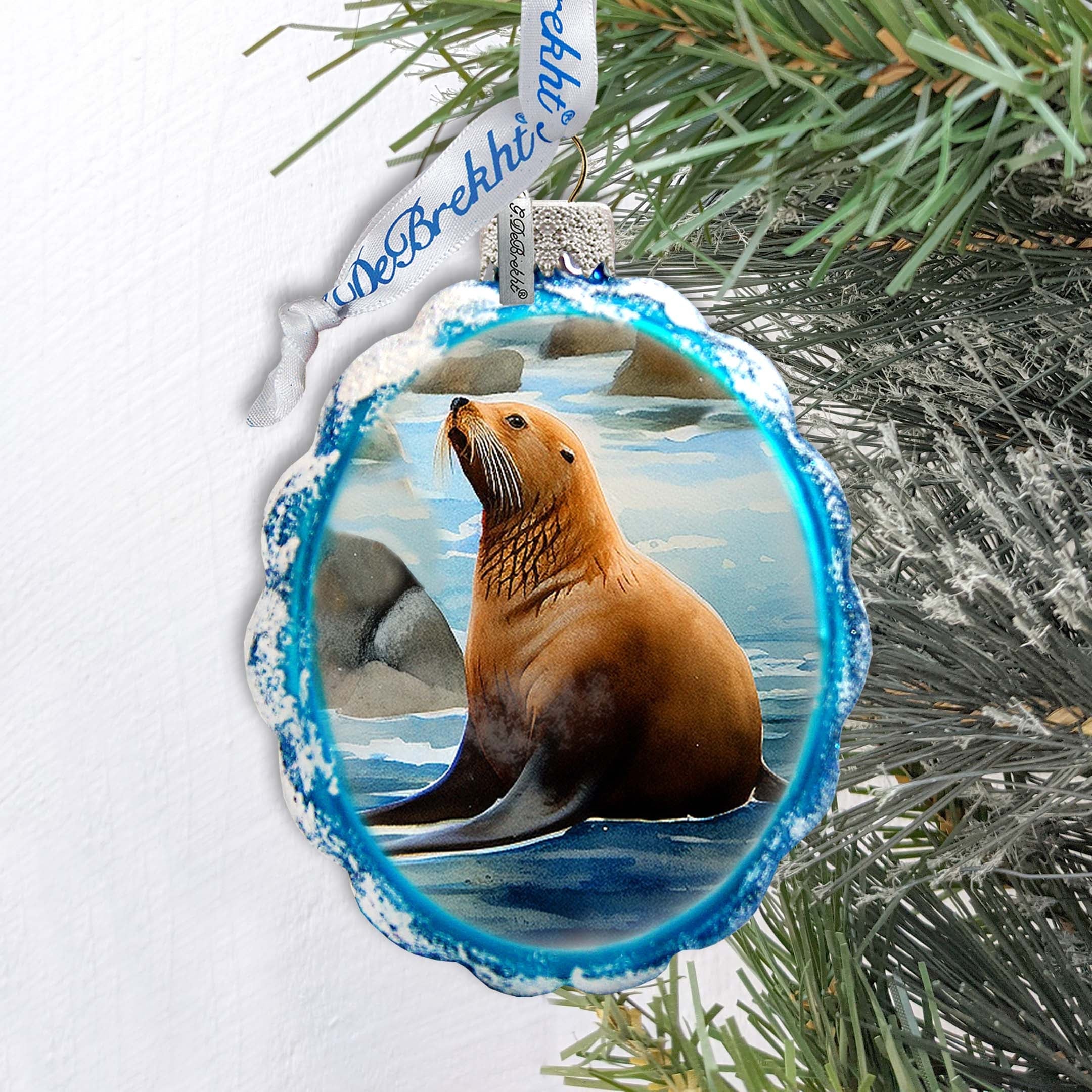 Expertly handcrafted by G. Debrekht, these Coastal Decorations feature exquisite Sea Lion glass ornaments. Perfect for adding a touch of marine life to your festive Decor, these unique keepsakes are a beautiful way to bring the beauty of the sea to your home this holiday season.