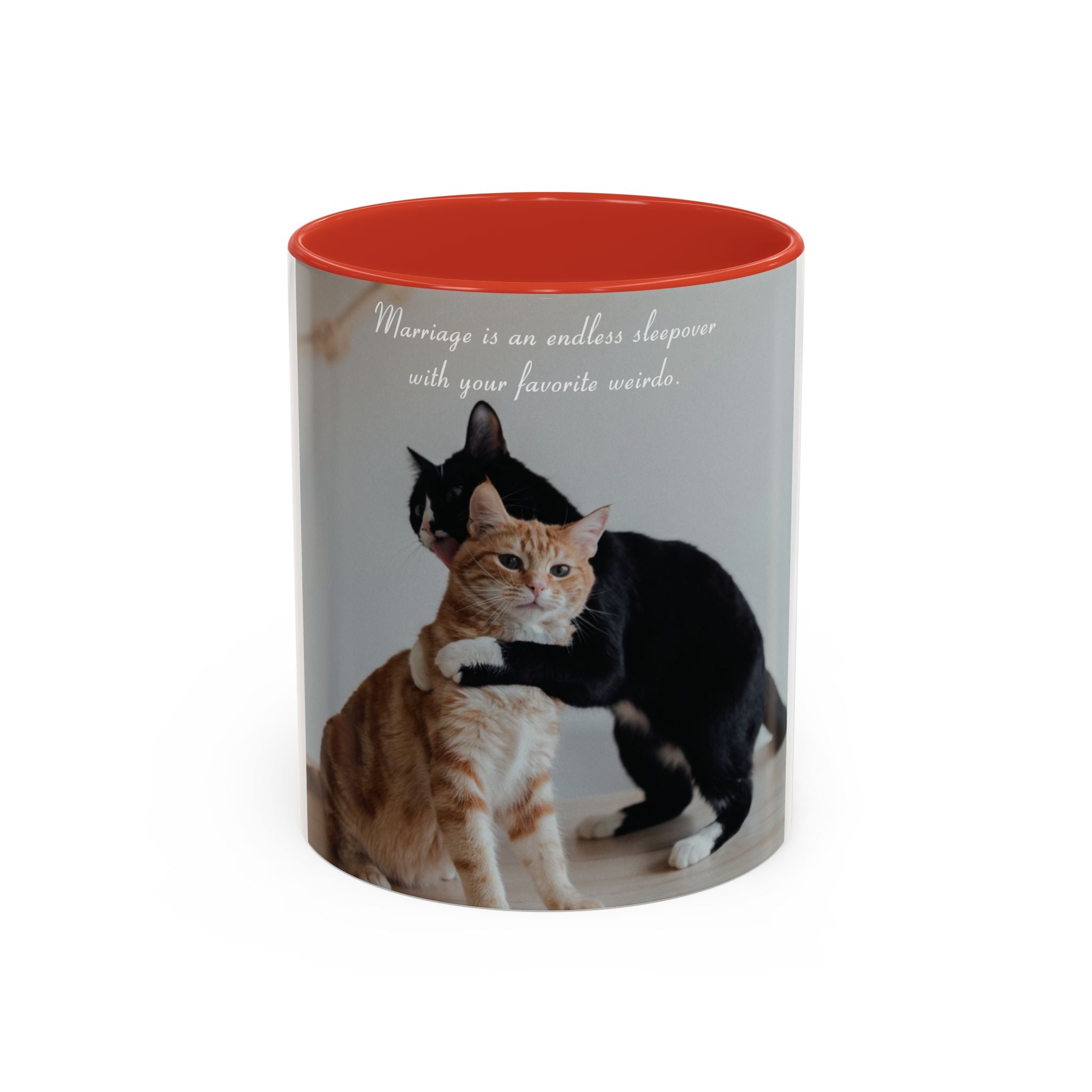 This charming Accent Coffee Mug brings a playful vibe to your morning routine. Made from durable white ceramic, it features a stunning color contrast with vibrant hues that match any décor. Start your day with a smile as you savor your favorite beverage in this beautifully designed mug. Perfect for coffee lovers and cat enthusiasts alike, it adds a fun touch to your kitchen or office space. Ideal for gifting on occasions like birthdays, holidays, or even just to brighten a friend’s day, this mug is a delightful addition to any collection. Enjoy a cozy chat over coffee or tea and celebrate the joy of companionship, reminding us that love and laughter are essential ingredients in life.