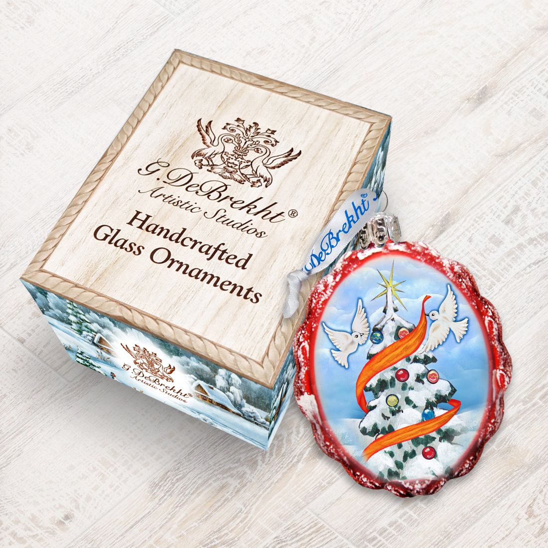 About Collection: The Mercury glass Tree-gallery Keepsake Glass Ornaments are artistically hand-crafted with added touches of gold and silver for a subtle glow. This Collection has been inspired by an old world-Eastern European family, who for almost 200 years had been painting beautiful miniature lacquered paper-mâché boxes inlaid with mother of pearl. It took years of perfecting this technique to establish this new and innovative form of painting that we now proudly present in our exclusive G. DeBrekht Glass ornaments. They are made, as in the old days- from 1.5 mm hand-blown Mercury Glass, silver powdered from the inside and then sandblasted from the outside. The combination of colors and the multi-layer painting techniques create a deep iridescent effect. We take pride in perfecting every piece by adding touches of gold, finishing them with a lovely satin ribbon, and presenting them in a gift box. Approximate size: 3ƒ? x 2ƒ?. Hand-made in the USA, every piece is unique- and will be passed on to future generations to cherish.