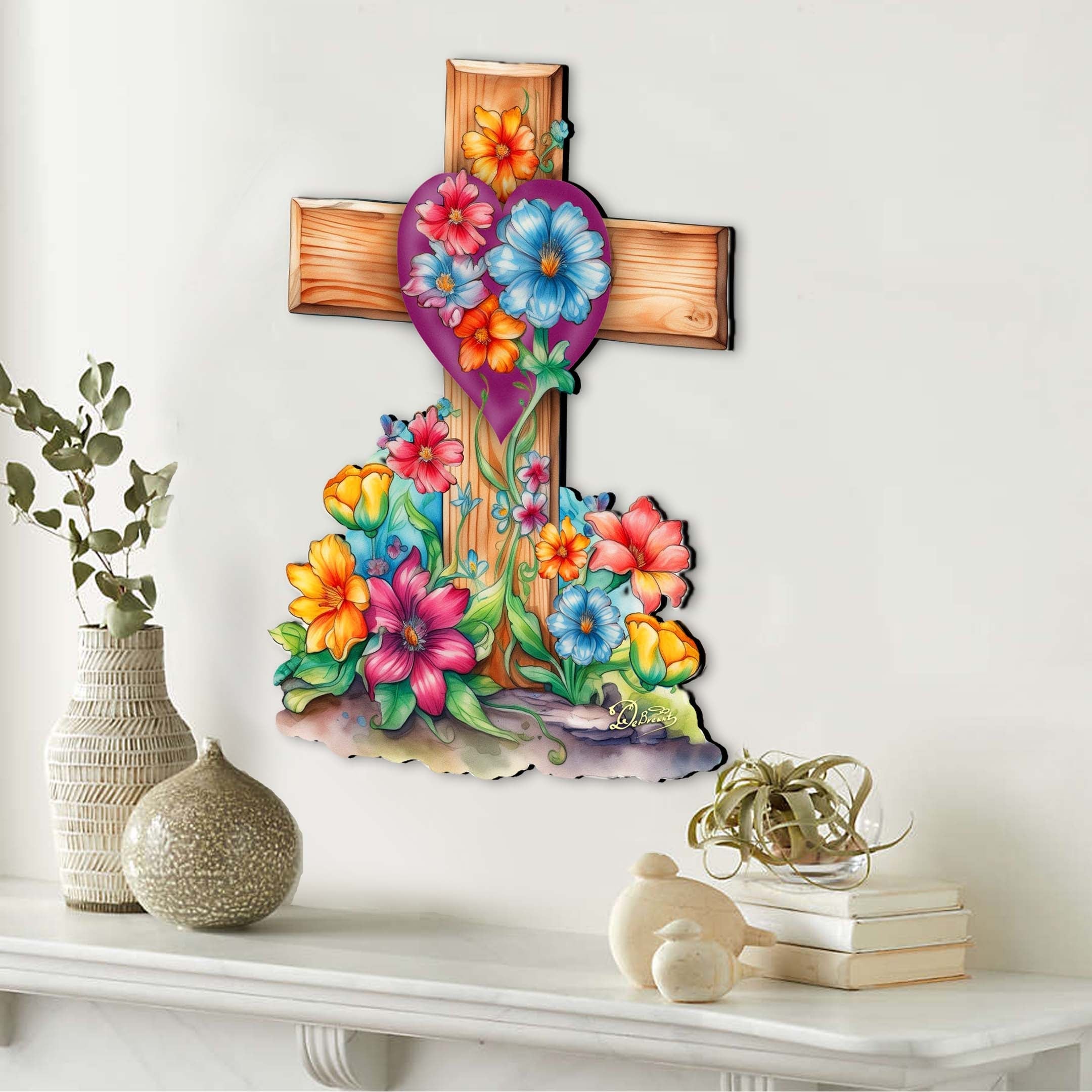 Elevate your spring Decor this Easter with the beautiful and intricately designed Floral Wooden Cross by G. Debrekht. The perfect addition to any home, this cross features delicate floral details and a rustic wooden finish. Celebrate the season with this stunning and timeless piece of art.