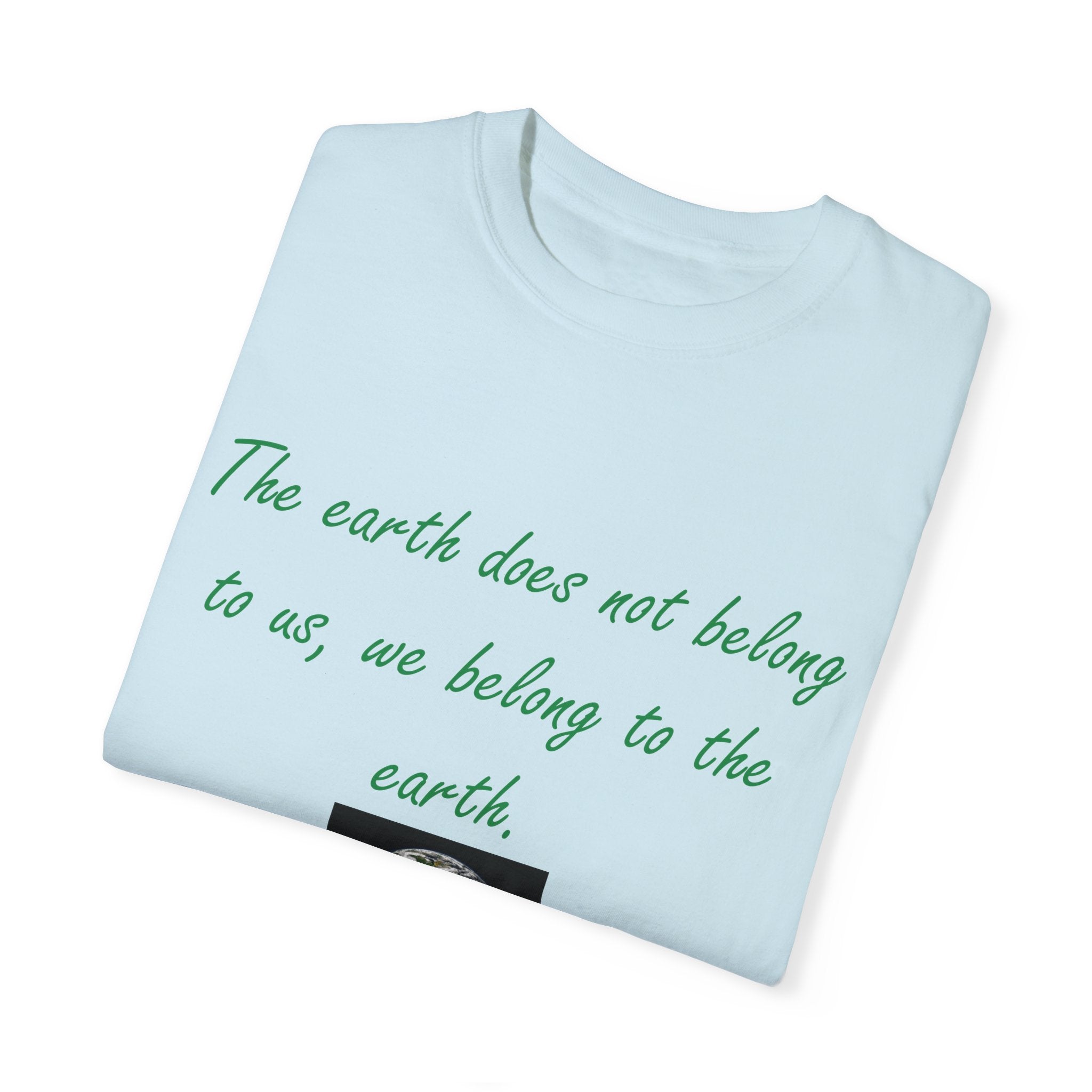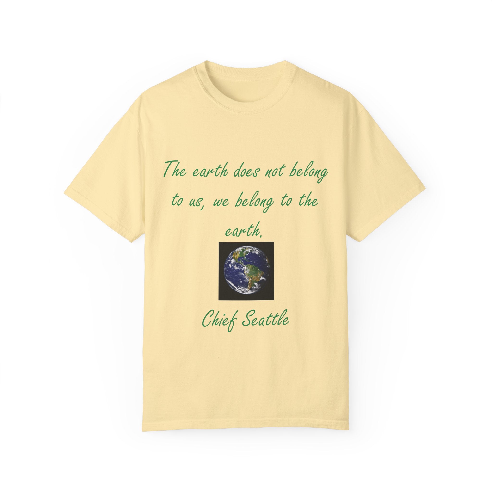 Introducing our stylish Unisex T-shirt, designed for those who appreciate comfort and meaning in their everyday wear. Crafted from high-quality, 100% ring-spun US cotton, this T-shirt radiates an aura of warmth and connection to nature, making it perfect for anyone who loves to express their values through fashion. Ideal for environmentally conscious individuals, this shirt serves as a reminder of our responsibility to the planet, inspired by the poignant words of Chief Seattle.