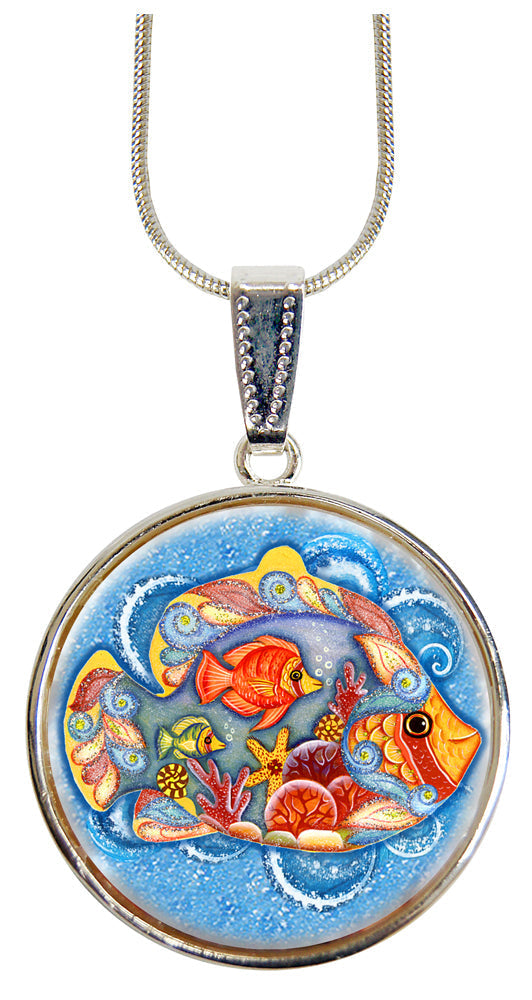 Fishy Family Silver Plated Mother of Pearl Necklace - 44050