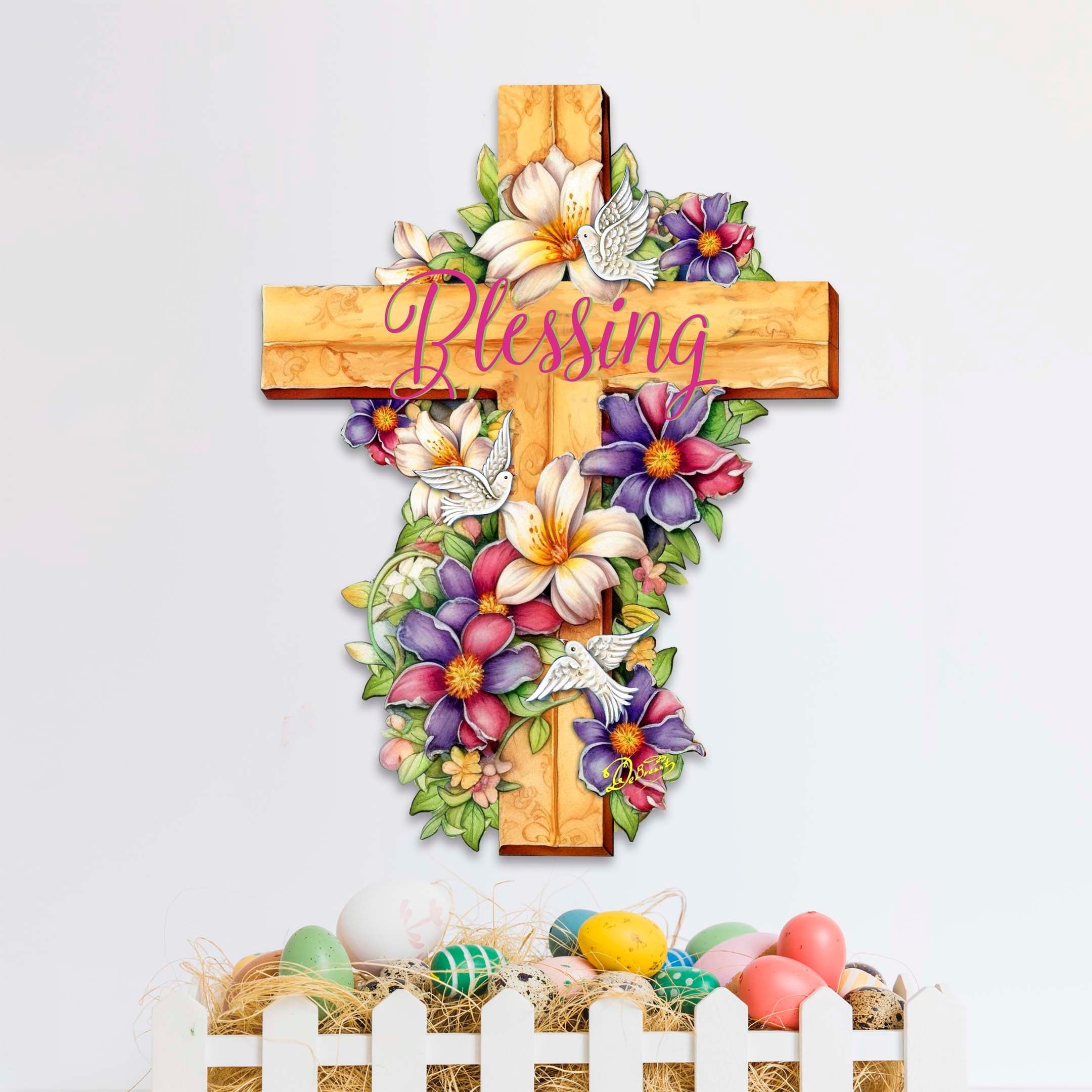 This sophisticated Floral Dove Blessing Cross Holiday Door Decor by G. Debrekht is the perfect addition to your Easter and Spring decorations. Featuring a stunning floral dove and blessing cross design, this door Decor will add a touch of elegance and spirituality to your home. Made with high-quality materials, this piece is both beautiful and durable.