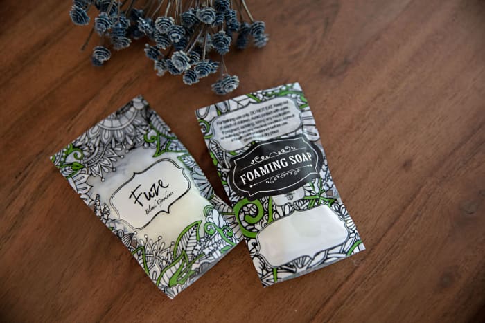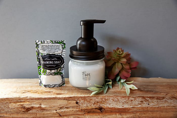All natural and organic soap base mixed with essential oils. This reusable glass and bronze foaming soap jar is shipped... Read more