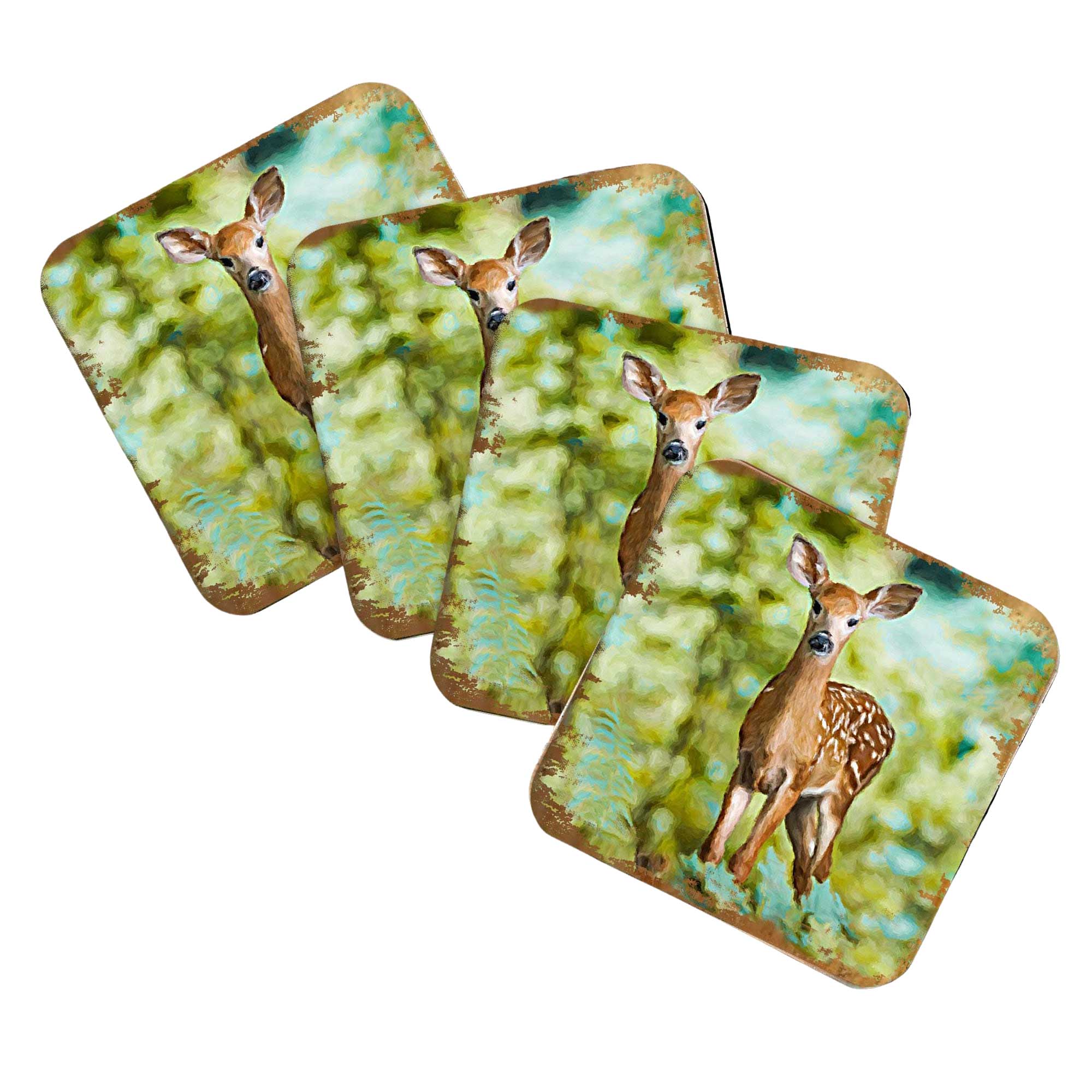 Forest Deer Wooden Cork Coasters Gift Set of 4 - 95290C-S4