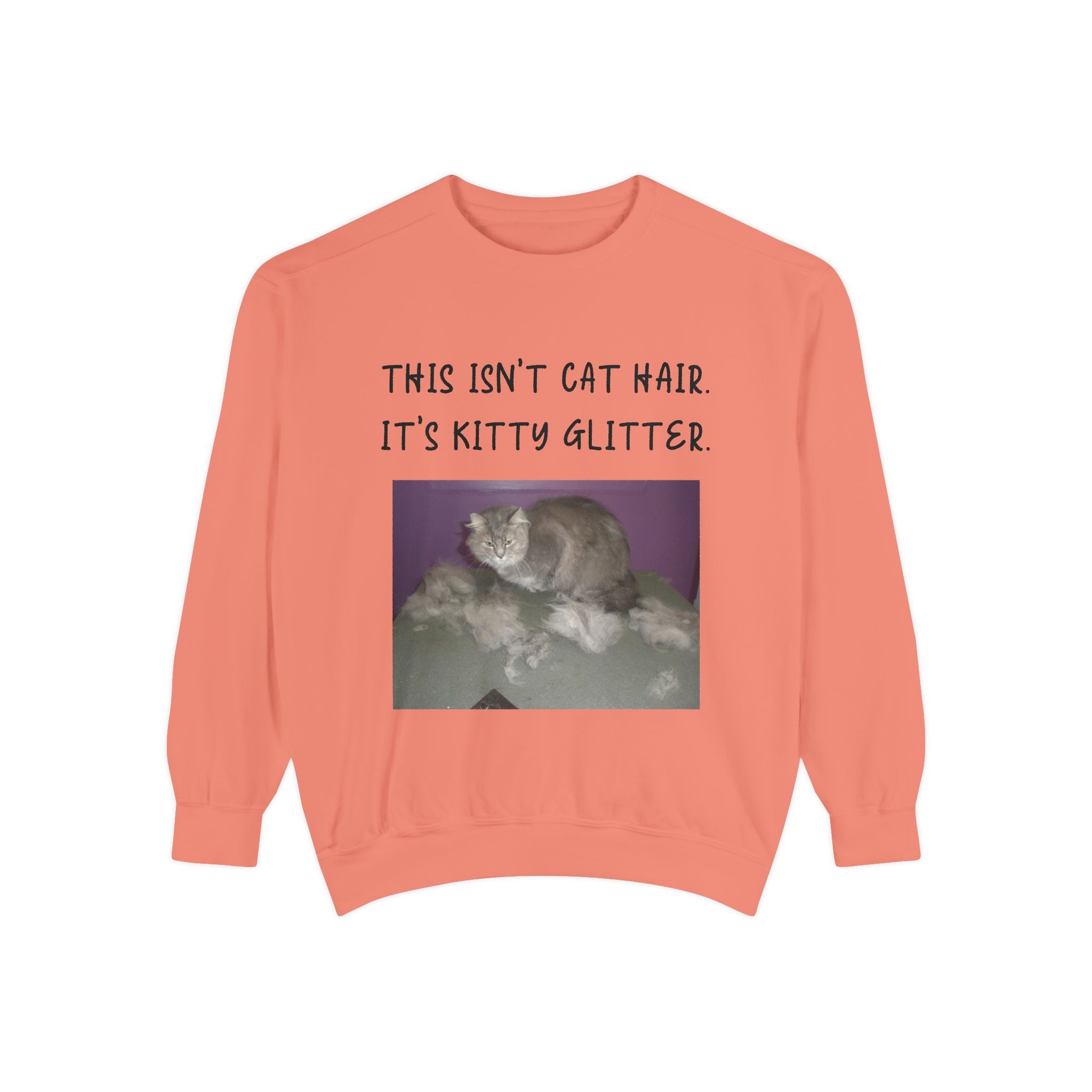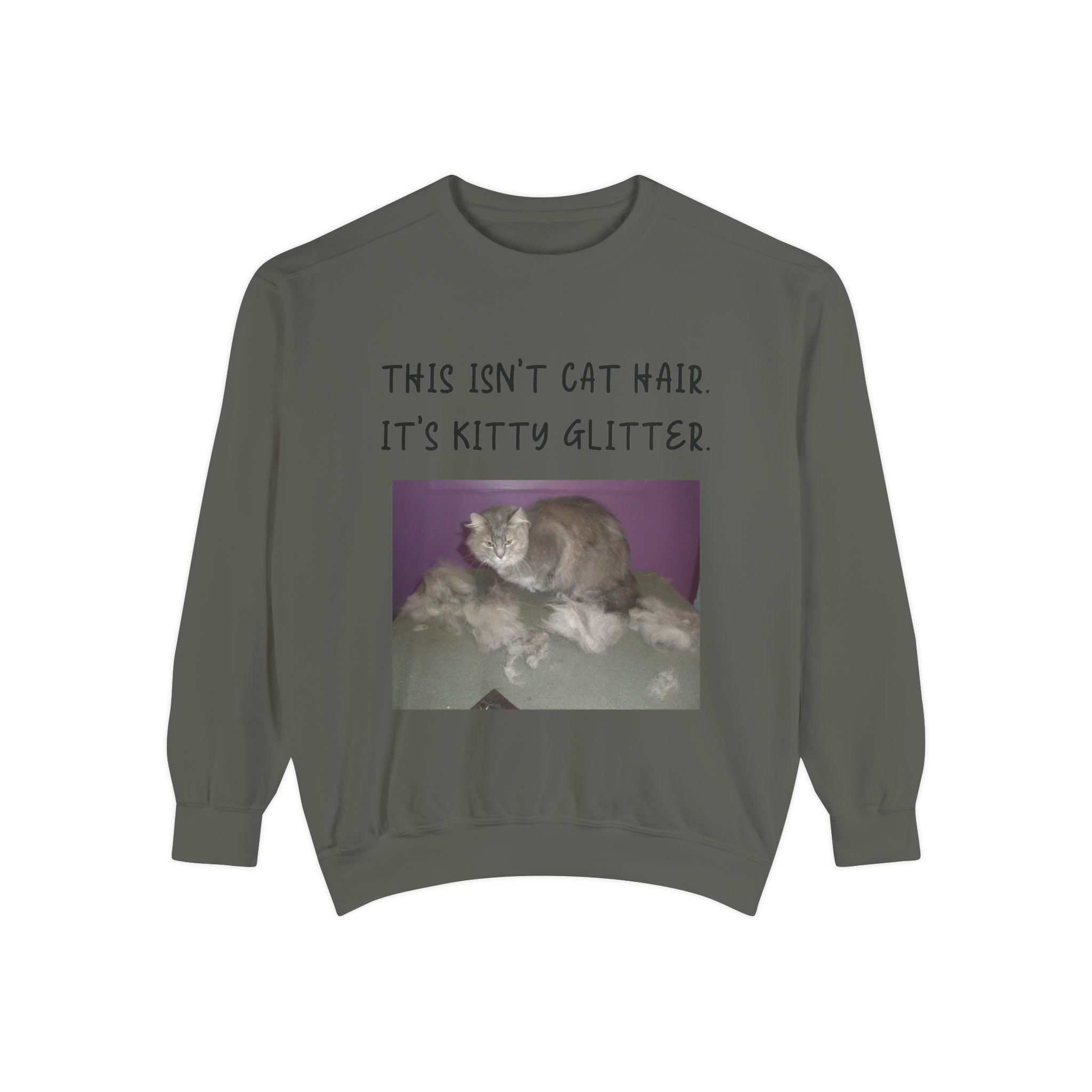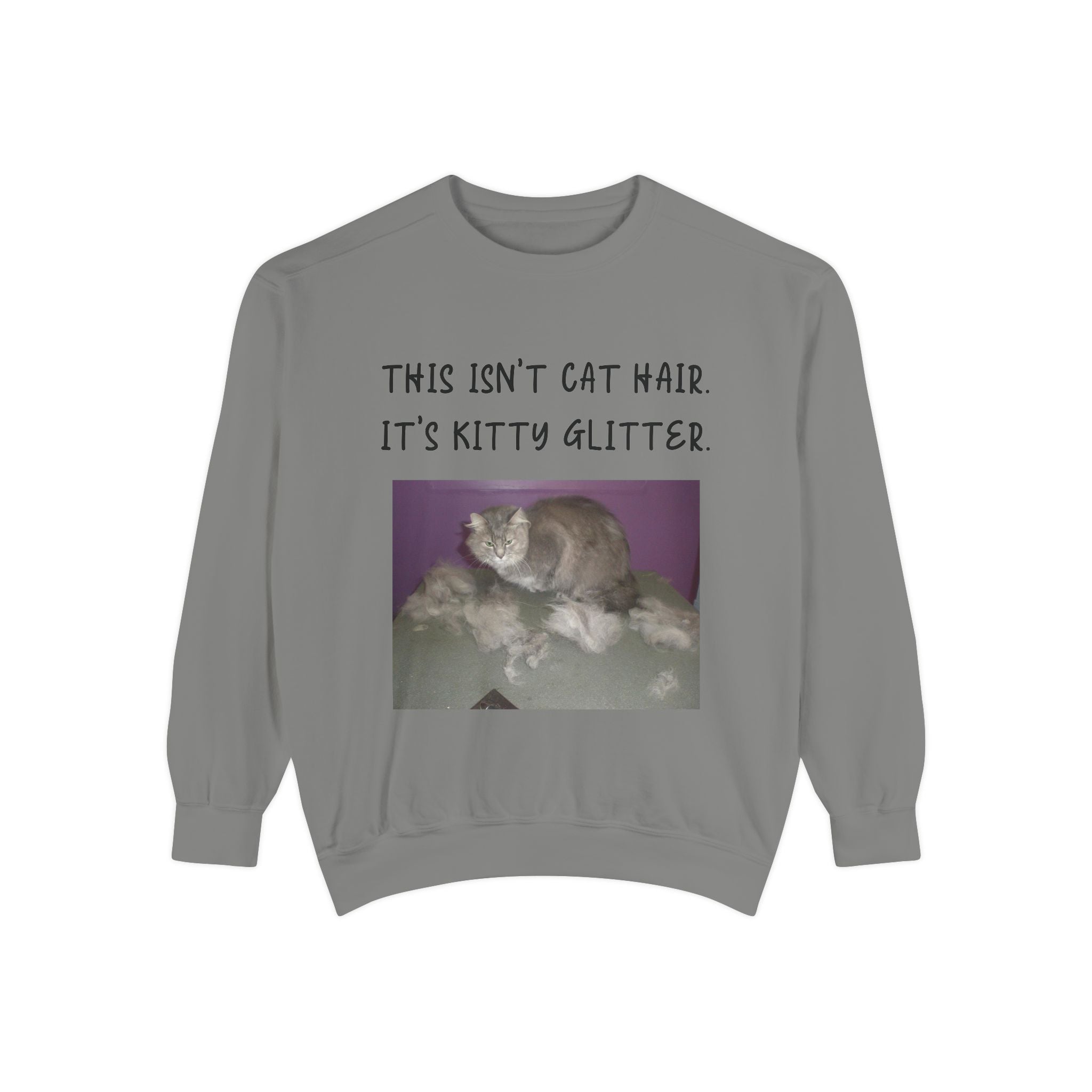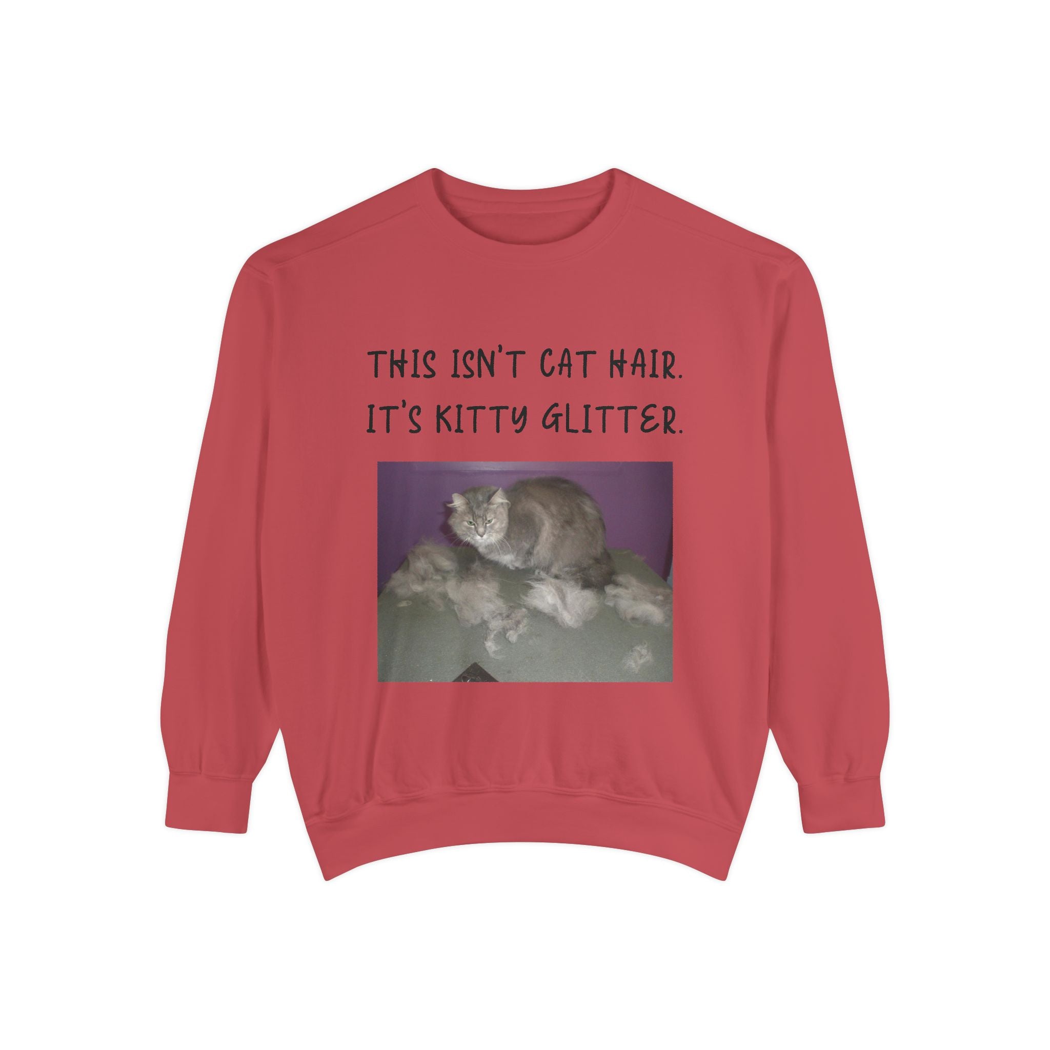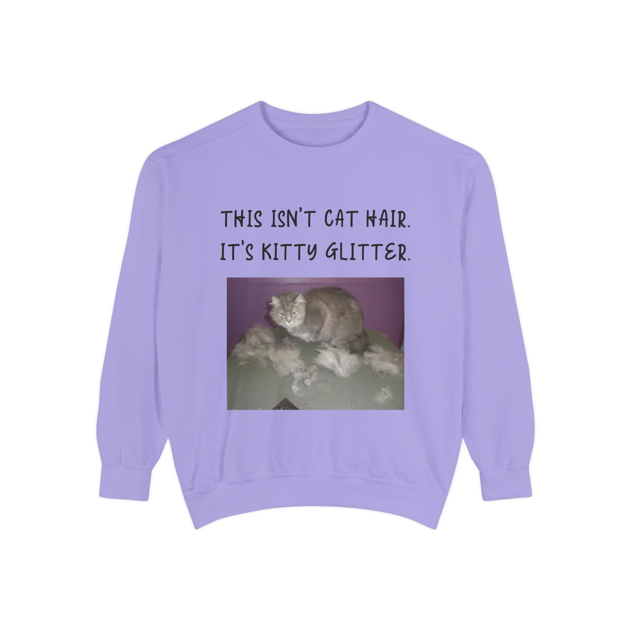Introducing our cozy Unisex Garment-Dyed Sweatshirt, perfect for those who appreciate humor and comfort in their everyday wardrobe. This sweatshirt gives off a relaxed vibe, making it an ideal addition to weekend lounging or casual outings. The playful message, "This Isn't Cat Hair. It's Kitty Glitter," will surely resonate with cat lovers and pet owners, adding a touch of fun to any outfit. Whether it's a chilly day at home or a casual meetup with friends, this sweatshirt fits seamlessly into your life and style. It's a perfect gift for birthdays, holidays, or just because, suitable for anyone who enjoys a good laugh and a comfortable fit. Celebrate your love for pets with this cozy apparel during any occasion, making it a beloved staple for the season. Embrace the warmth and humor it brings!