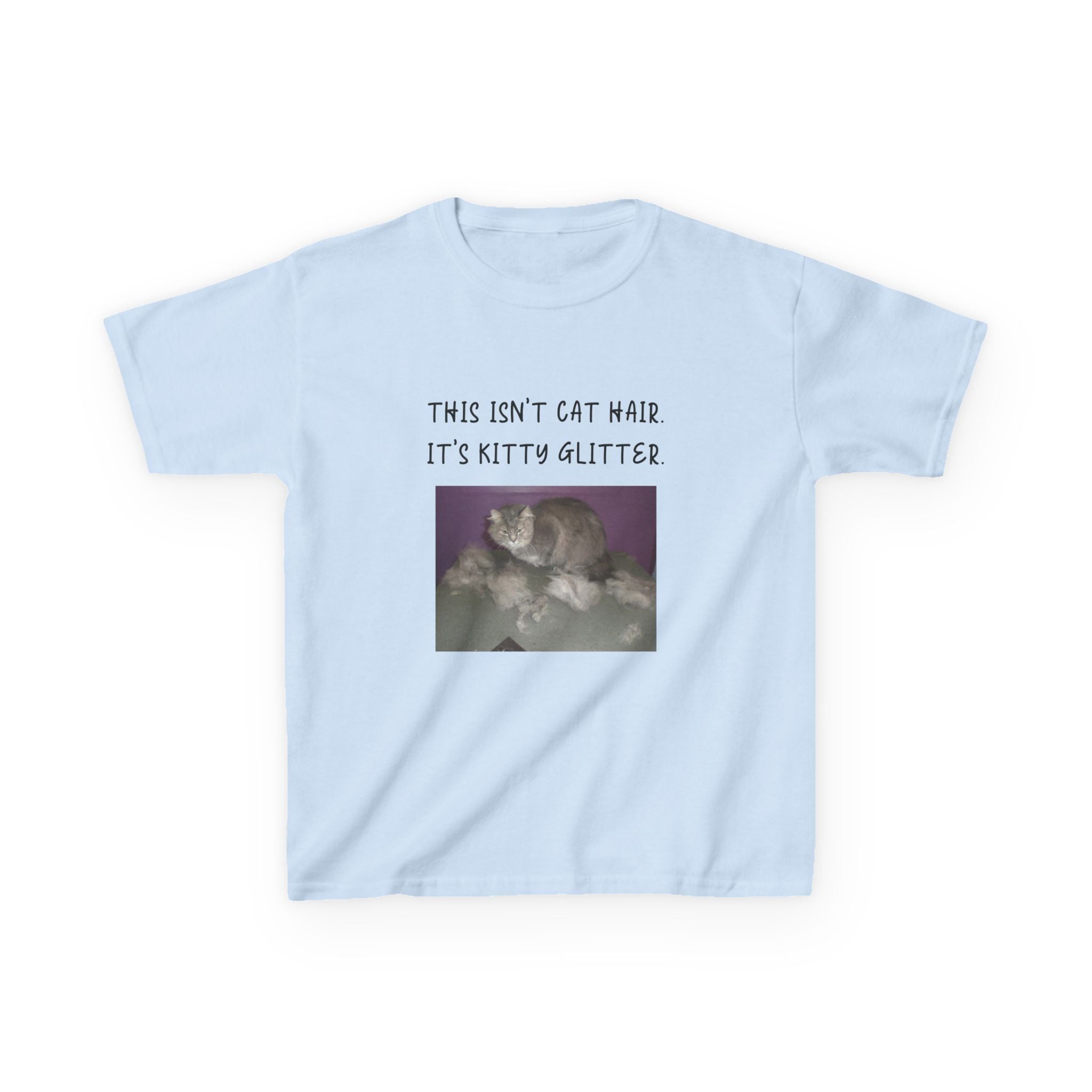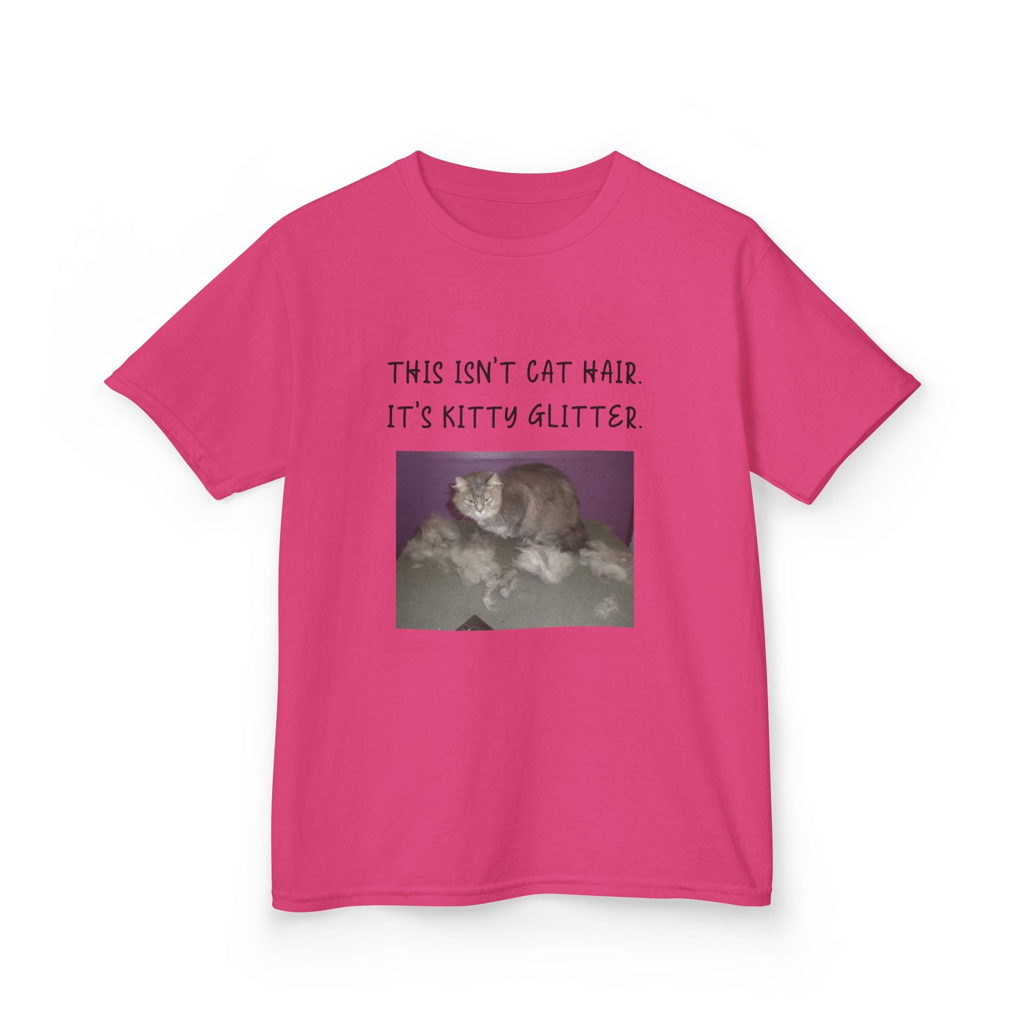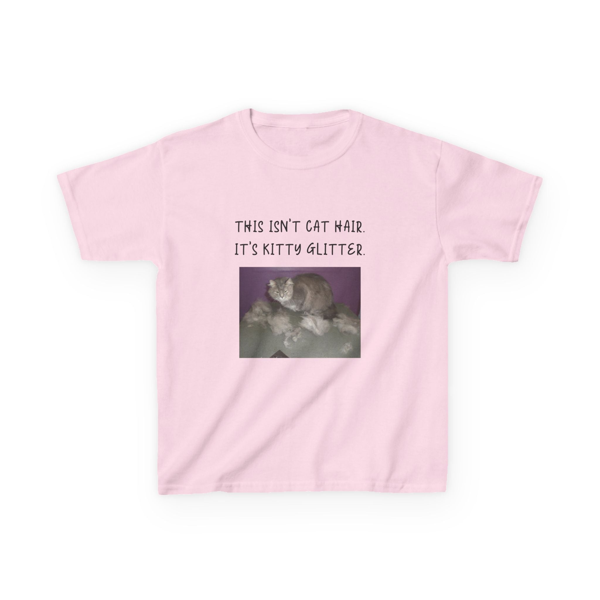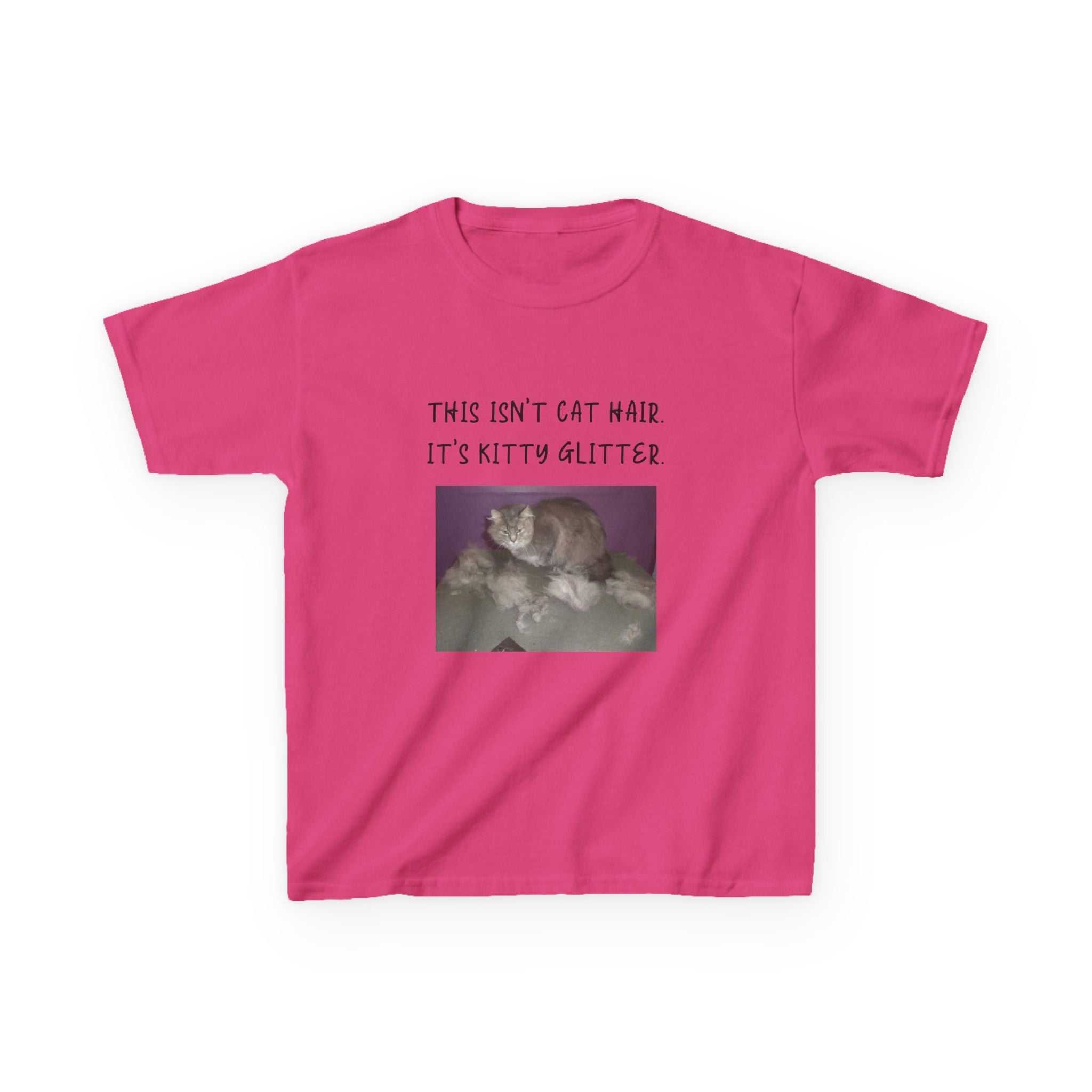 Brighten up your child's wardrobe with this playful Kids Heavy Cotton™ Tee! Featuring a whimsical design that reads, "This isn't cat hair. It's kitty glitter," this tee brings laughter and personality to any outfit. Perfect for children who love their furry friends, this shirt combines comfort with a lighthearted vibe that’s ideal for everyday wear or special occasions. Whether it's casual playdates, family gatherings, or just lounging at home, this tee is a delightful addition to any young cat lover's collection. Great for birthdays, holidays, or just because!