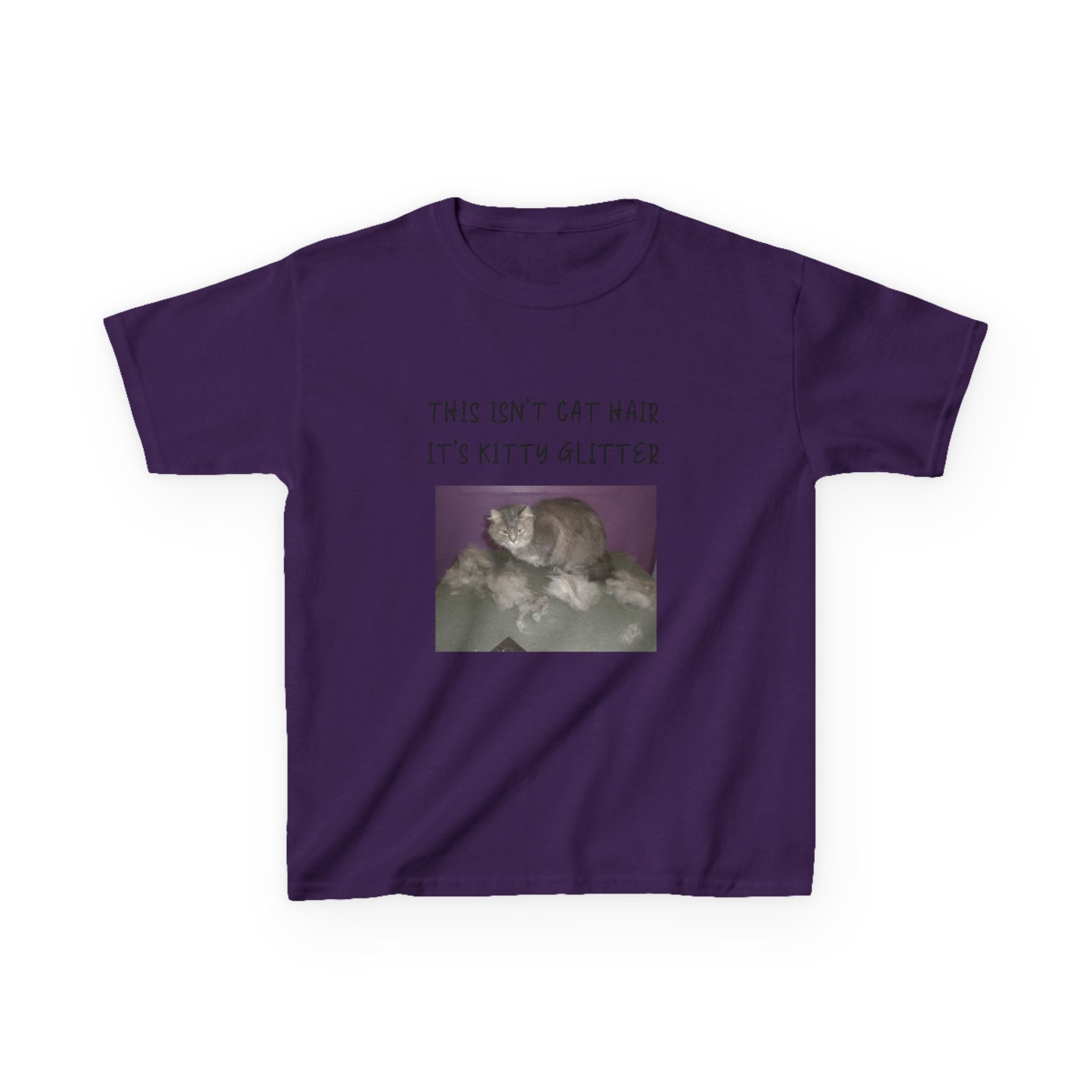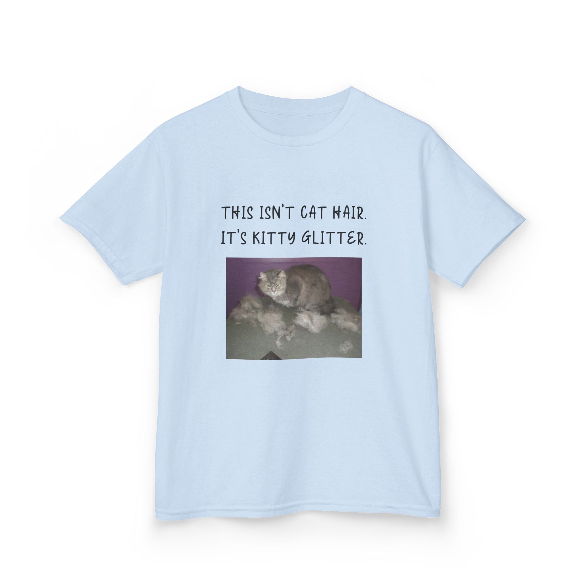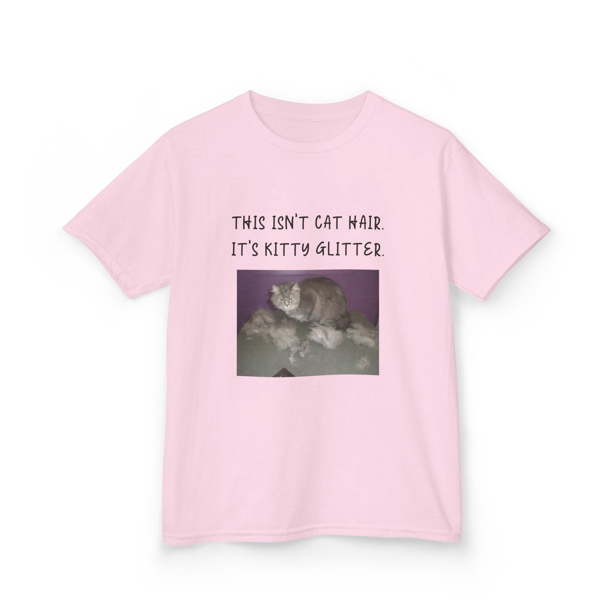 Brighten up your child's wardrobe with this playful Kids Heavy Cotton™ Tee! Featuring a whimsical design that reads, "This isn't cat hair. It's kitty glitter," this tee brings laughter and personality to any outfit. Perfect for children who love their furry friends, this shirt combines comfort with a lighthearted vibe that’s ideal for everyday wear or special occasions. Whether it's casual playdates, family gatherings, or just lounging at home, this tee is a delightful addition to any young cat lover's collection. Great for birthdays, holidays, or just because!