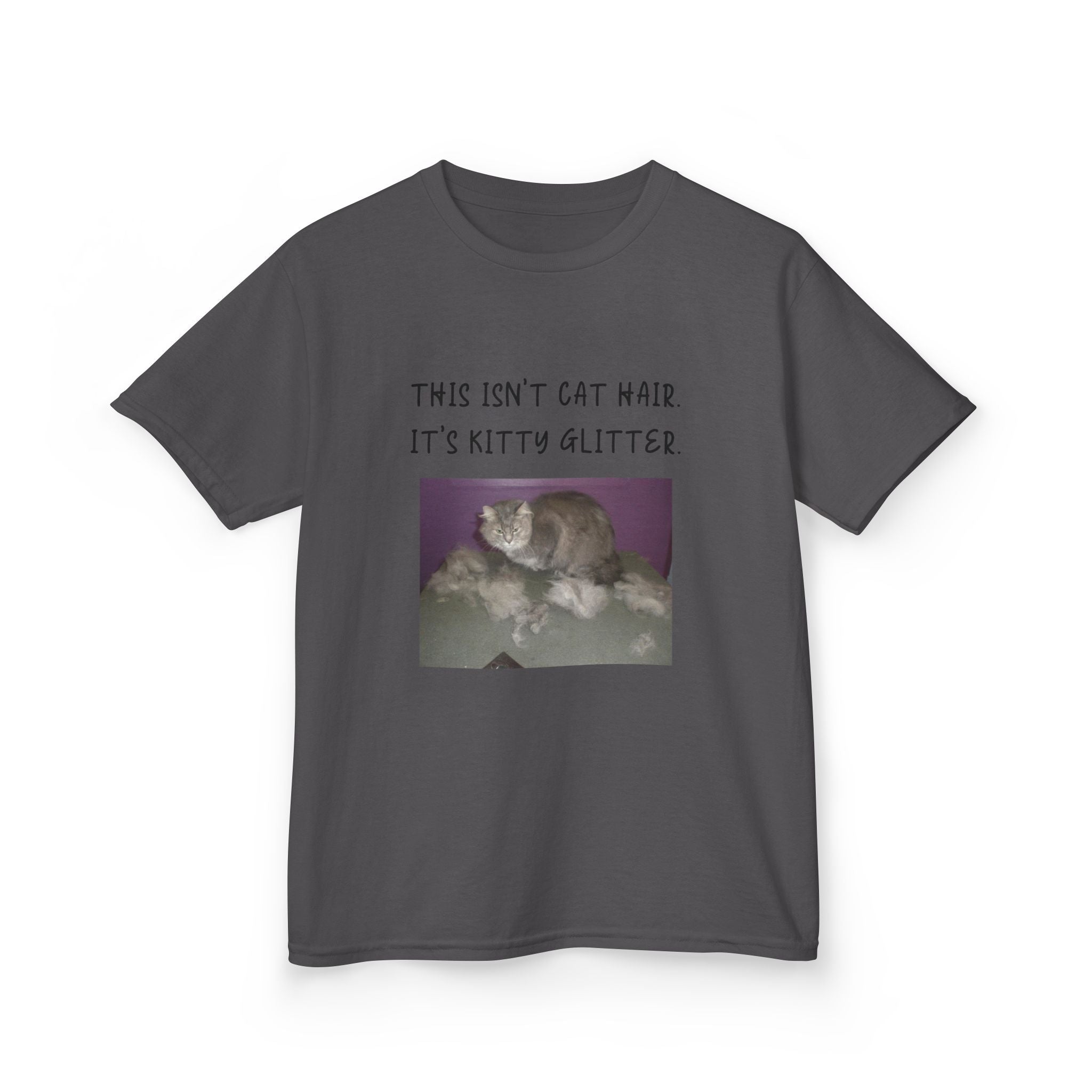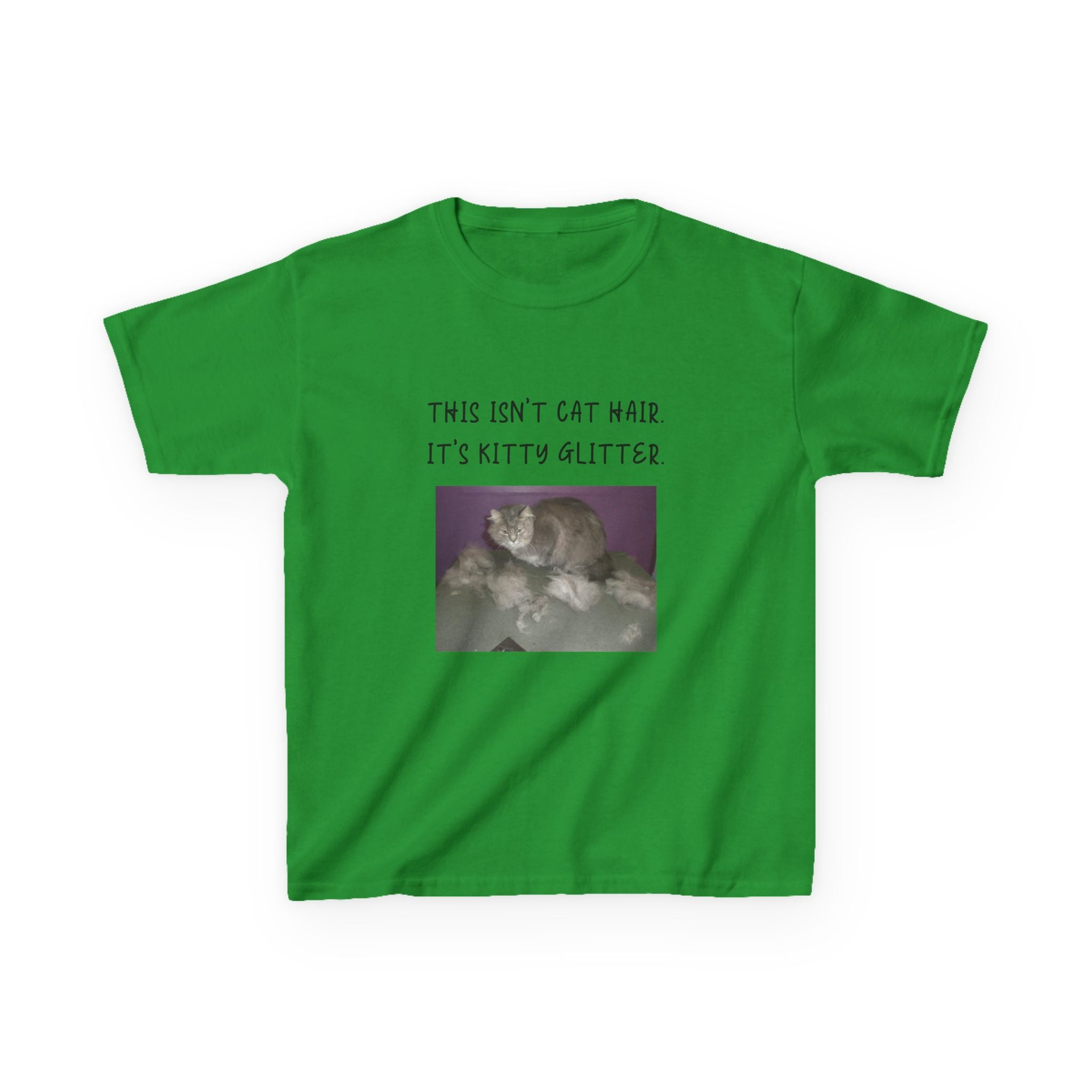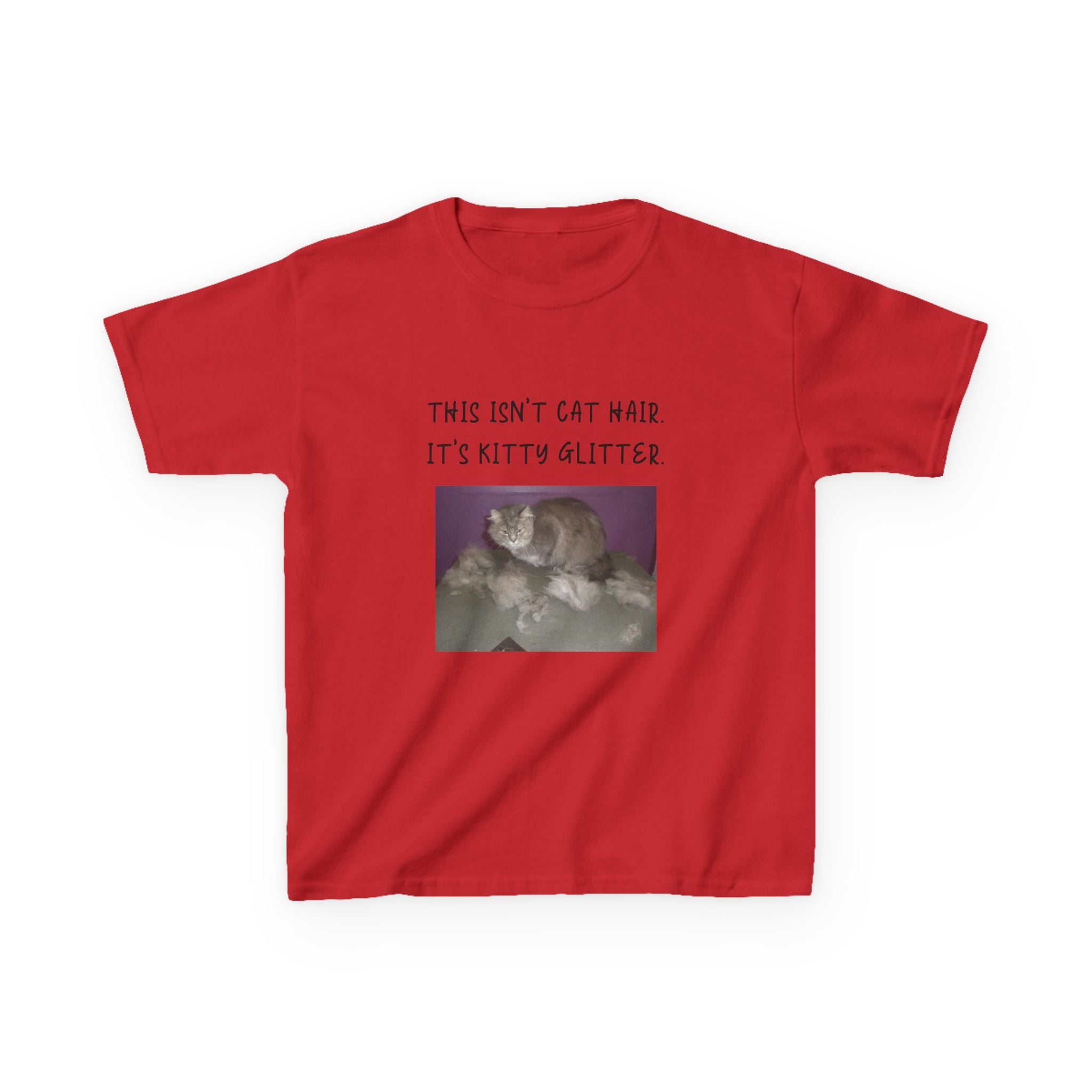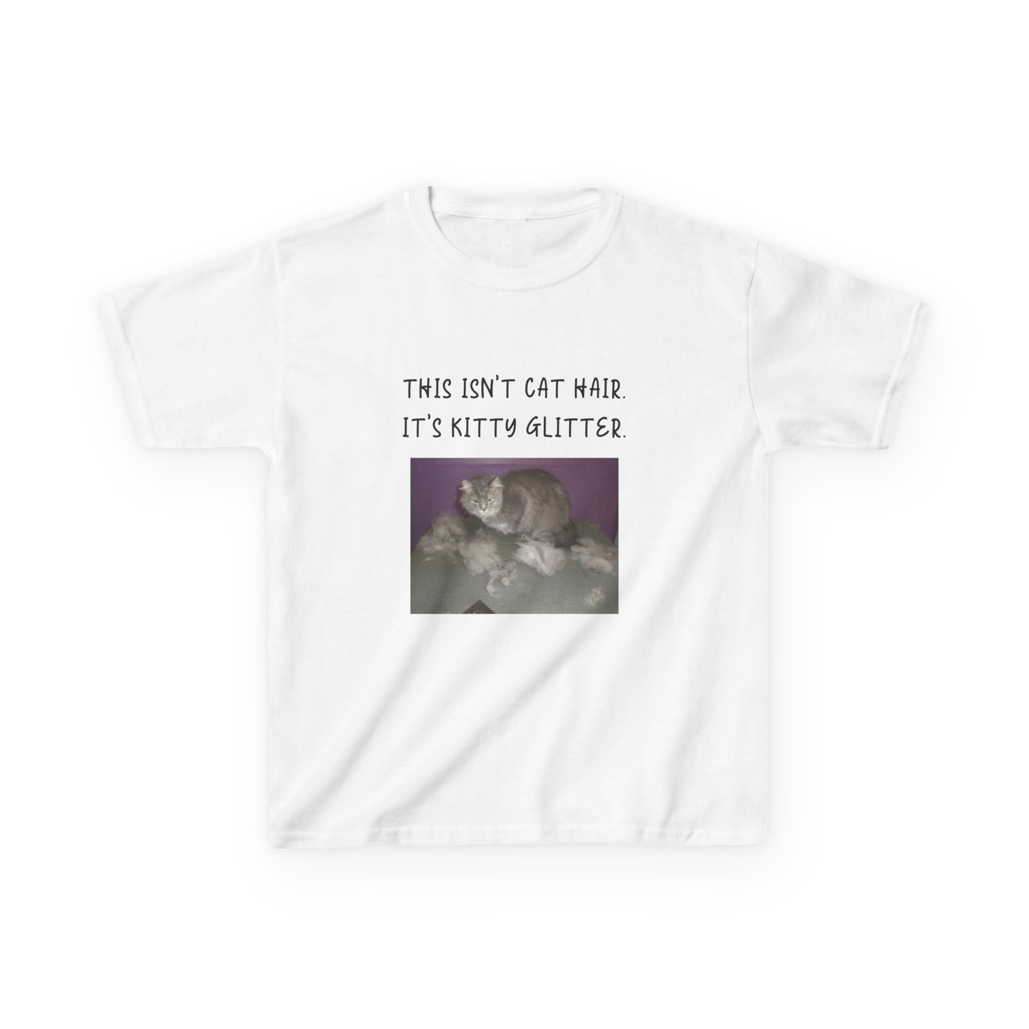 Brighten up your child's wardrobe with this playful Kids Heavy Cotton™ Tee! Featuring a whimsical design that reads, "This isn't cat hair. It's kitty glitter," this tee brings laughter and personality to any outfit. Perfect for children who love their furry friends, this shirt combines comfort with a lighthearted vibe that’s ideal for everyday wear or special occasions. Whether it's casual playdates, family gatherings, or just lounging at home, this tee is a delightful addition to any young cat lover's collection. Great for birthdays, holidays, or just because!