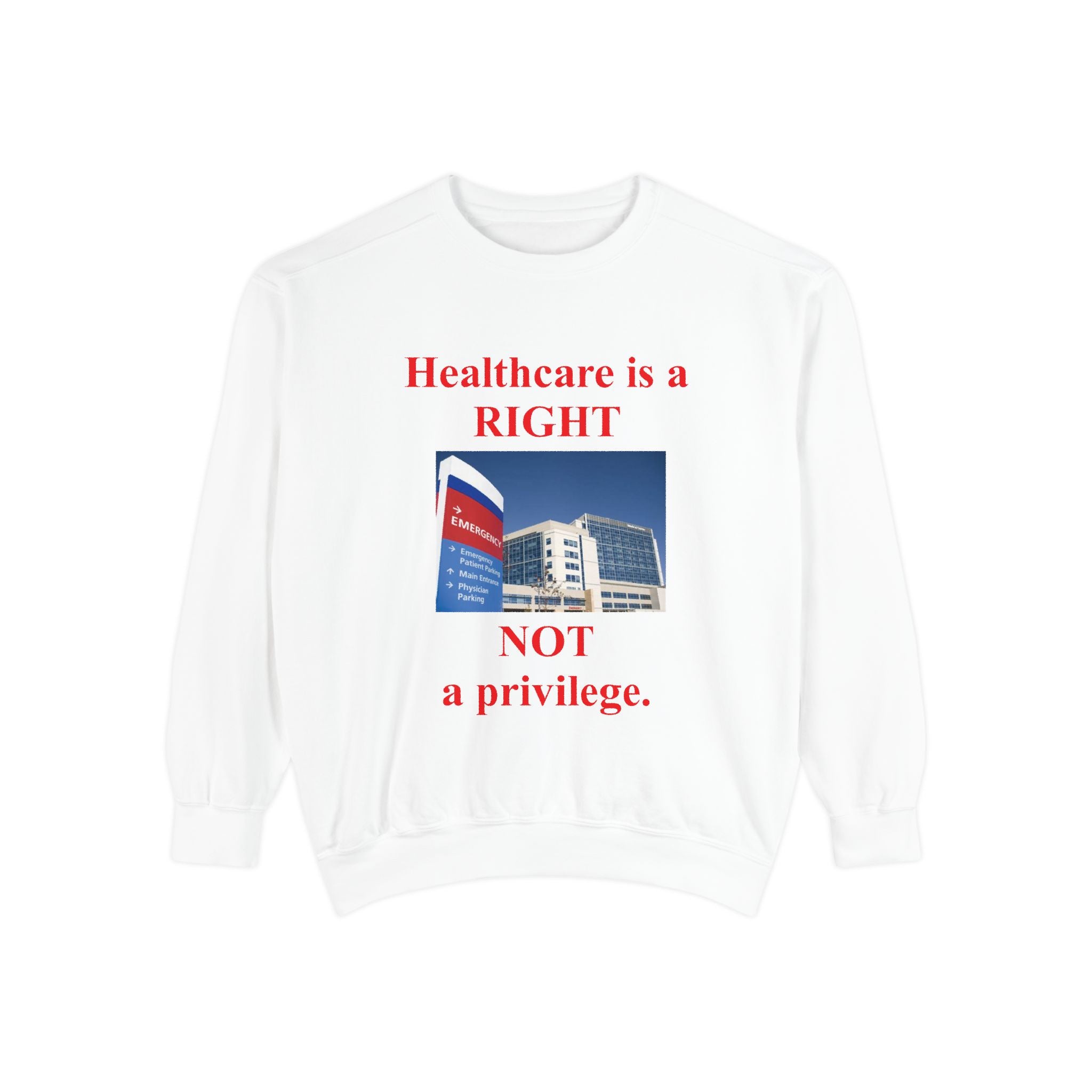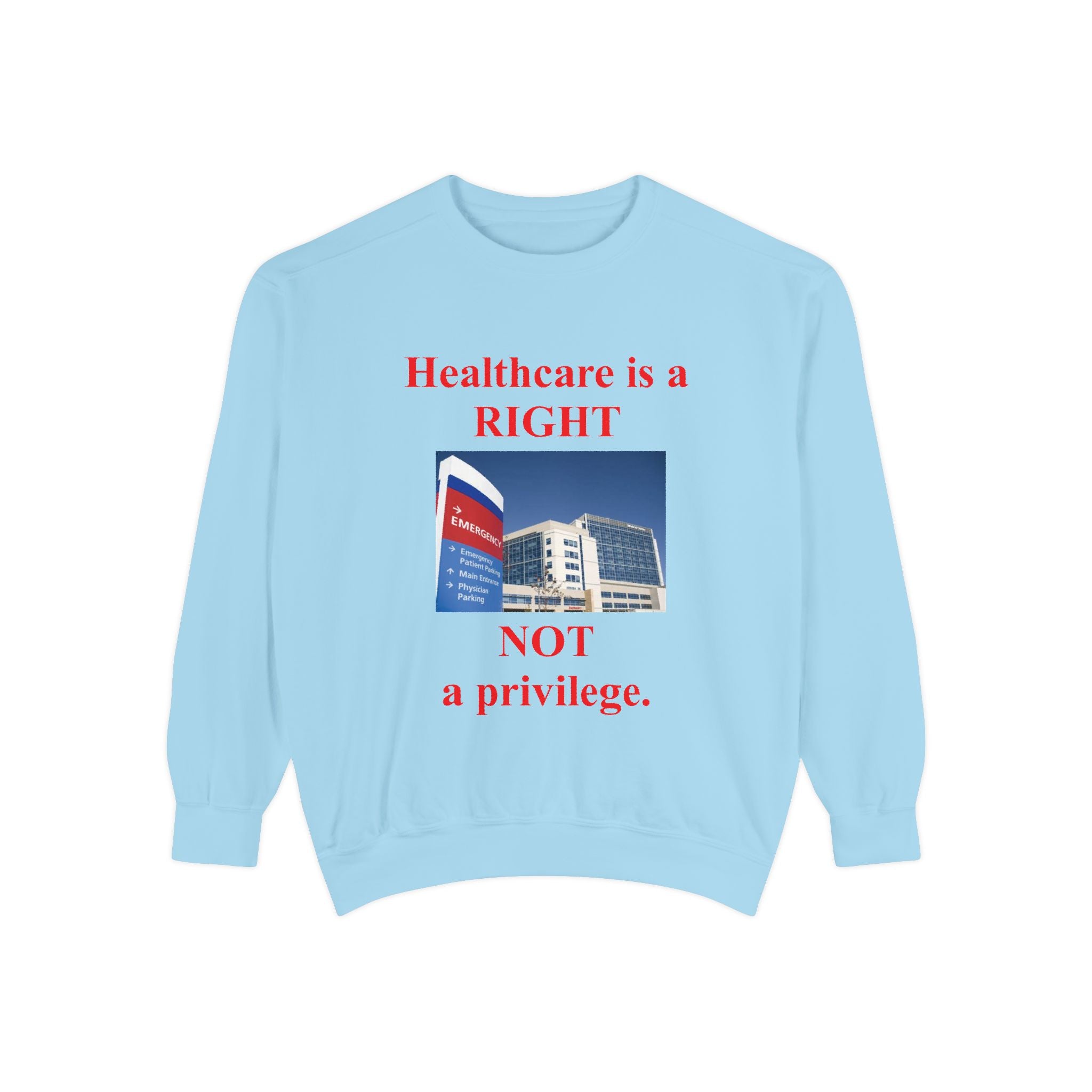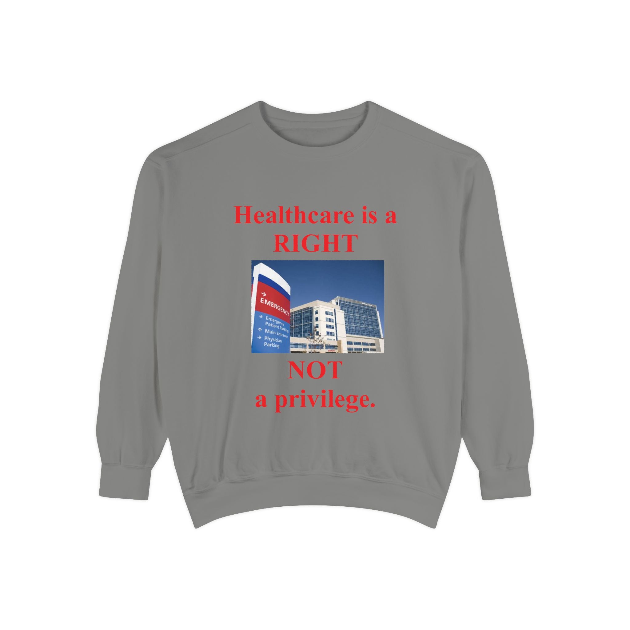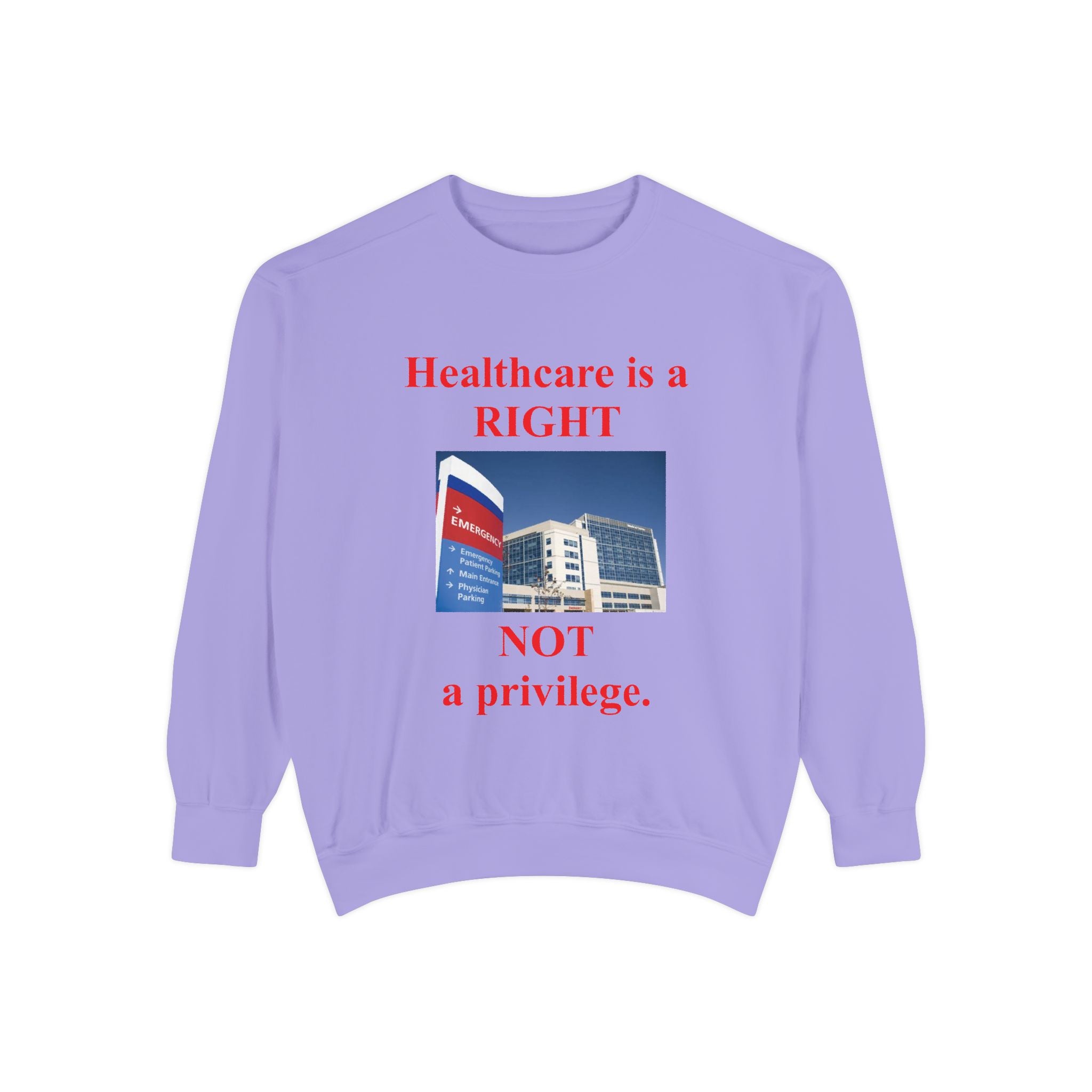 Stay cozy and stylish with this unisex garment-dyed sweatshirt. Its relaxed fit and soft fabric make it perfect for casual outings, lounging at home, or supporting your causes in comfort. Ideal for anyone passionate about healthcare rights, this sweatshirt embodies a strong message while keeping you snug. Whether you're looking for a comfortable addition to your wardrobe or a thoughtful gift for someone special, this piece is perfect for social justice events, casual gatherings, or just everyday wear. Celebrate causes close to your heart during holidays, protests, or awareness events with this impactful piece.