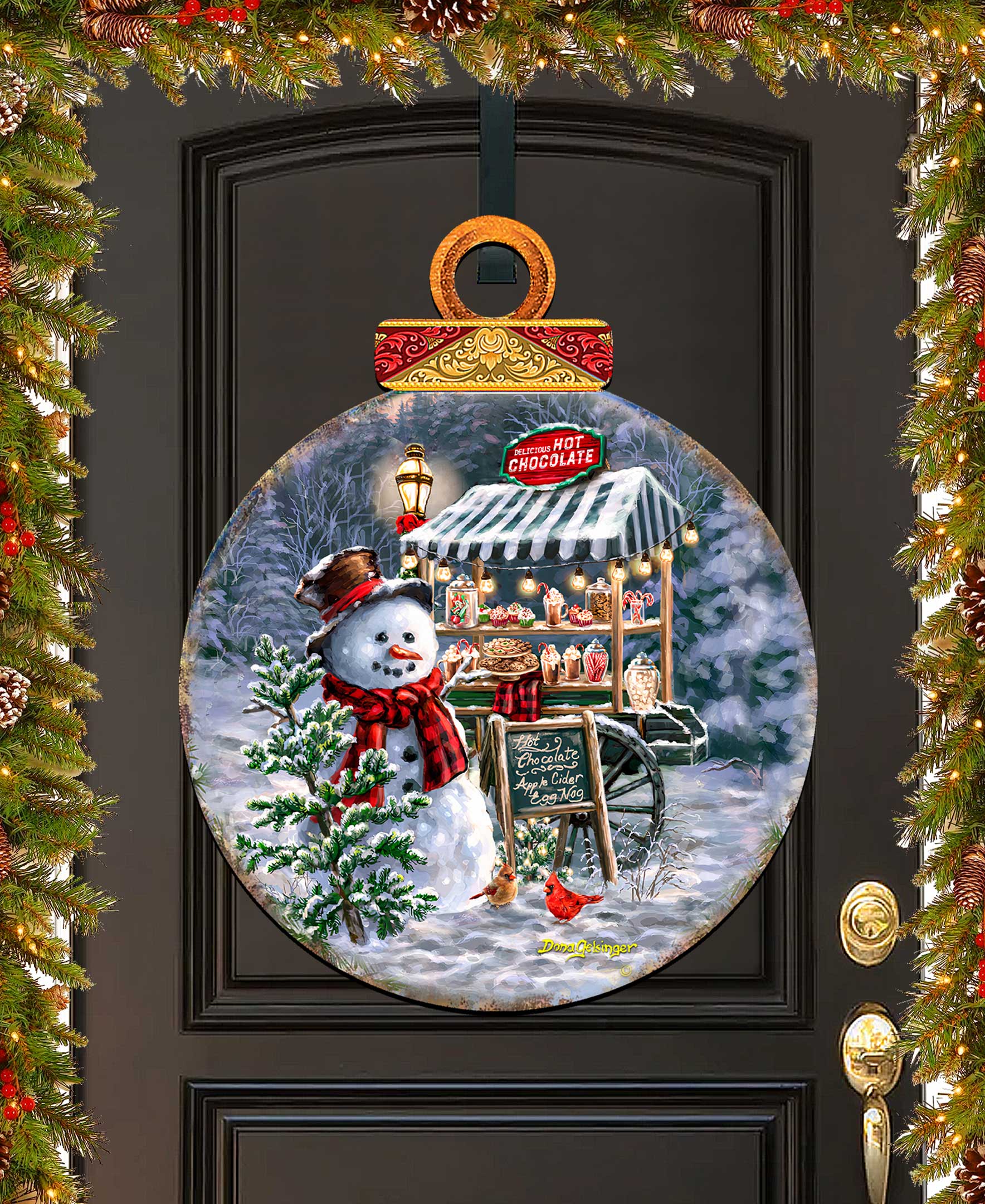 This holiday season, liven up your front door with the Hot Chocolate Stand - Frosty Fun Holiday Door Decor by G. Debrekht. Expertly handcrafted from high-quality materials, this charming snowman Decor will help you create a festive atmosphere in any space. Enjoy the winter wonderland with this door Decor!