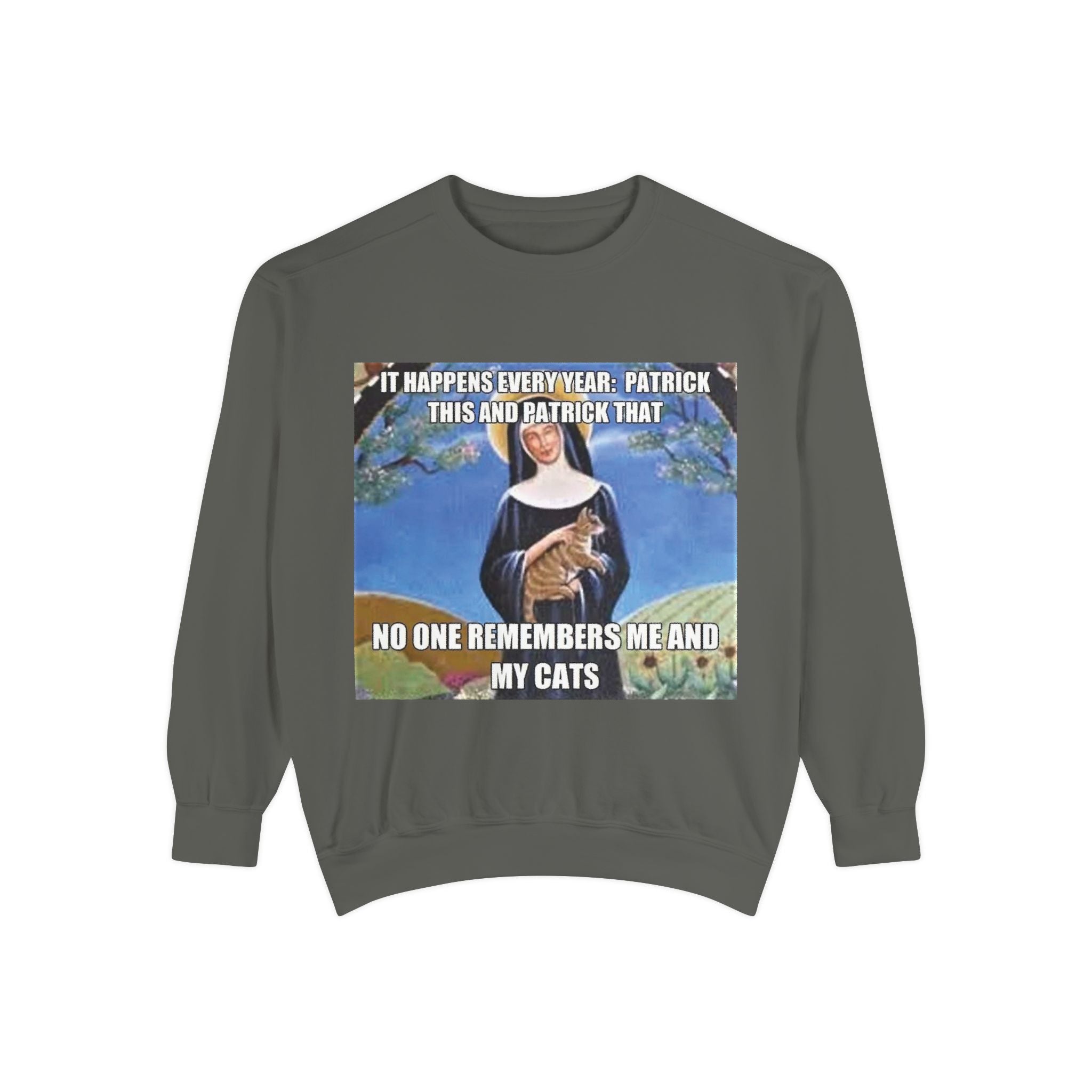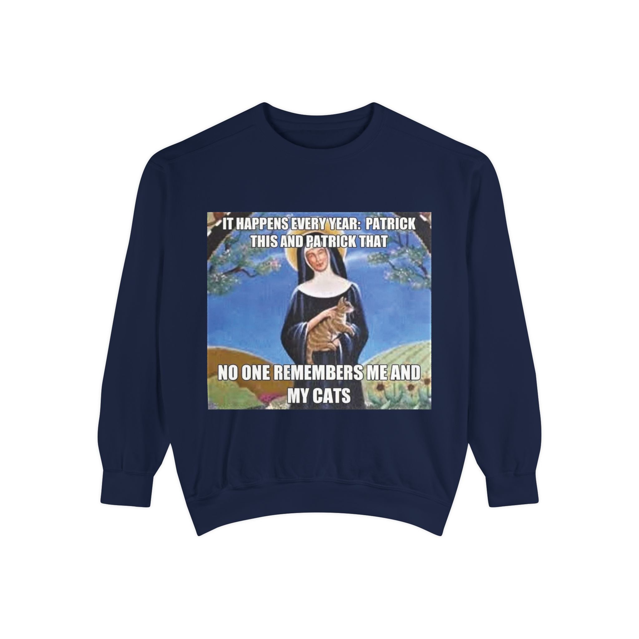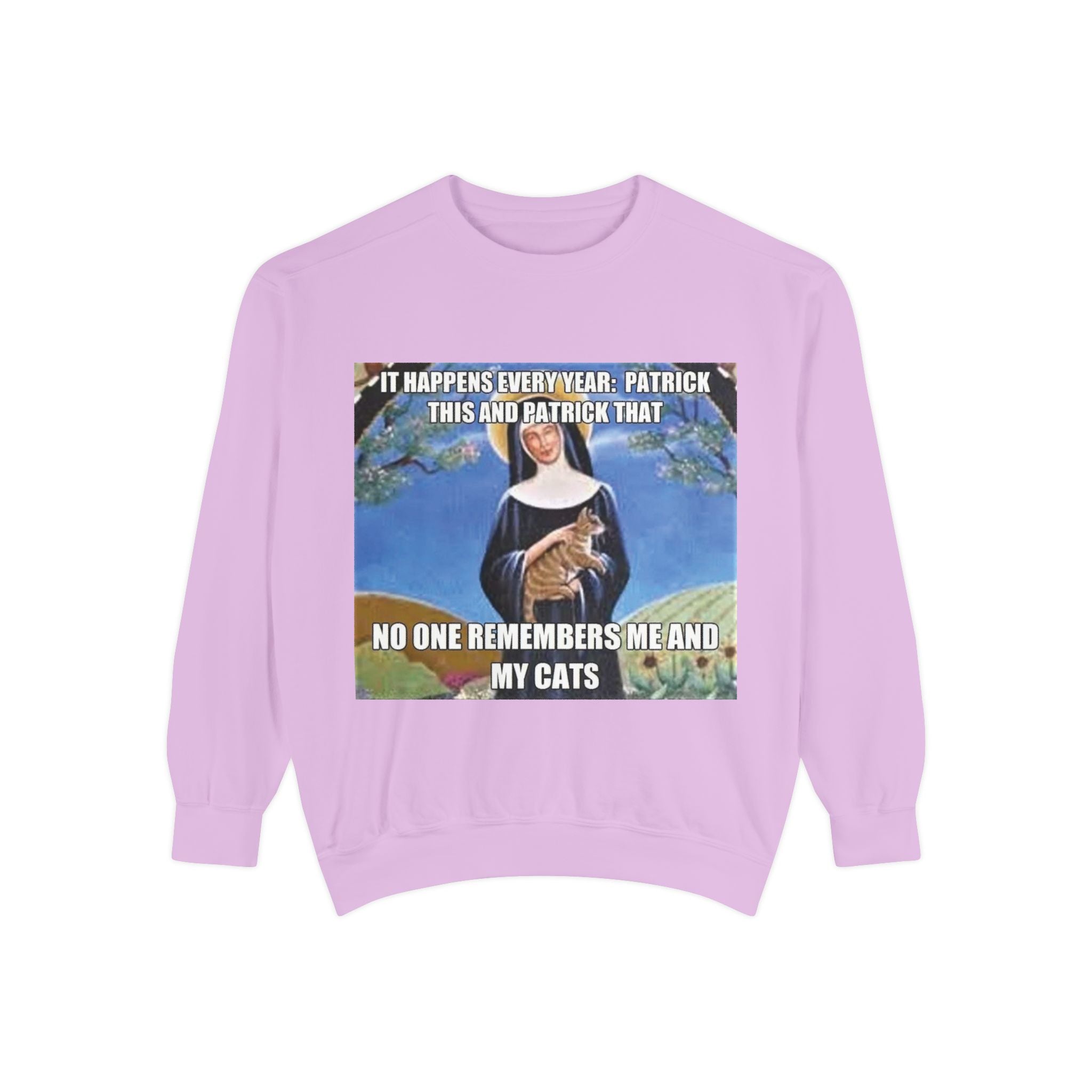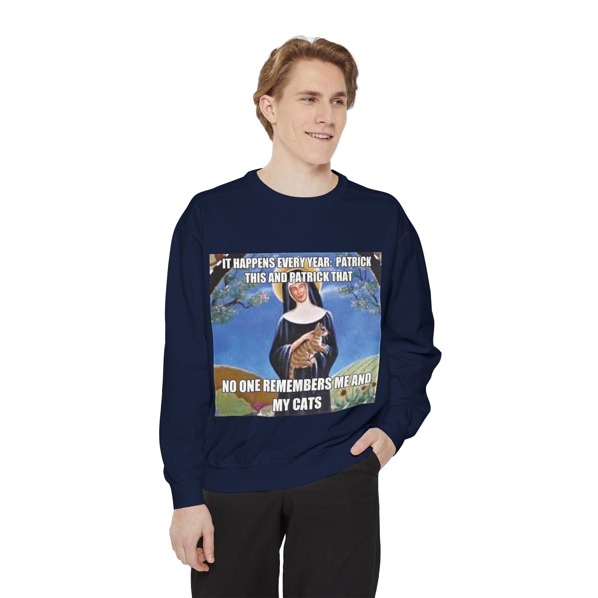 Introducing our versatile Unisex Garment-Dyed Sweatshirt, perfect for a cozy day at home or outings with friends. This sweatshirt exudes comfort and style, making it an ideal addition to any casual wardrobe. Its relaxed fit and soft fabric create an inviting atmosphere, allowing you to feel at ease while looking trendy. Suitable for a wide range of occasions, this garment is a great choice for birthdays, holidays, or simply to treat yourself. Whether you're lounging, running errands, or enjoying a casual meet-up, this sweatshirt is relevant for those who appreciate comfort blended with fashion. Celebrate special moments and enjoy everyday wear with a touch of humor that resonates with cat lovers and those who enjoy lightheartedness in their style.