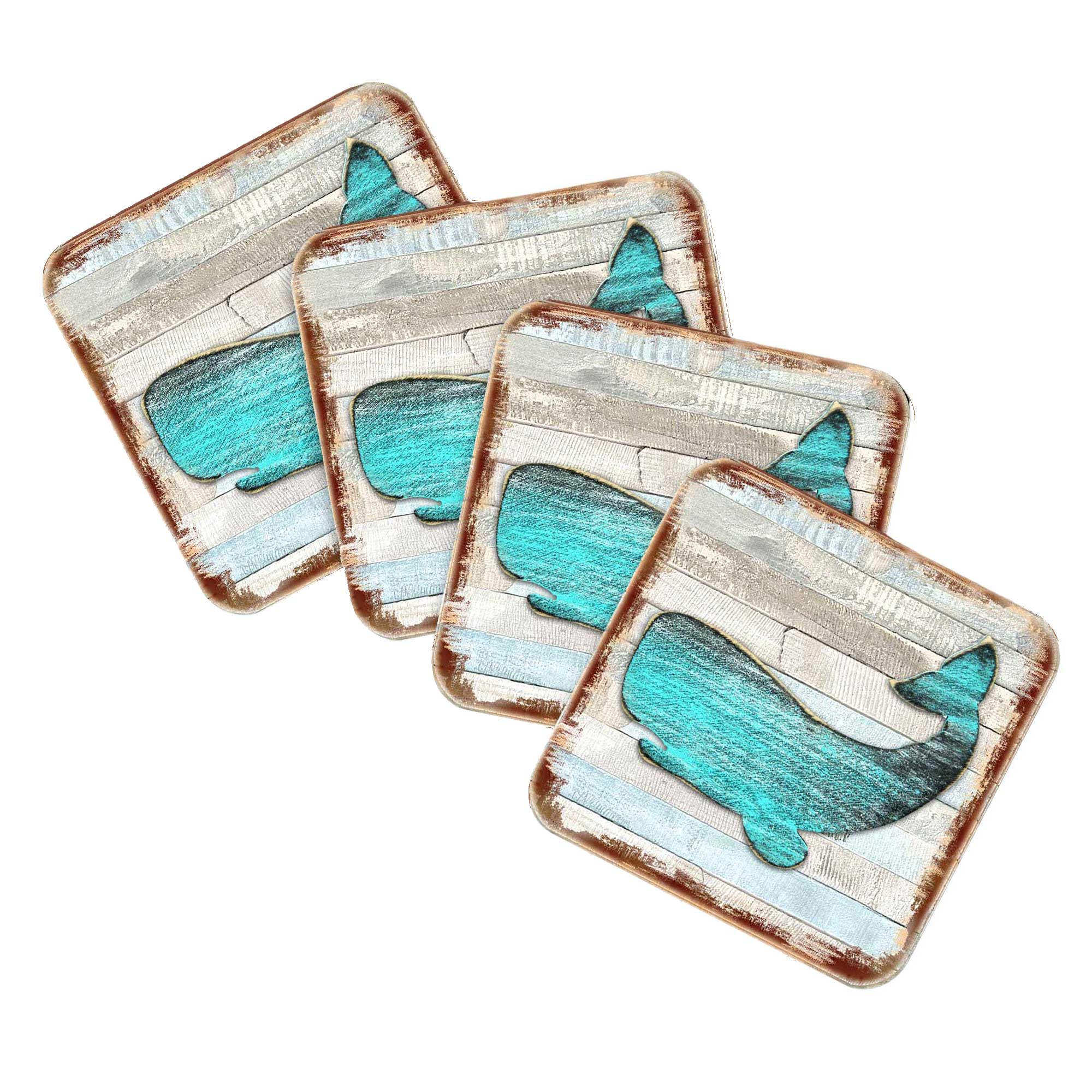 Humpback Whale Coastal Wooden Cork Coasters Gift Set - 8198516-2-9C-S4