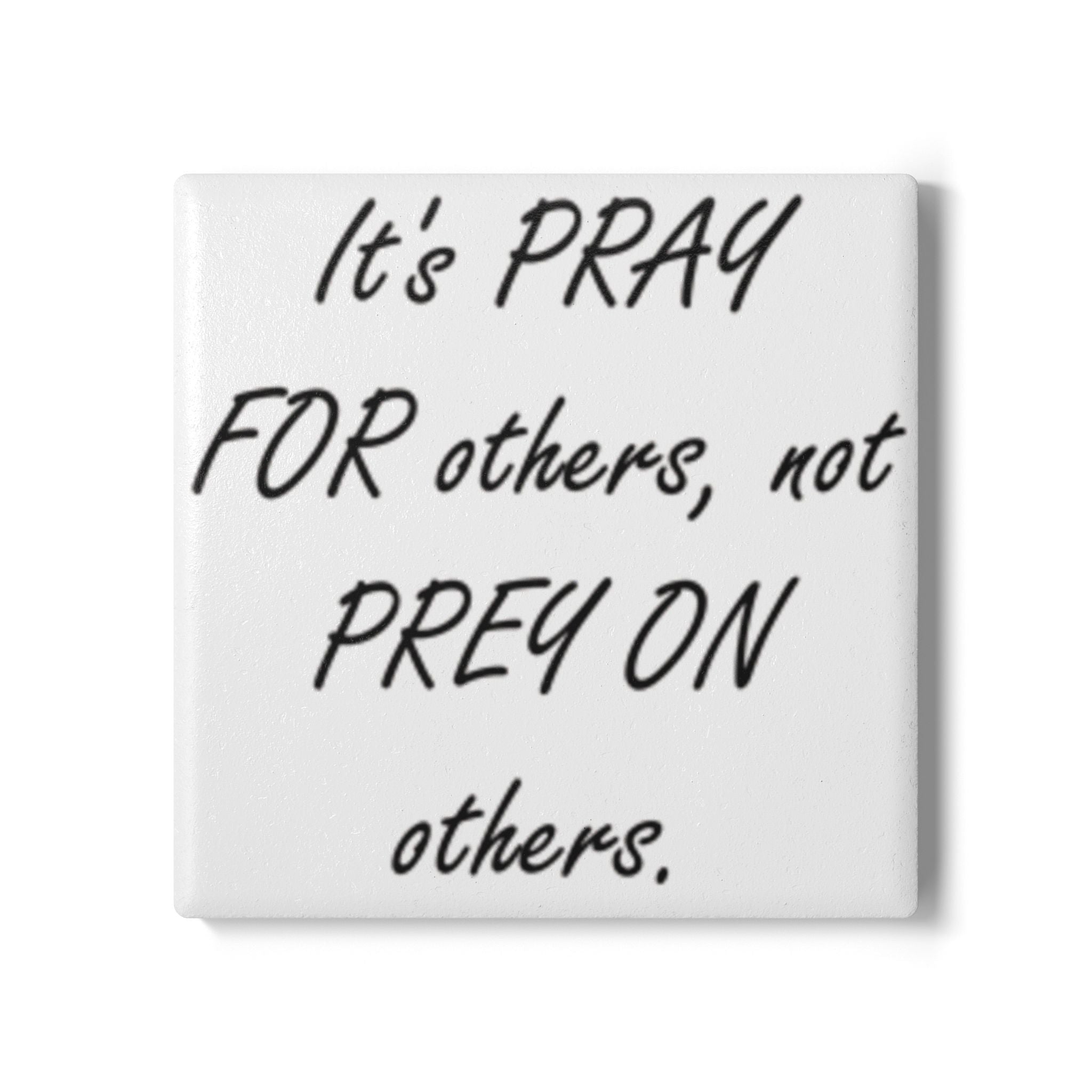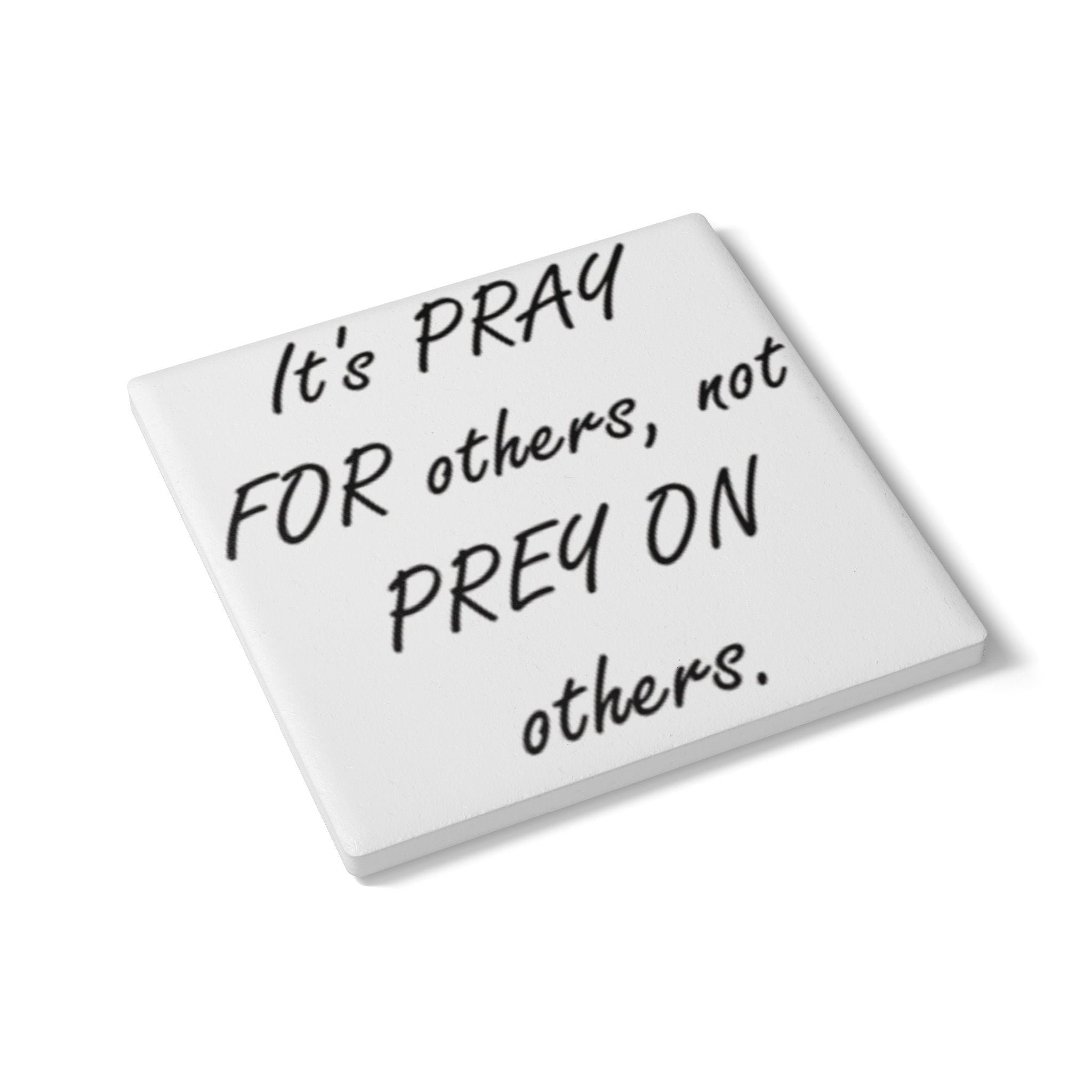 This ceramic coaster isn't just about protecting surfaces—it’s a conversation piece that challenges perspectives. Featuring the message 'It's PRAY for others, not PREY on others,' this design encourages empathy, integrity, and mindful interactions. Crafted from premium white ceramic with a non-slip cork backing, it offers both function and inspiration. Ideal for home decor, gifts, and everyday reminders to choose kindness.