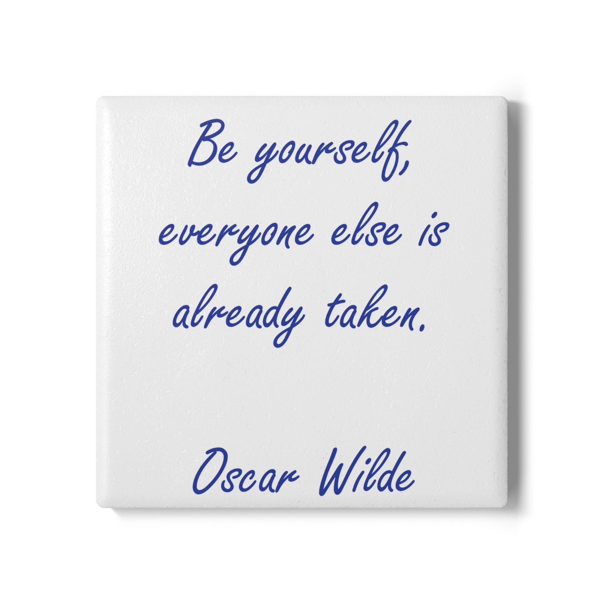 The design features a clever and timeless quote by Oscar Wilde: “Be yourself; everyone else is already taken.” With its blend of humor and profound advice, this quote serves as a playful yet meaningful reminder to embrace your individuality and authenticity. Whether you're hosting an elegant dinner party or enjoying a quiet night in, this coaster invites charm and inspiration into your daily life.