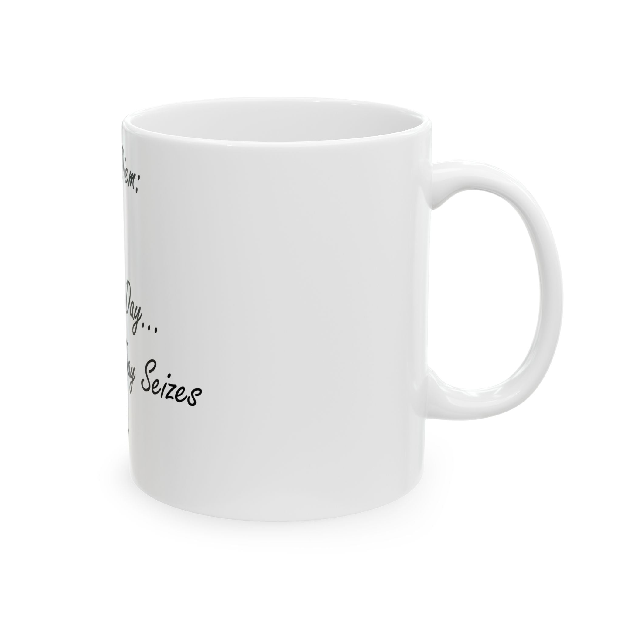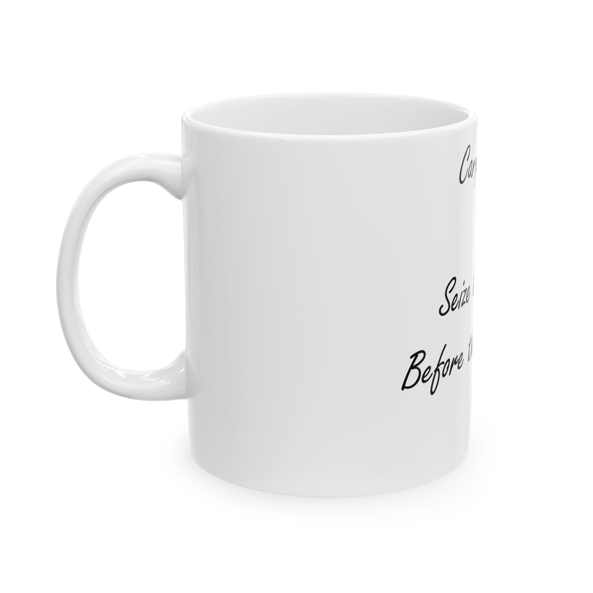 Introducing our Ceramic Mug, thoughtfully designed for those who embrace each day fully. This sleek and glossy mug is perfect for your morning coffee ritual or a cozy evening tea. The vibrant colors and eye-catching designs add a playful touch to your kitchen or office, making each sip a joyful experience. Ideal for students, professionals, or anyone who loves motivational quotes, this mug serves as a daily reminder to "Seize the Day!" Whether you're celebrating a birthday, graduation, or simply treating yourself, this ceramic mug is both a functional item and a delightful gift. Celebrate the small joys in life with every brew, perfect for any occasion, including holidays like Mother's Day, Christmas, or any special day where inspiration is welcome.