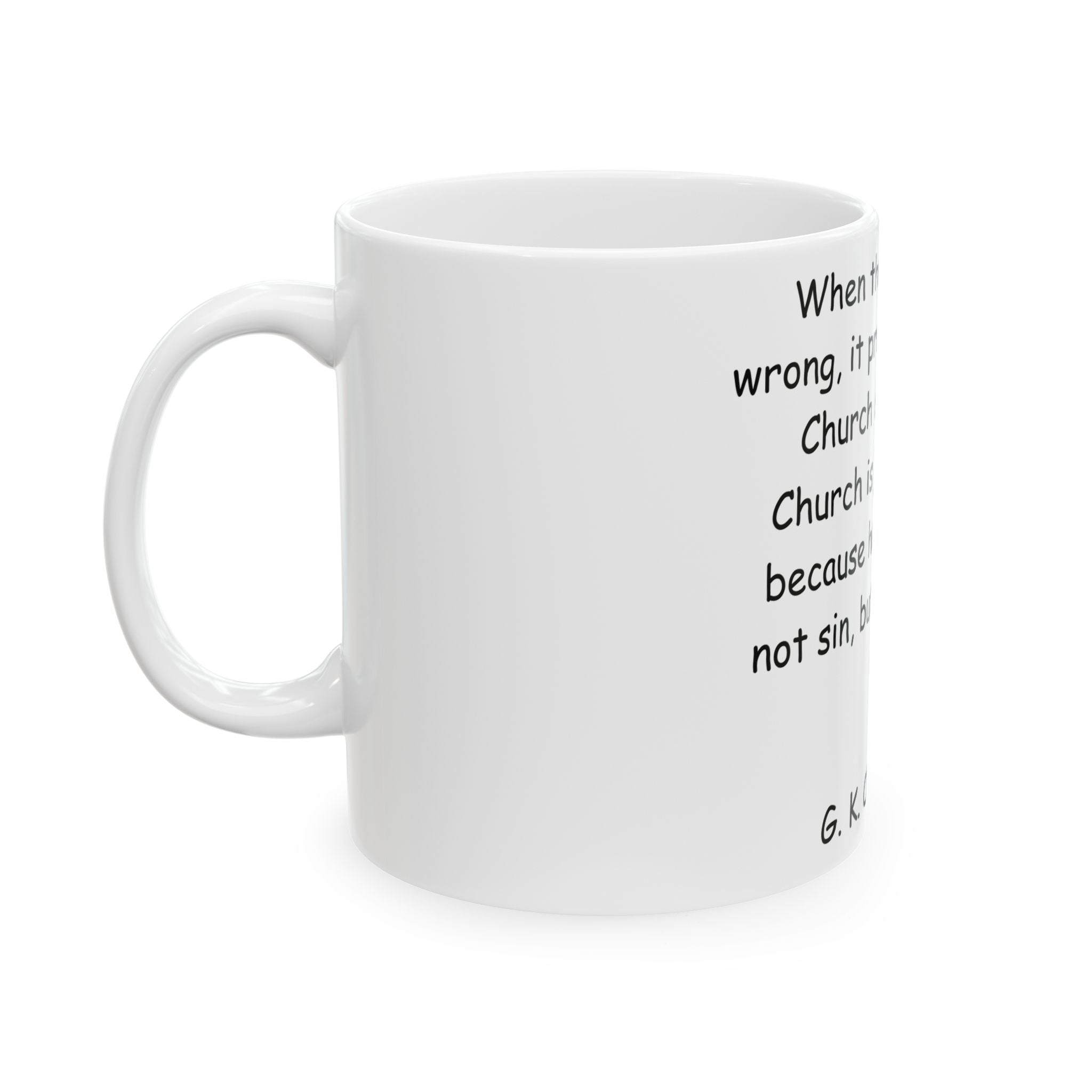 Bring inspiration and reflection to your daily routine with this Ceramic Mug, featuring a profound quote by G.K. Chesterton. Its vibrant colors and glossy finish highlight the timeless message, making every sip a moment of thoughtful contemplation. Designed with comfort and elegance in mind, the ergonomic C-handle ensures effortless use at home or in the office. Perfect for personal reflection or as a meaningful gift, this mug suits occasions like Christmas, Thanksgiving, Mother’s Day, or simply to brighten someone’s day. Elevate your drinkware collection with a piece that blends warmth, personality, and philosophical depth.
