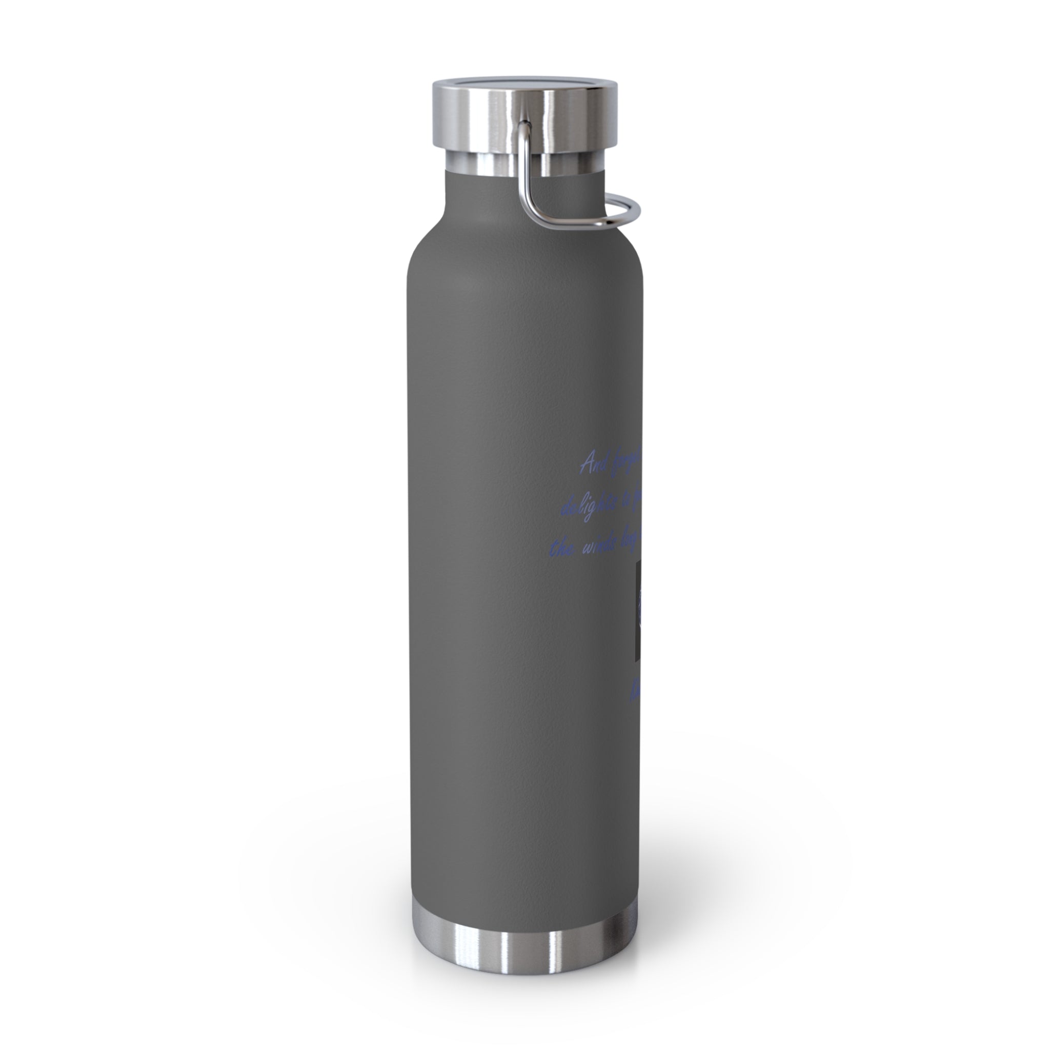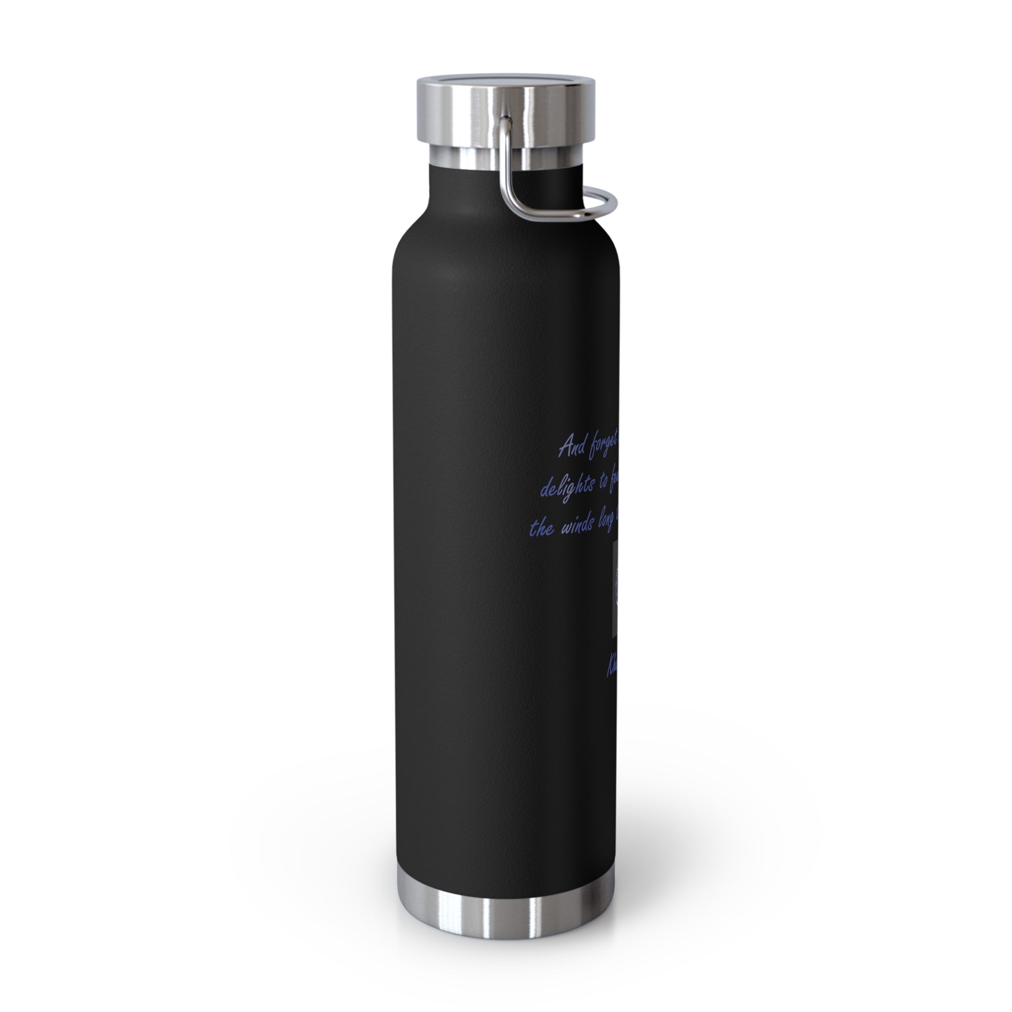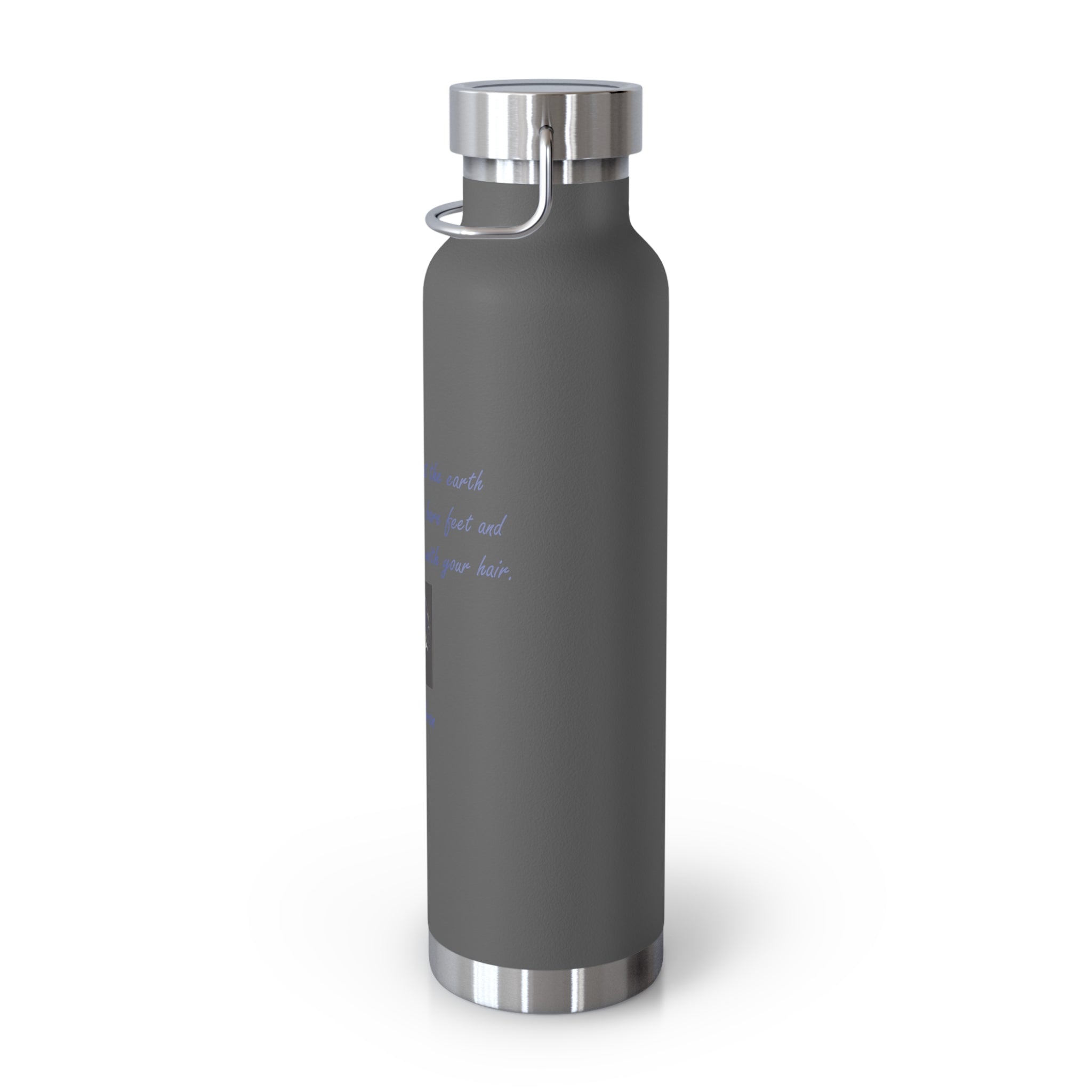 Stay connected to the beauty of nature and the vastness of the universe with this eco-friendly vacuum insulated water bottle, featuring a poetic quote by Khalil Gibran: "And forget not that the earth delights to feel your bare feet and the winds long to play with your hair."