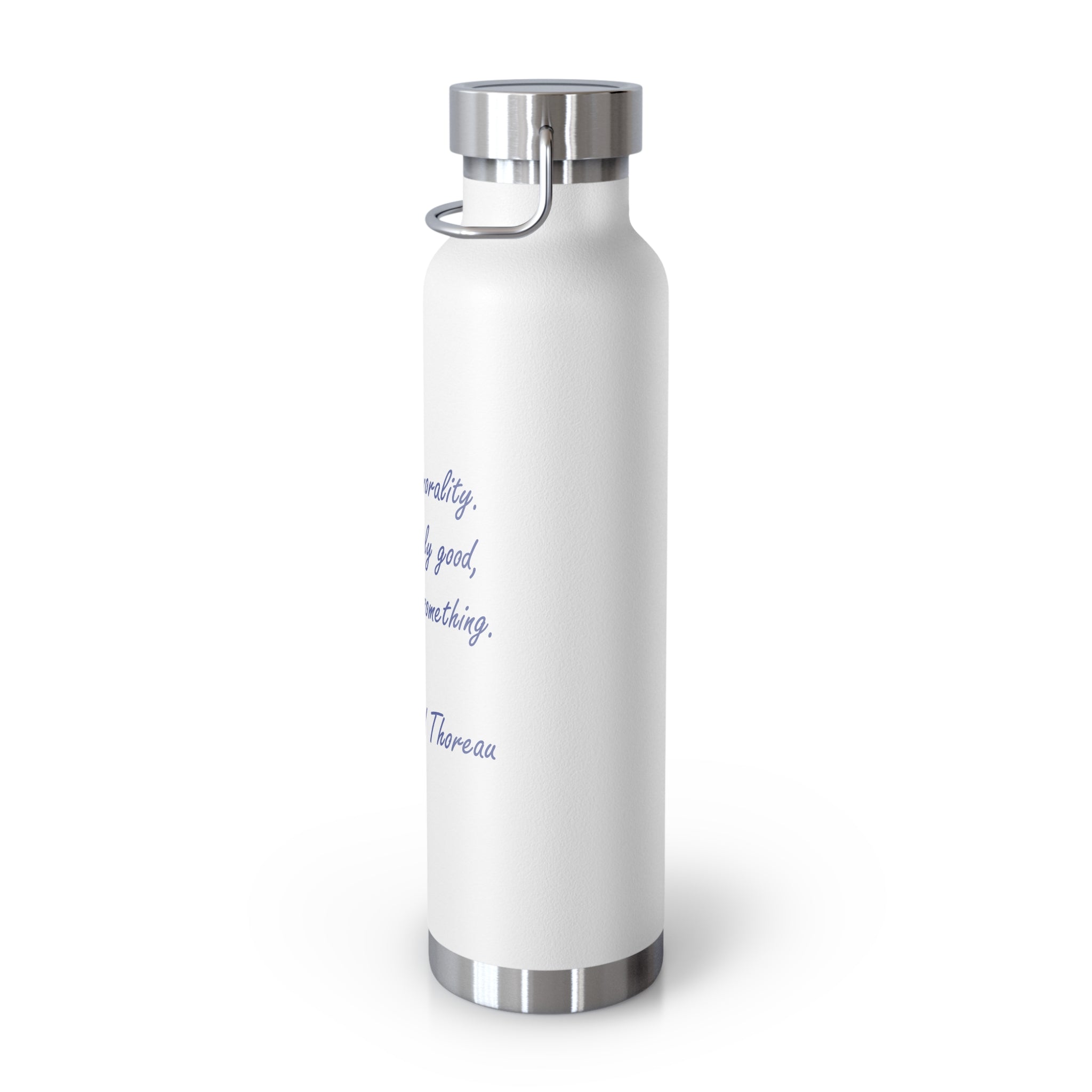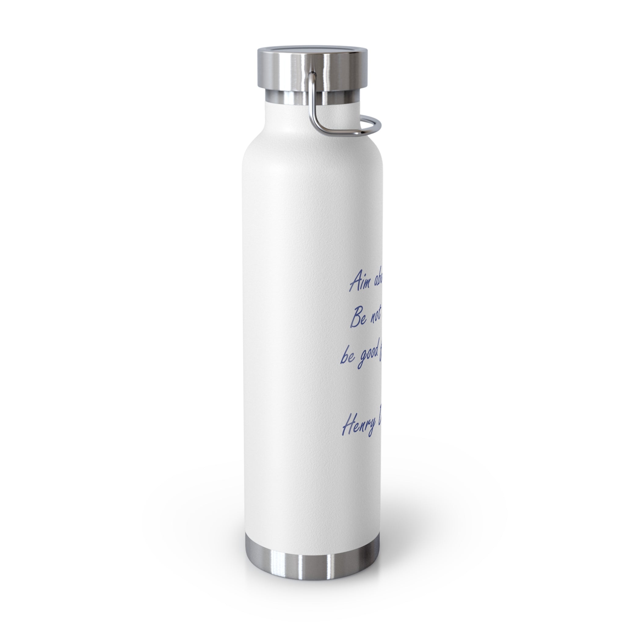 Elevate your hydration routine with our sleek and eco-friendly Copper Vacuum Insulated Bottle, featuring a timeless quote from Henry David Thoreau: "Aim above morality. Be not simply good; be good for something." This meaningful design inspires you to live with purpose and integrity, encouraging thoughtful choices throughout your day.