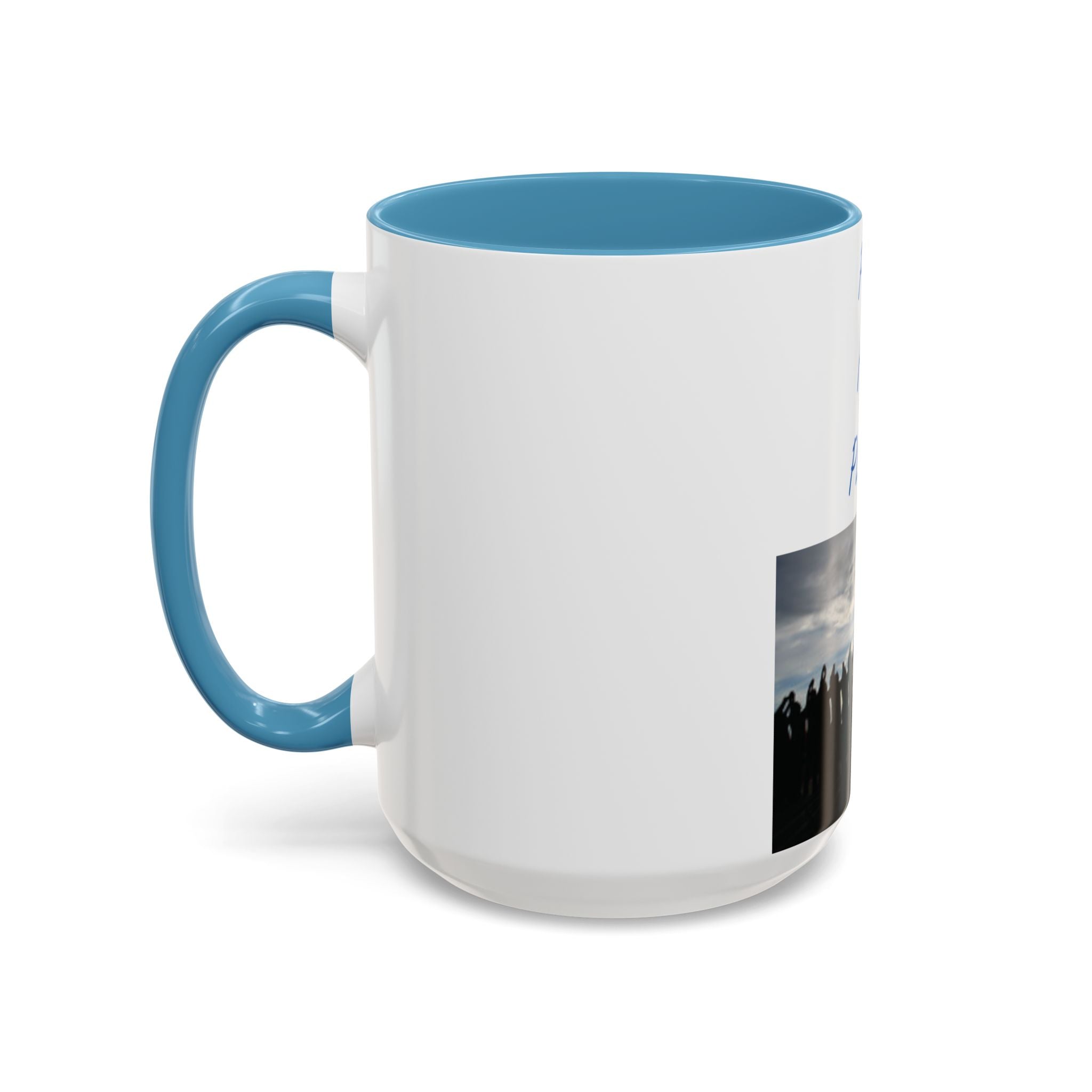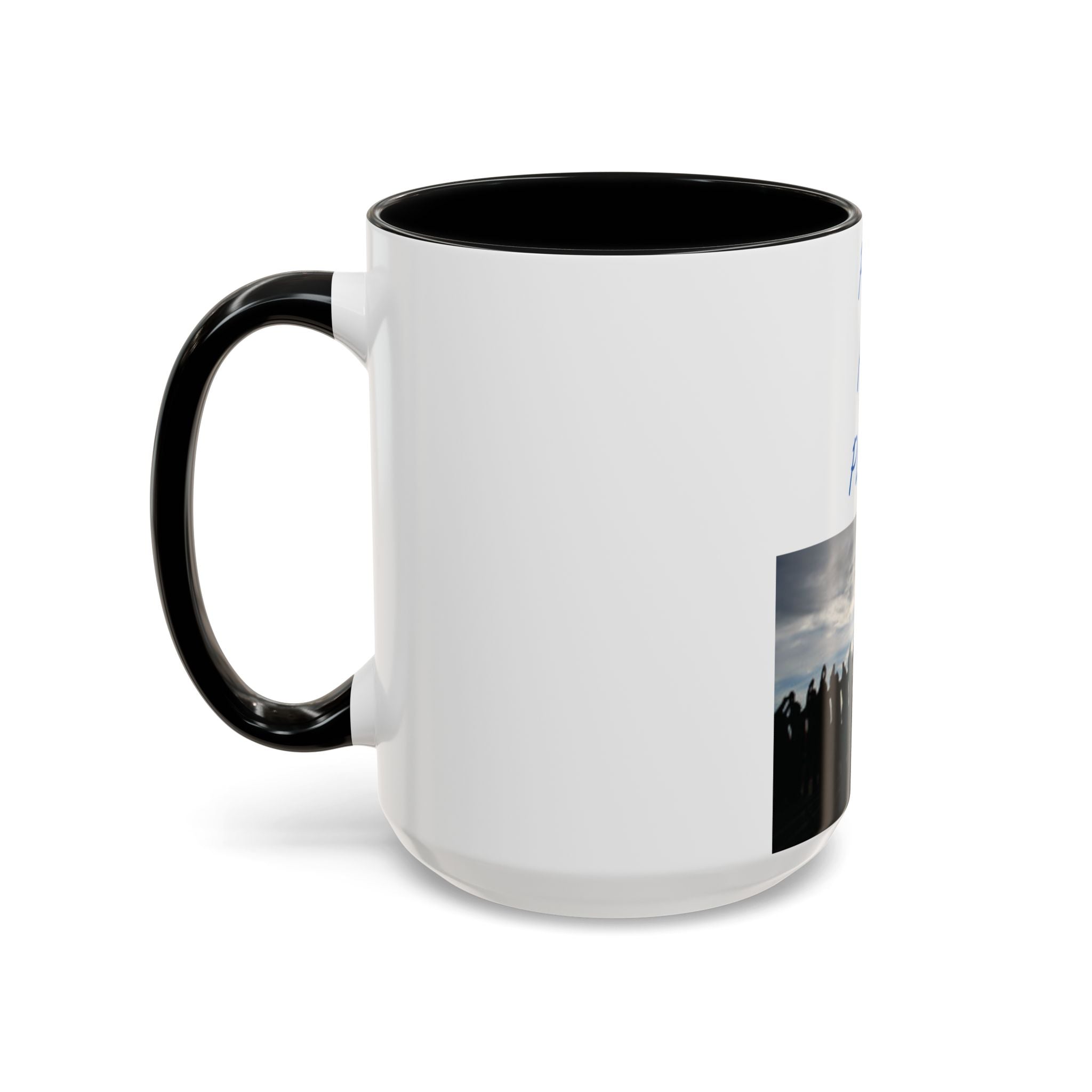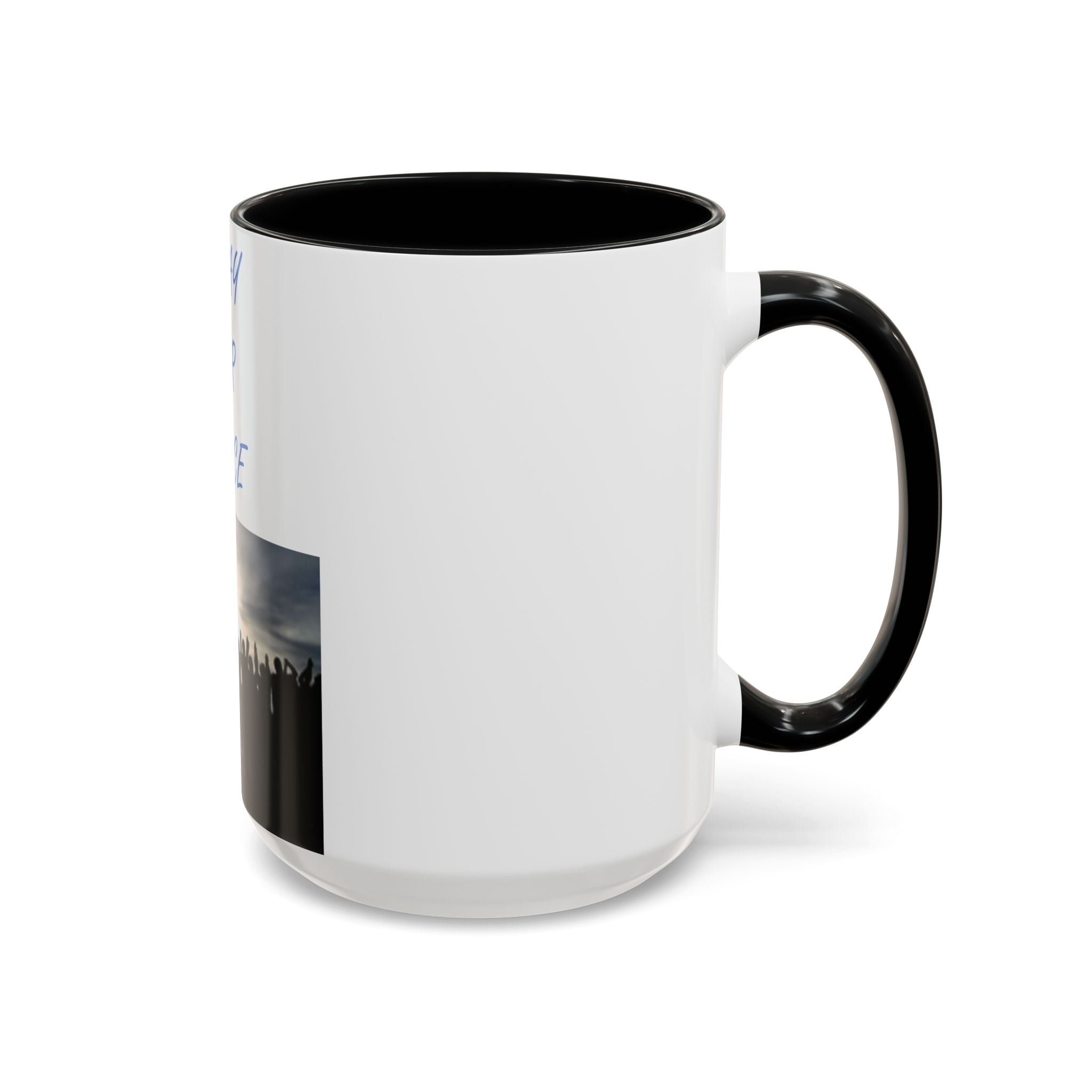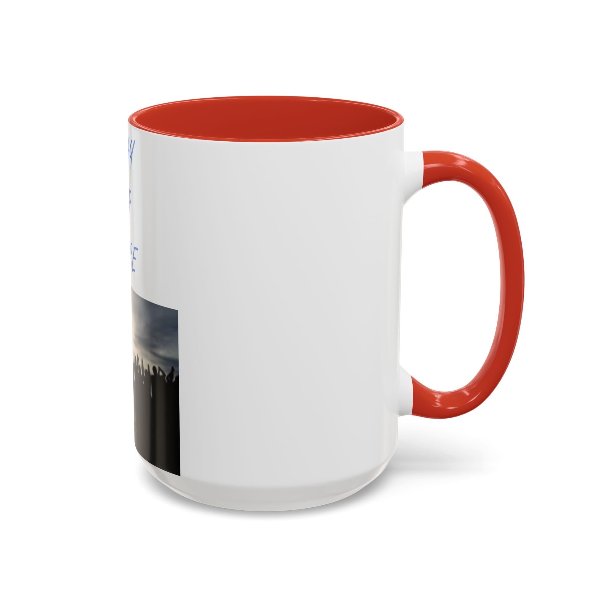 Start your morning with purpose and unity, thanks to this vibrant Accent Coffee Mug featuring the uplifting design: "Pray for Peace." The artwork portrays a group of individuals standing together, facing a radiant rising sun with arms uplifted in prayer—a beautiful representation of harmony and solidarity. This design resonates with free spirits, flower children, and advocates of social justice.
