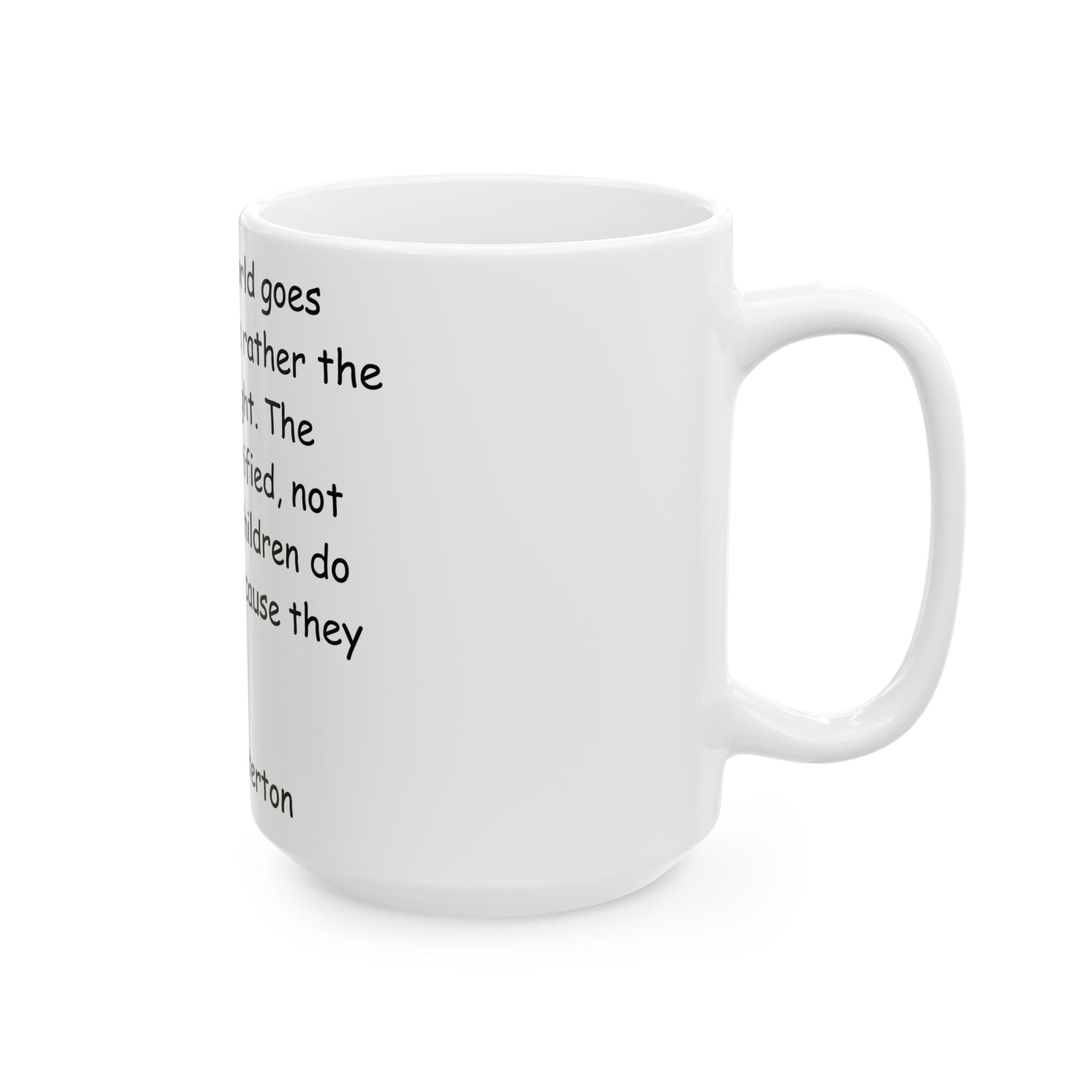 Start your day with inspiration and reflection. This Ceramic Mug features a powerful quote by G.K. Chesterton. With its glossy finish and vibrant design, this mug adds personality and meaning to your coffee or tea ritual, making every sip a moment for thought and warmth. Ideal for personal use or as a meaningful gift for friends, family, or anyone drawn to reflections on faith and human experience. Perfect for birthdays, holidays, or simply as a heartfelt gesture, this mug brings purpose and charm to your daily routine.