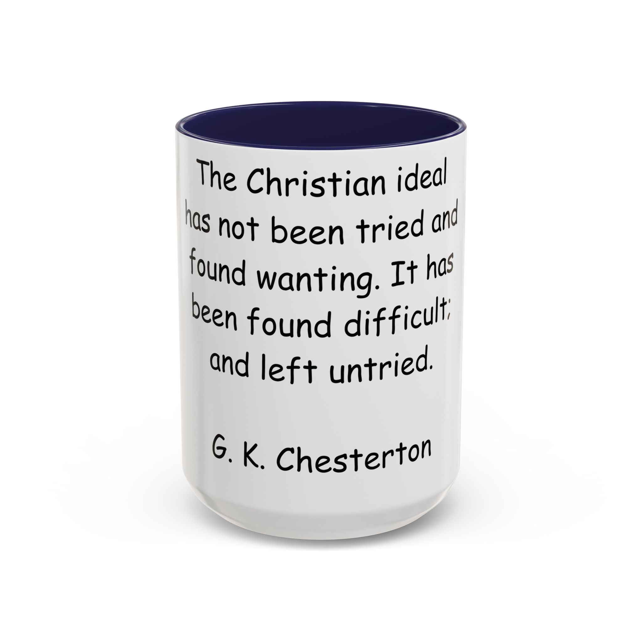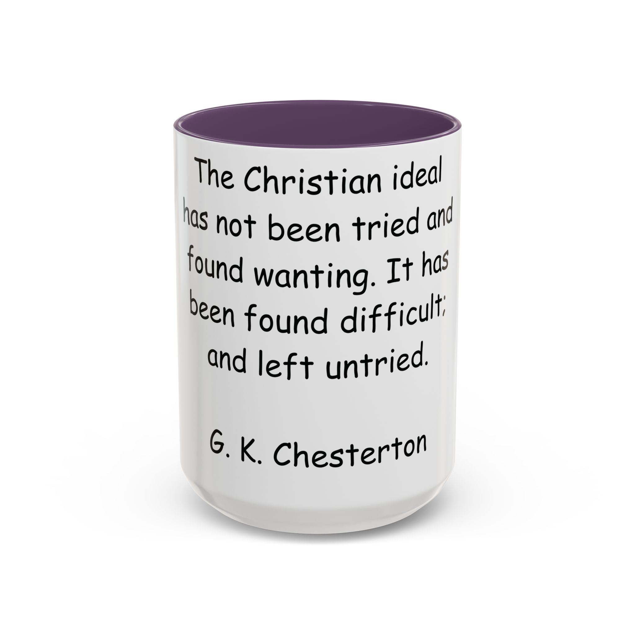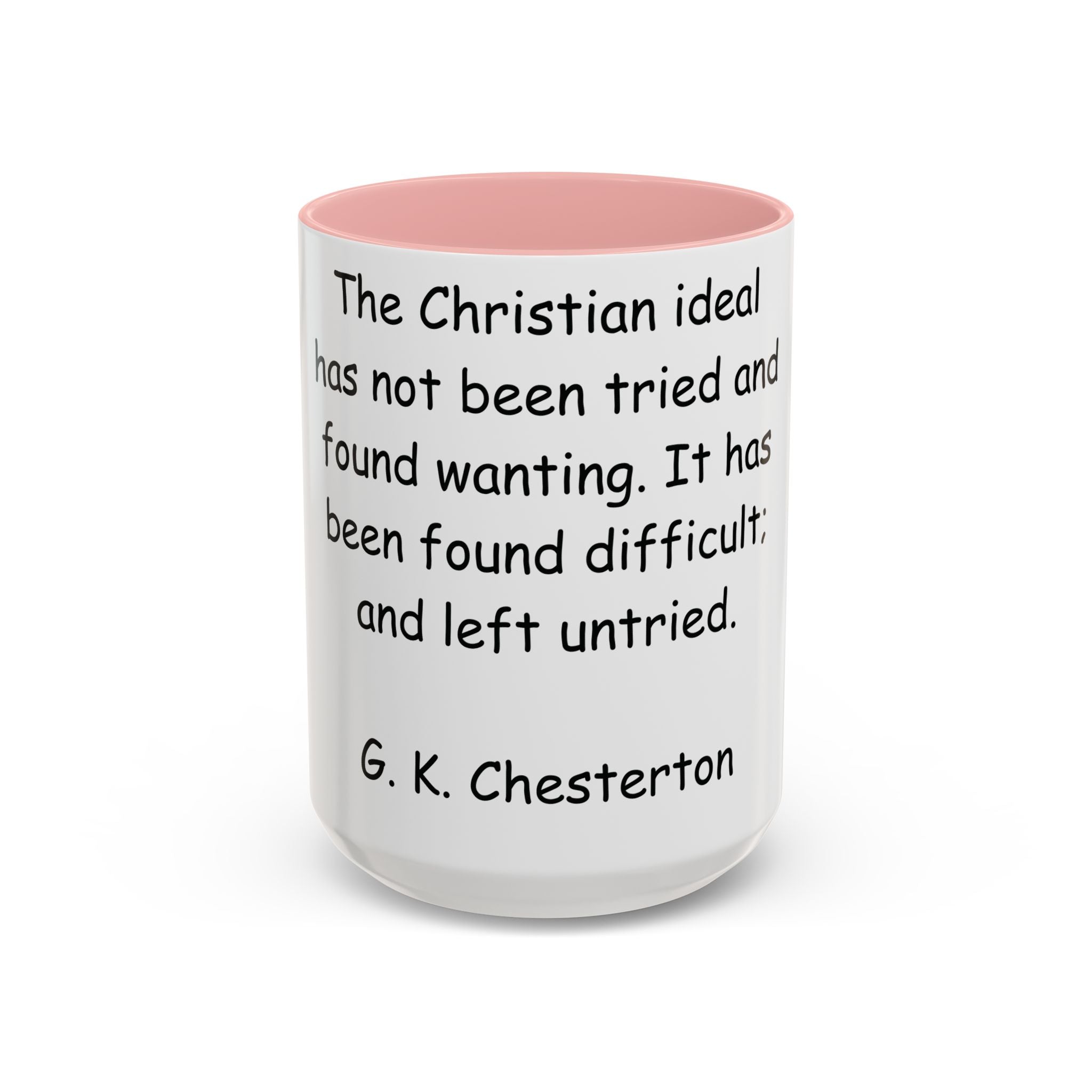 Start each day with inspiration and purpose. This Accent Coffee Mug features a thought-provoking quote by G.K. Chesterton. The vibrant design and glossy finish bring this powerful message to life, making every sip a moment of reflection and warmth. Whether enjoying cozy mornings at home, coffee breaks at work, or casual gatherings, this mug invites meaningful conversations. Perfect for personal use or as a gift, it suits occasions like birthdays, holidays, or simply showing you care. Bring depth and personality to your daily routine with this unique, inspiring piece.