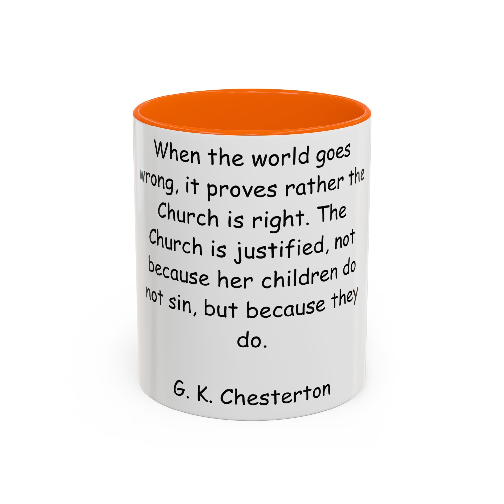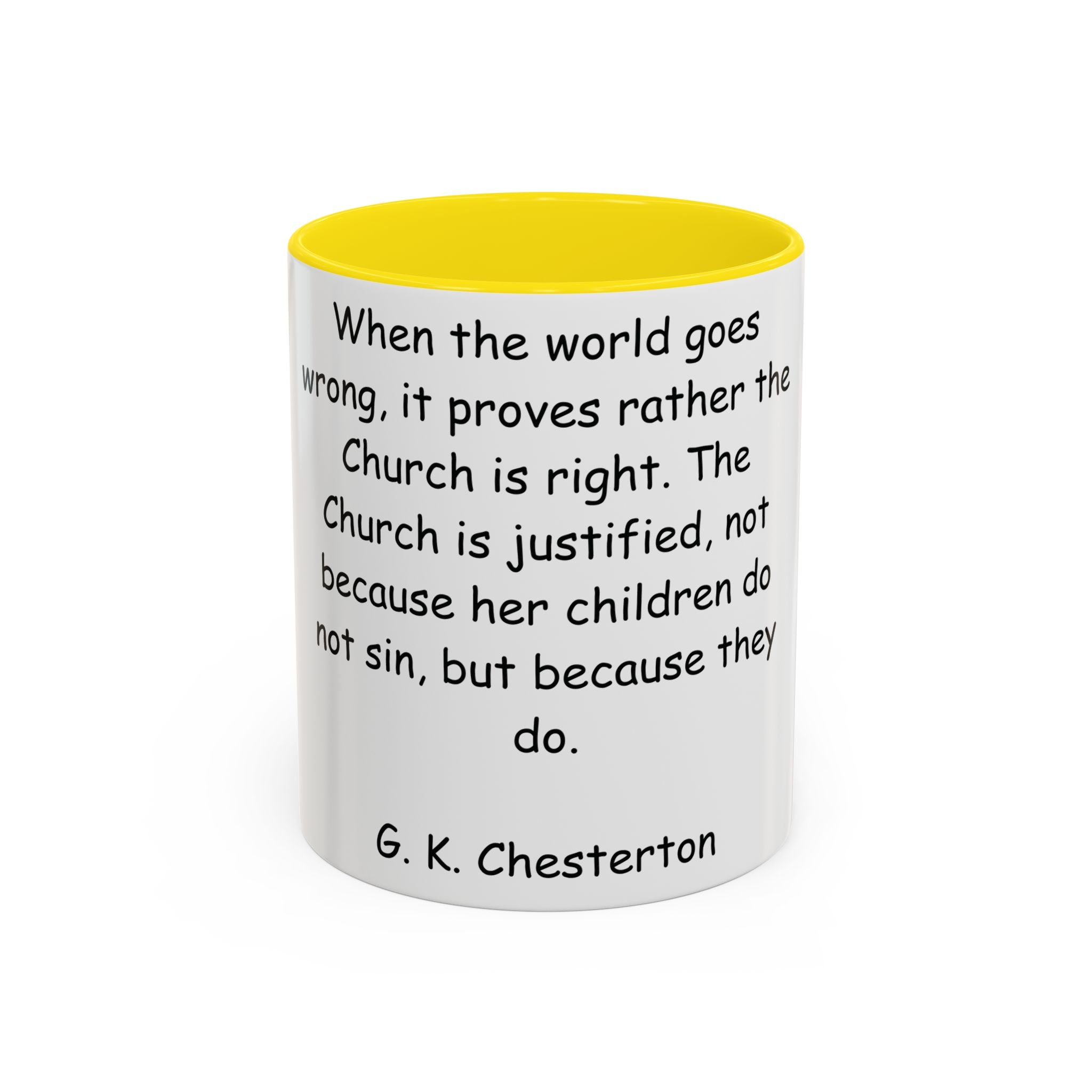 Celebrate life's quiet moments with our Accent Coffee Mug, featuring a thought-provoking quote by G.K. Chesterton. These timeless words inspire reflection and offer profound insight into the human condition.