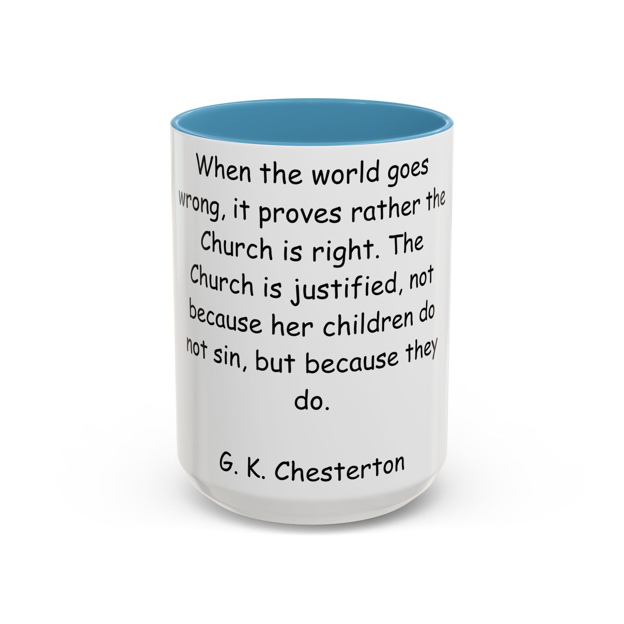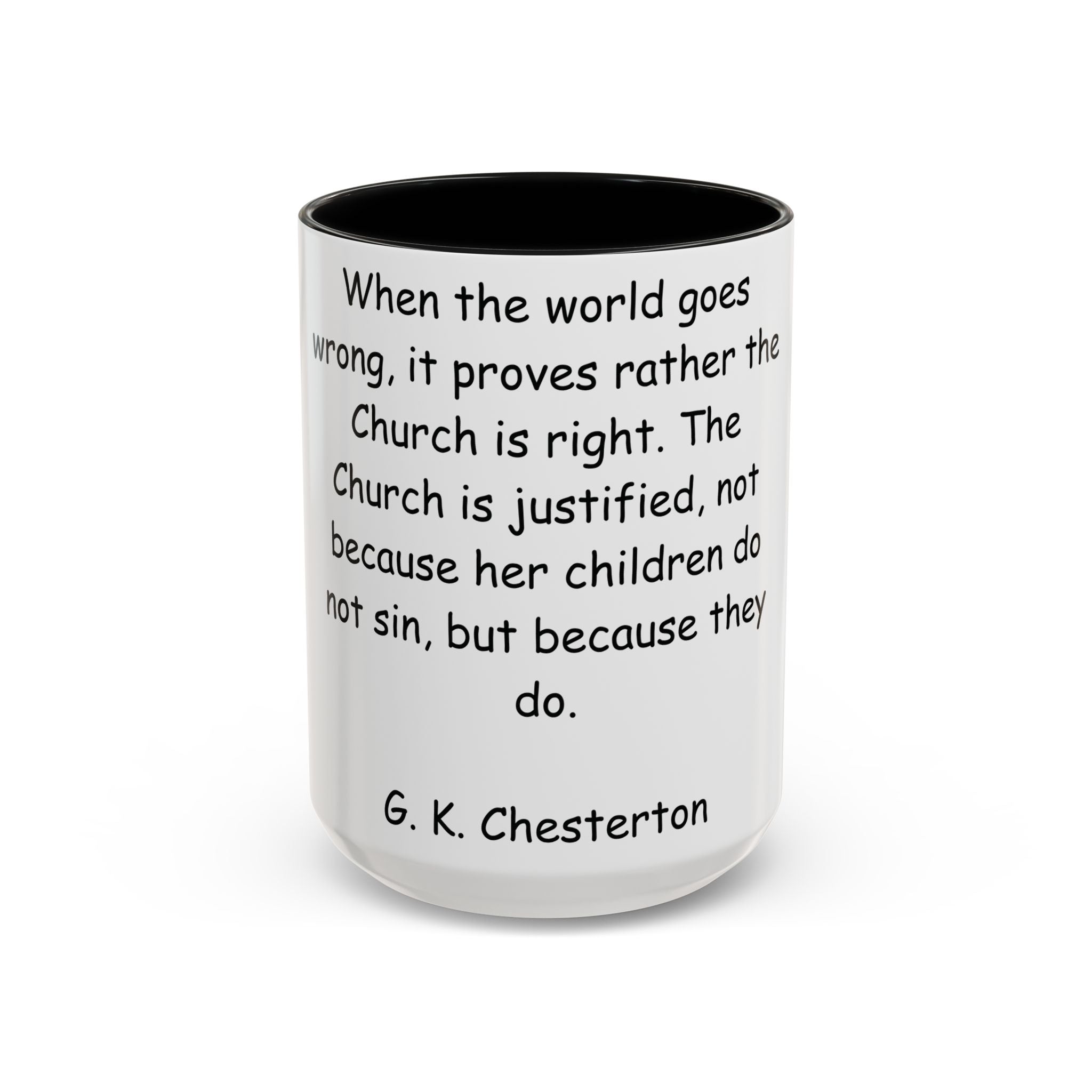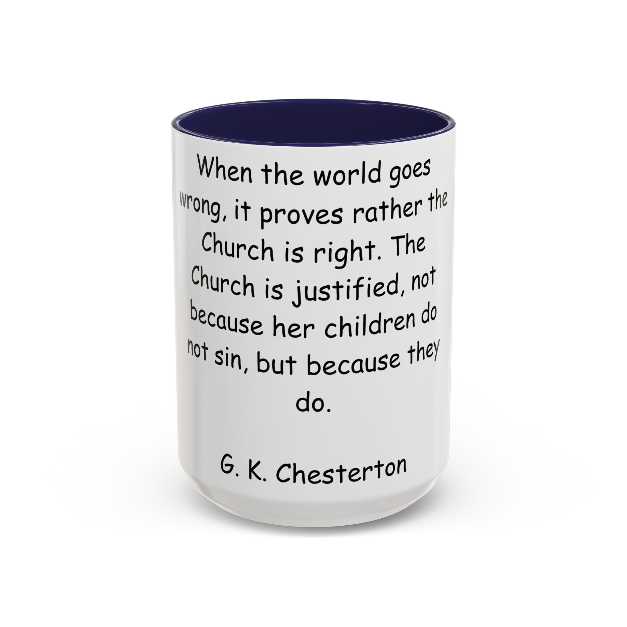Start your day with a touch of inspiration with our Accent Coffee Mug, featuring a thought-provoking quote by G.K. Chesterton. The timeless words stand as a profound reflection on the human condition and spiritual journey.