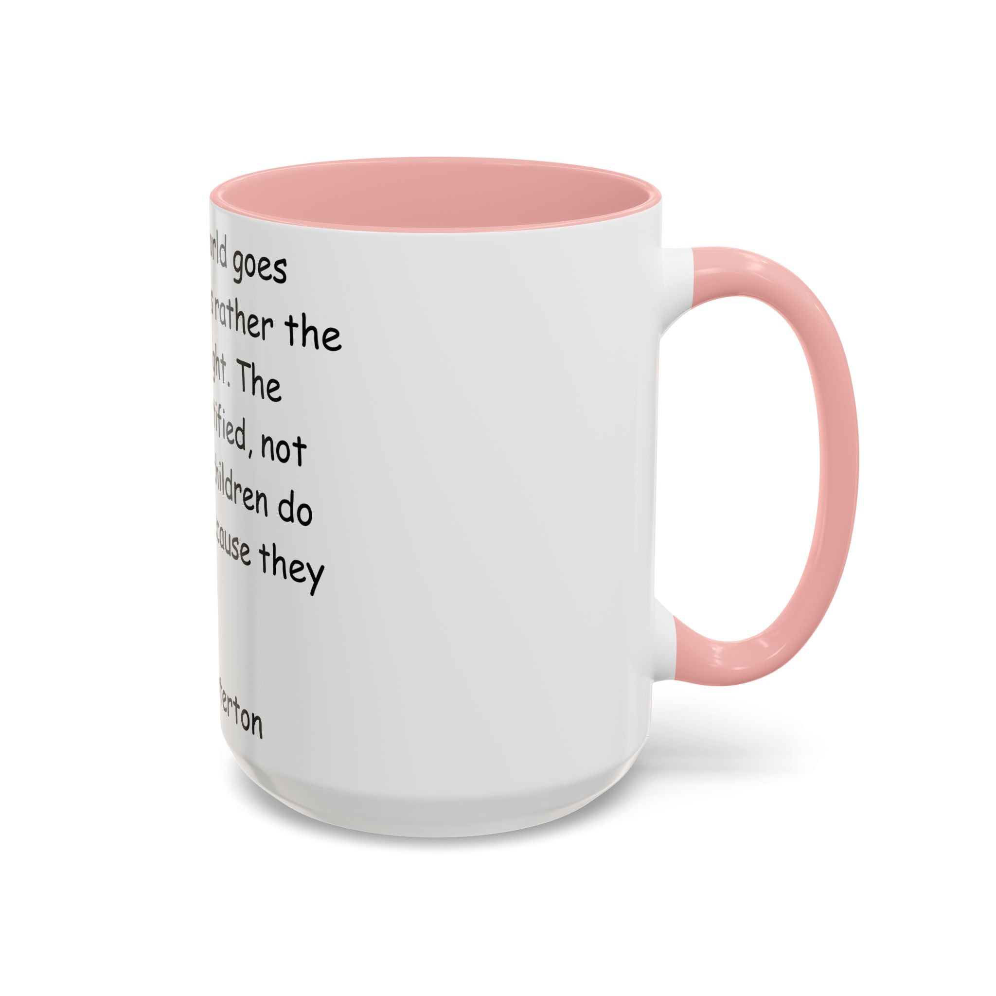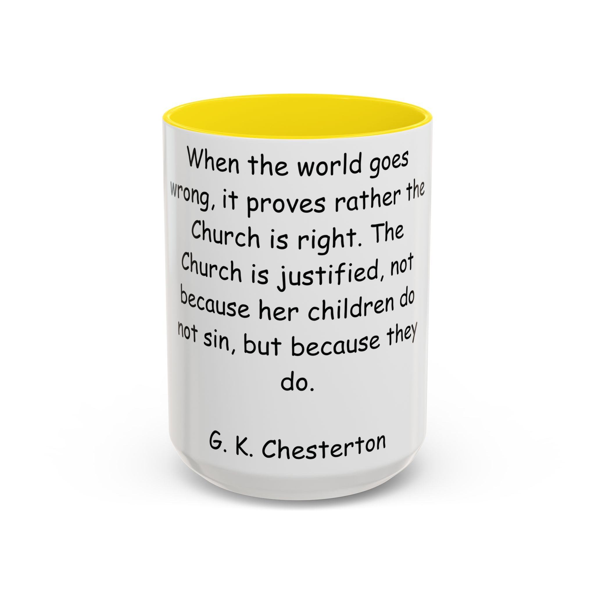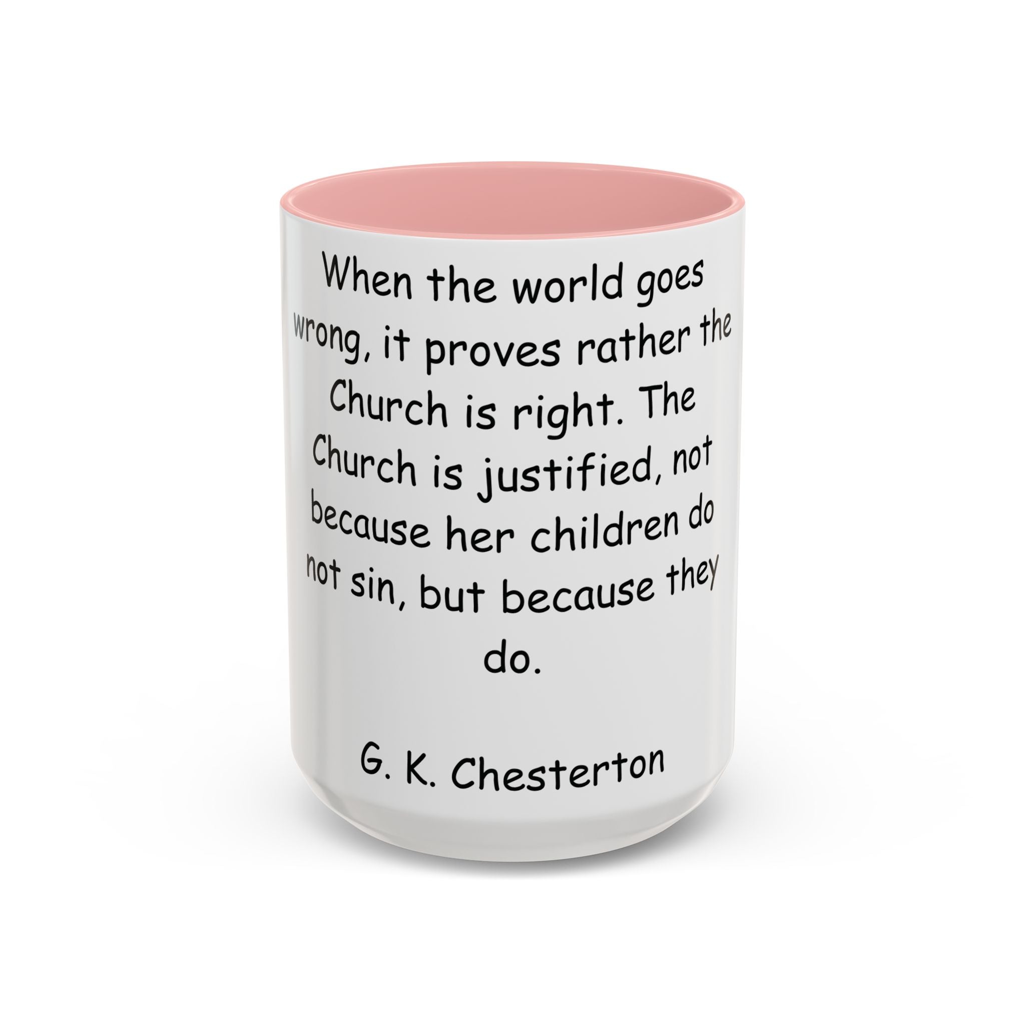 Start your day with a touch of inspiration with our Accent Coffee Mug, featuring a thought-provoking quote by G.K. Chesterton. The timeless words stand as a profound reflection on the human condition and spiritual journey.