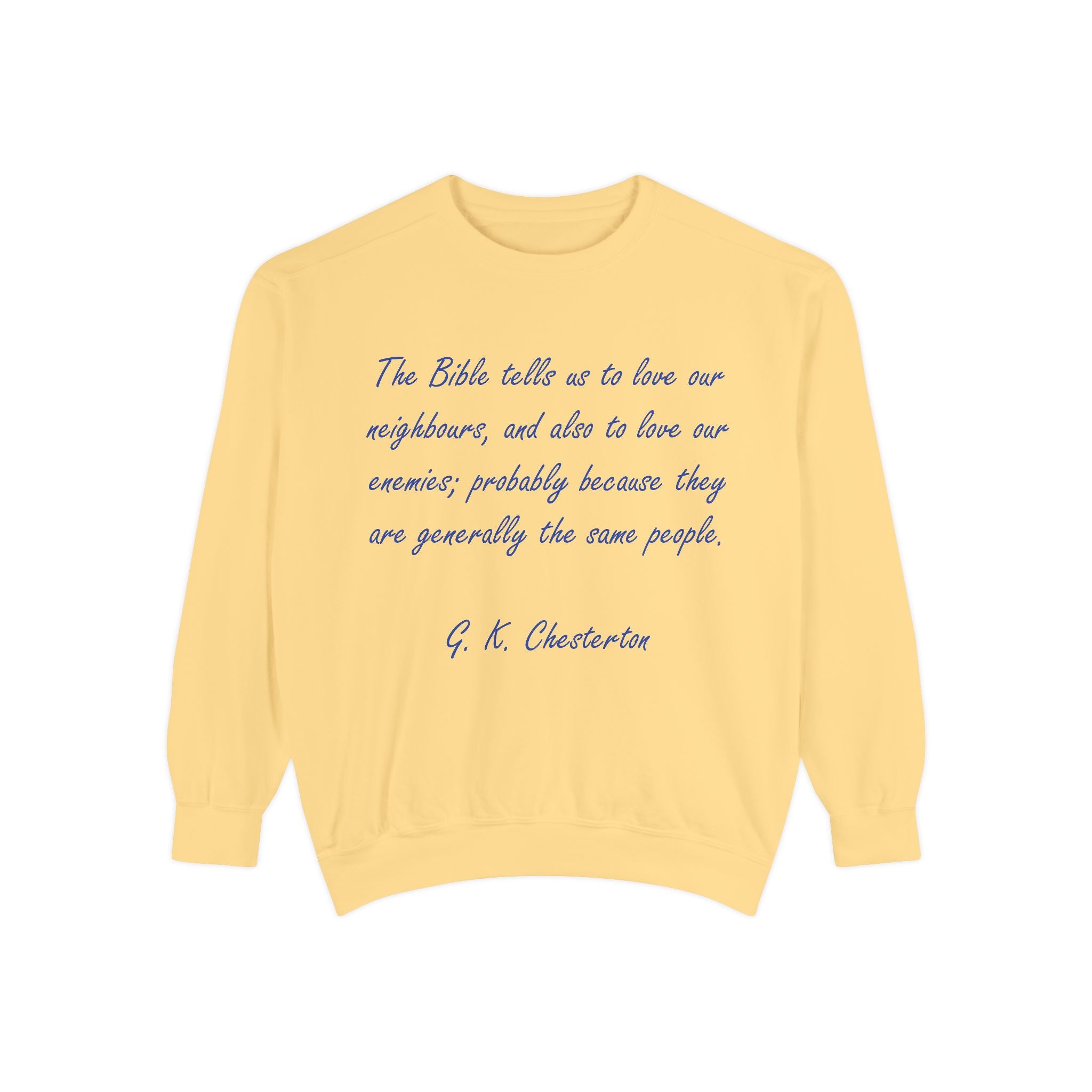 Enhance your wardrobe with this cozy unisex sweatshirt, perfect for lounging at home or casual outings. Its relaxed fit brings a sense of ease while the garment-dyed fabric adds a touch of style. This sweatshirt is designed for those who appreciate comfort without sacrificing aesthetics. Ideal for friends, family, or anyone who enjoys versatile fashion. Wear it on casual Fridays, during cozy movie nights, or while enjoying your weekend adventures. It's also a thoughtful gift for holidays like Christmas, birthdays, or any celebration that calls for a comfy addition to one’s closet.