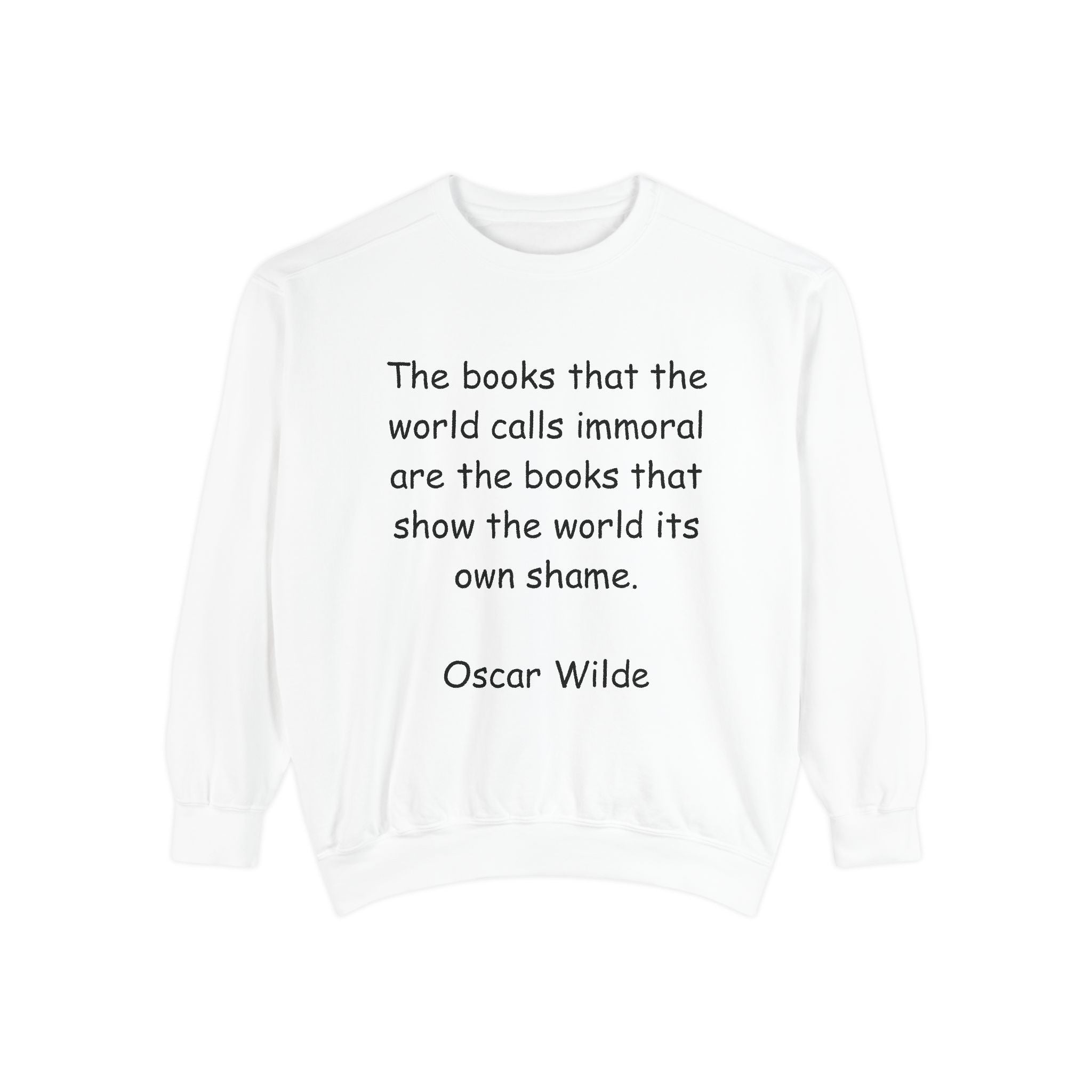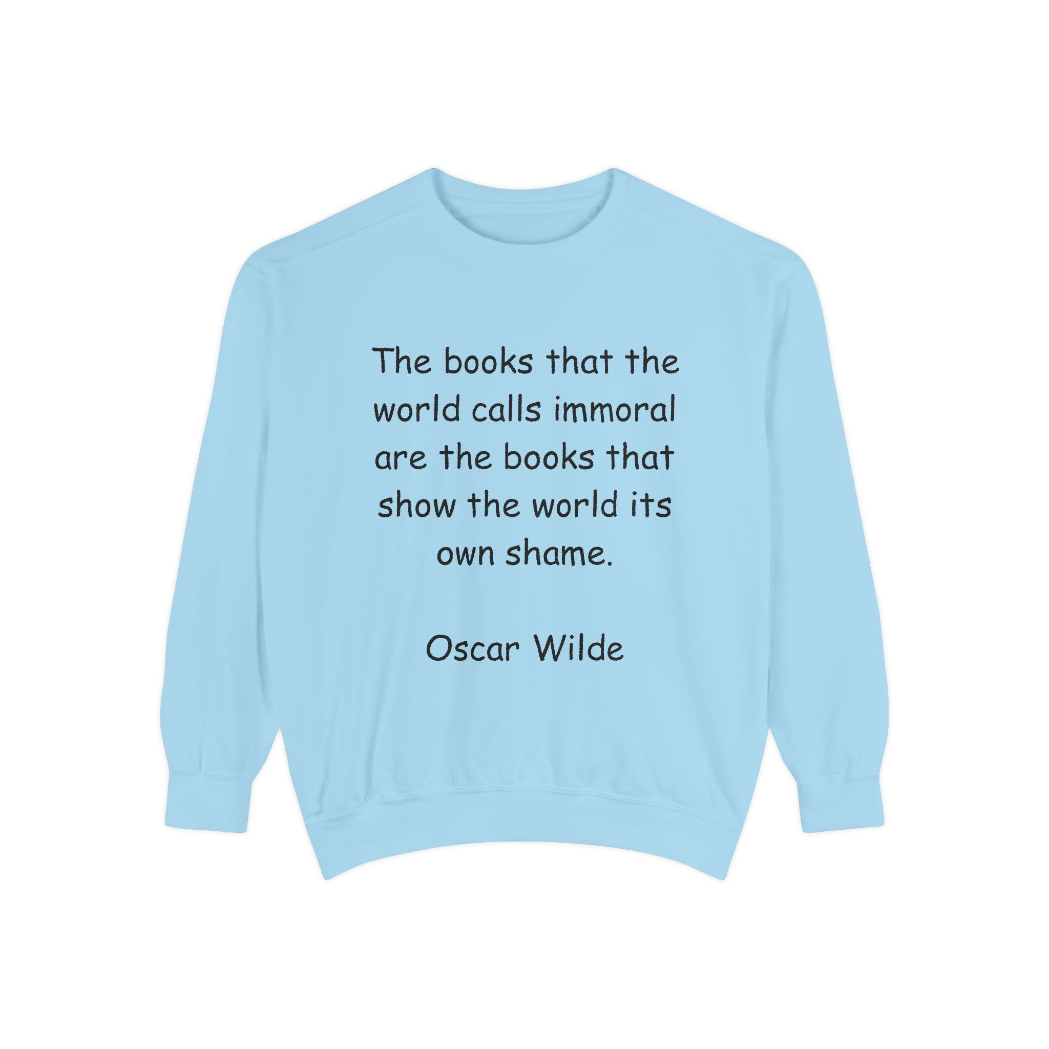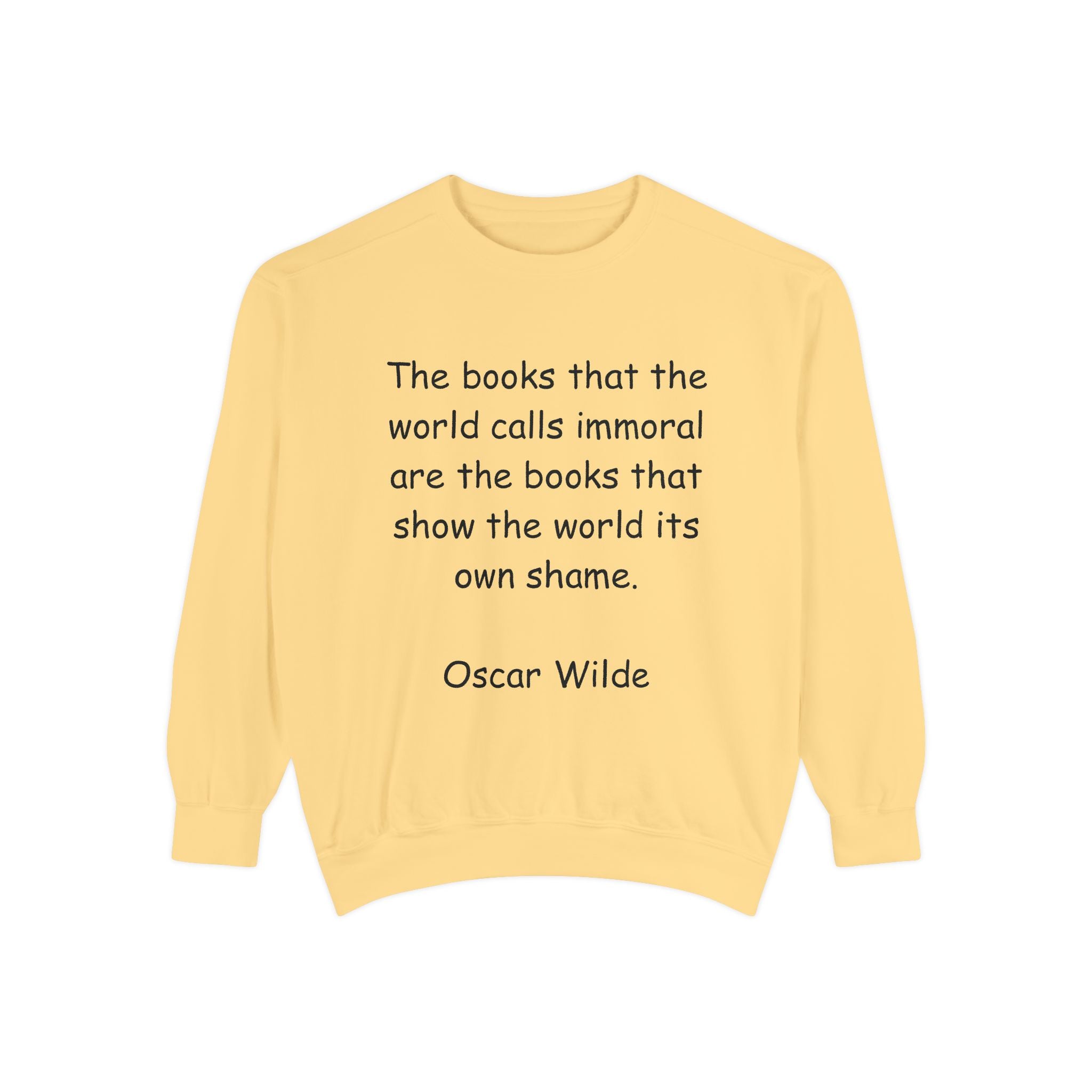 Embrace comfort and style with this cozy unisex garment-dyed sweatshirt. Perfect for book lovers and those who appreciate art, this sweatshirt features an inspiring quote from Oscar Wilde, making it not just a wardrobe staple, but a conversation starter. Ideal for casual outings, cozy nights in, or gifting to friends during holidays and celebrations. Whether you're curling up with a good book or heading out with friends, this sweatshirt will be your go-to piece, bringing warmth to any occasion.