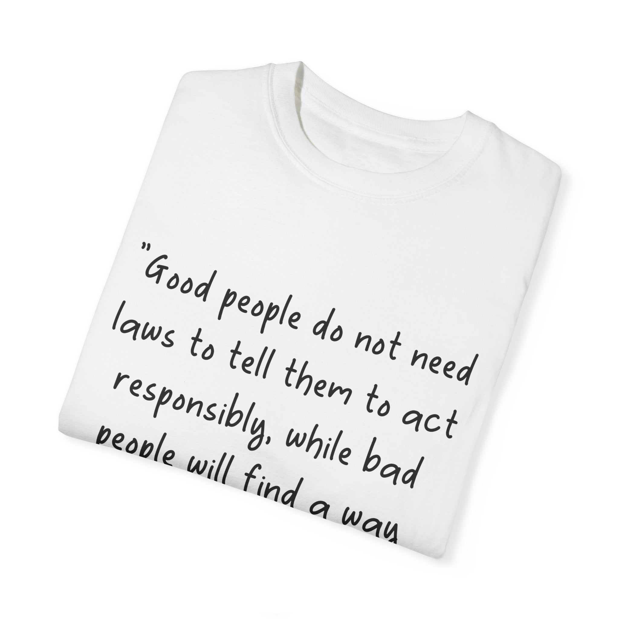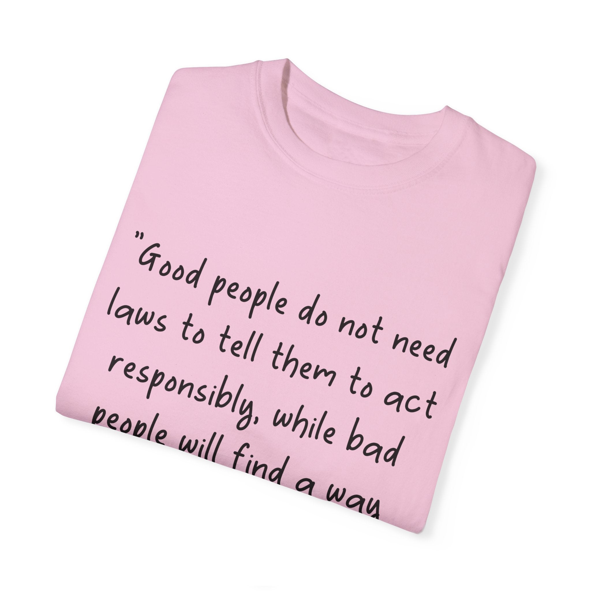Introducing the perfect addition to your wardrobe: a relaxed-fit Unisex Garment-Dyed T-shirt designed for comfort and style. This beautifully crafted tee embodies a laid-back vibe while being versatile enough to suit both casual outings and semi-formal occasions. Ideal for adults looking to express themselves through unique quotes, it can effortlessly be paired with jeans, shorts, or skirts. Great for everyday wear, this shirt serves as an excellent gift for holidays, birthdays, or just because. Whether you're celebrating a special occasion or simply enjoying a casual day out, this t-shirt is a thoughtful choice for students, activists, and anyone who appreciates meaningful designs in their attire.