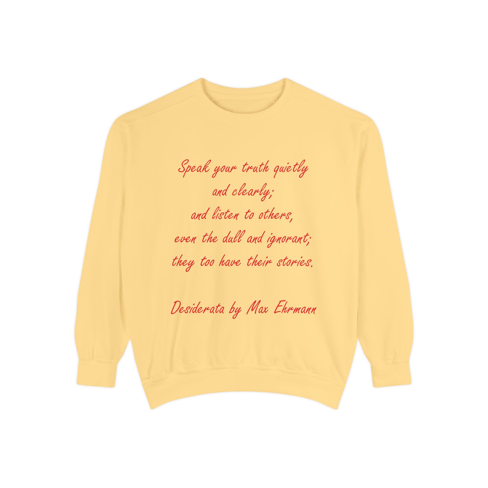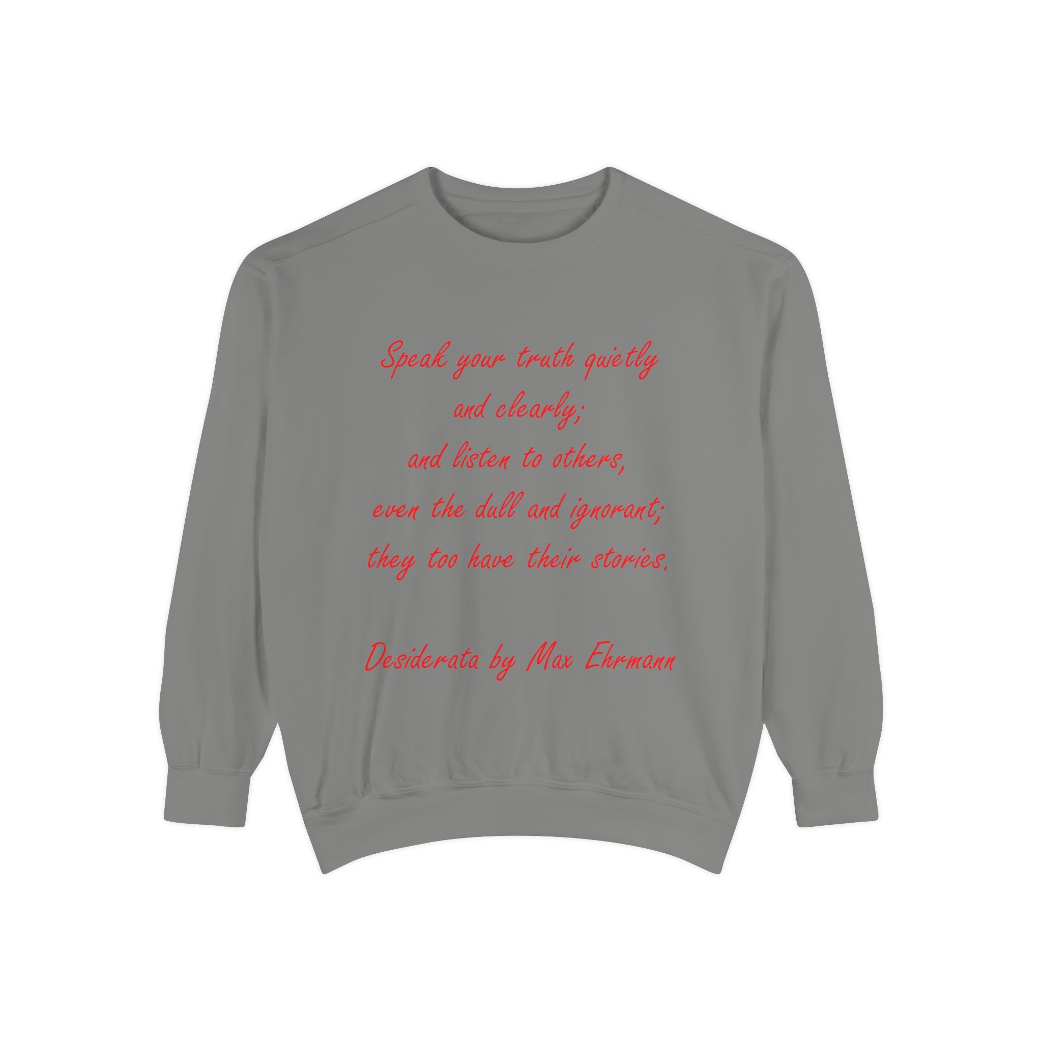 Embrace comfort and style with this unisex garment-dyed sweatshirt. Crafted for a relaxed fit, it’s perfect for cozy evenings at home or casual outings with friends. The subtle and luxurious fabric feels soft against the skin, making it a delightful addition to any wardrobe. Ideal for individuals who appreciate quality and thoughtful design, this sweatshirt resonates with those who enjoy self-expression through fashion. Whether you’re celebrating a birthday, a holiday gathering, or simply treating yourself, this versatile piece serves as a reminder to embrace authenticity and comfort. Its unique design and meaningful inscription make it a heartfelt gift for loved ones or a special treat for yourself. Celebrate any occasion with ease and style, knowing this sweatshirt fits seamlessly into your lifestyle.