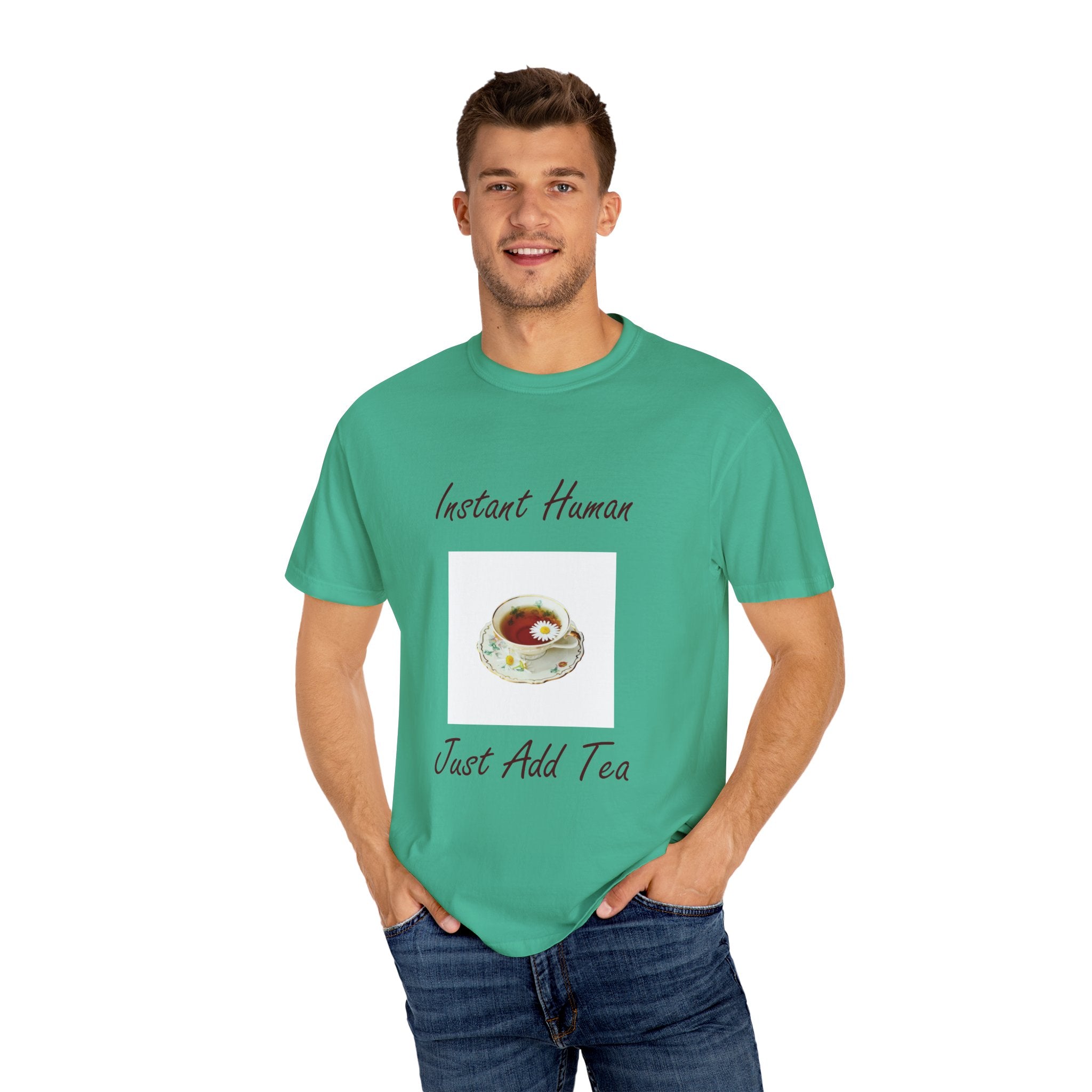 Introduce a touch of whimsy to your wardrobe with this delightful Unisex Garment-Dyed T-Shirt. Perfect for tea lovers, this shirt radiates warmth and comfort, making it an ideal choice for casual outings or relaxed gatherings at home. With its playful slogan, it’s a great conversation starter and adds a dash of personality to your everyday ensemble. Whether you're enjoying a cozy afternoon with friends or gifting it to a fellow tea enthusiast, this t-shirt captures the essence of comfort and joy. Relevant for holidays like National Tea Day or as a quirky gift for birthdays and celebrations, it's a must-have for anyone who appreciates a good cup of tea.