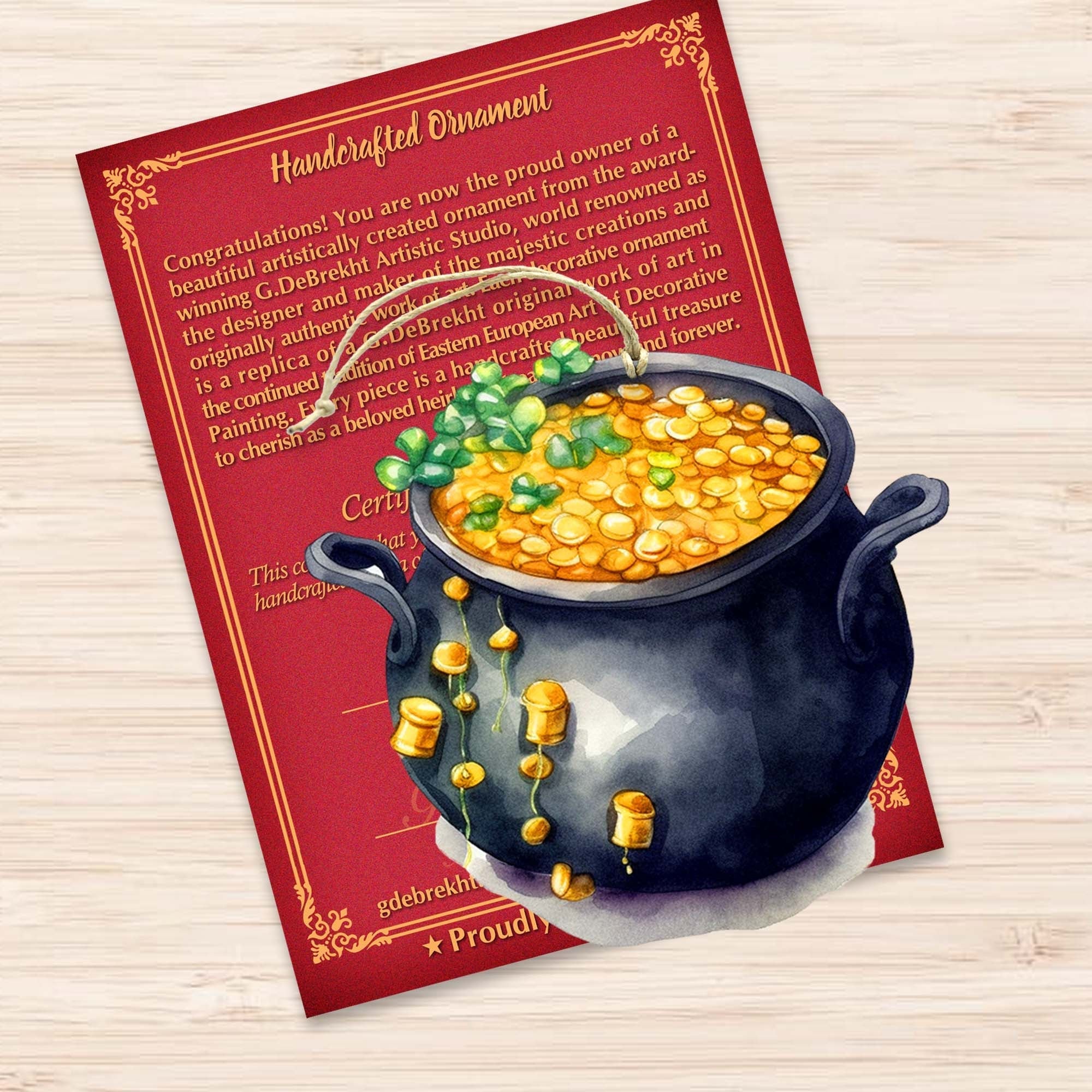 Add a touch of Irish charm to your Spring Decor with these beautiful wooden ornaments by G. DeBrekht. Each ornament is expertly handcrafted and features traditional Irish designs, making them perfect for your holiday celebrations. Bring luck and joy to your home with these unique and festive decorations.