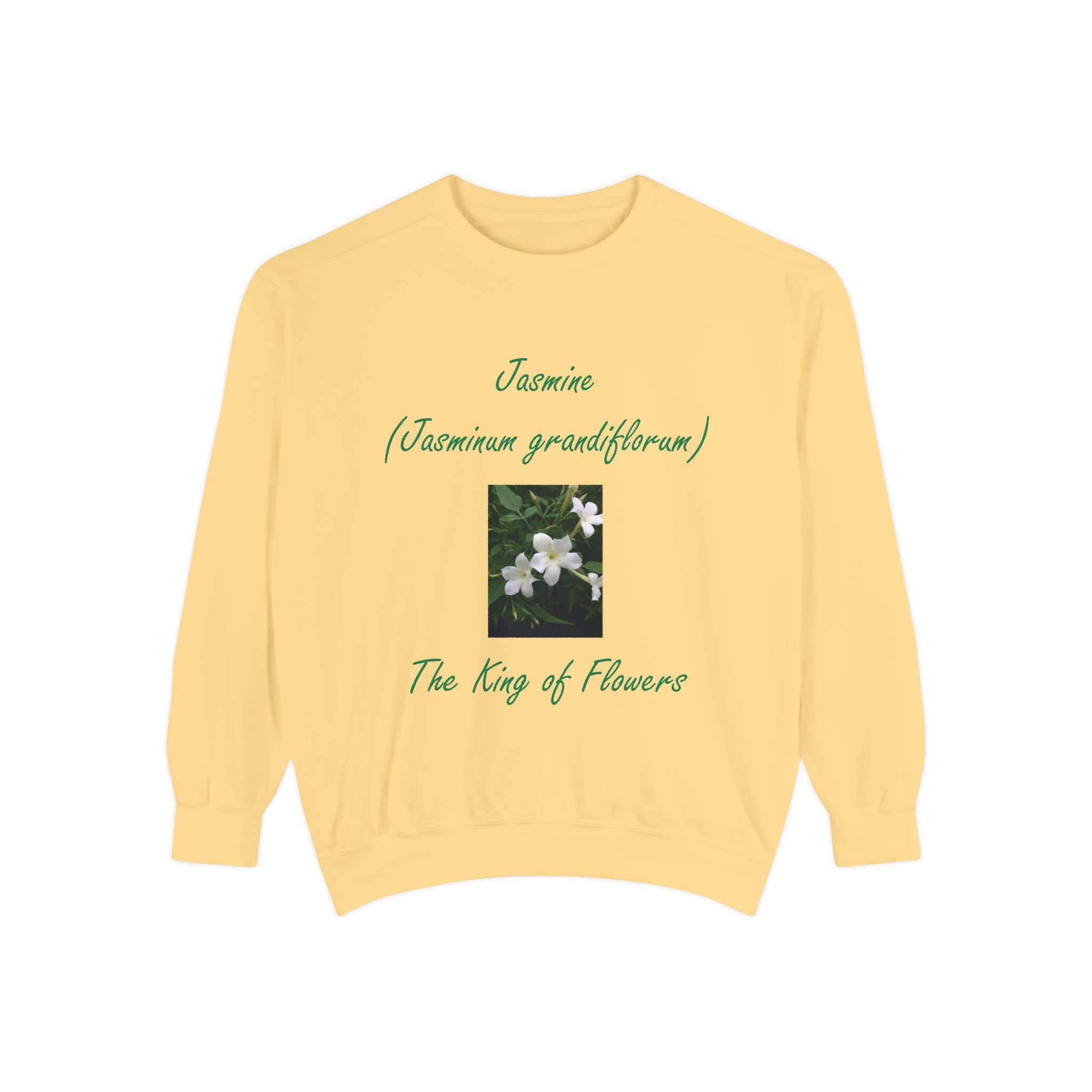 Introducing our cozy Unisex Garment-Dyed Sweatshirt, perfect for any laid-back day or a stylish night out. This sweatshirt radiates a relaxed vibe, making it an ideal addition to your everyday wardrobe. It’s perfect for those who appreciate comfort and want to stay chic while expressing their personal style. Whether you're lounging at home, meeting friends for coffee, or enjoying a casual day outdoors, this sweatshirt fits seamlessly into any scenario. It’s great for gifting during holidays like Christmas, birthdays, or just as a thoughtful surprise for someone special. Perfect for plant lovers and botanical enthusiasts, this piece showcases the beauty of jasmine, celebrating nature's elegance. Wear it on cozy evenings in or during seasonal outings and feel the allure of chic comfort every time.