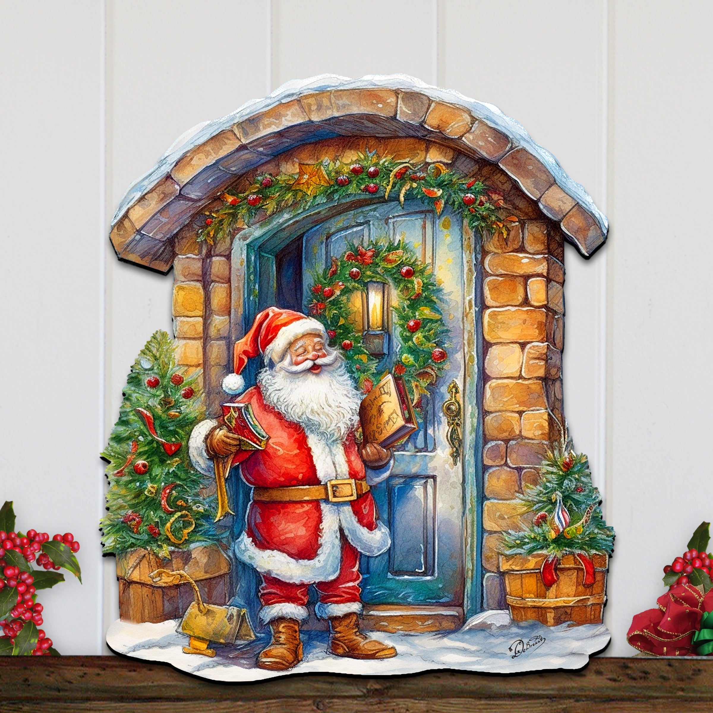 A true holiday classic, the Joyful Moments at the Doorstep Door Decor by G. Debrekht is a perfect addition to your home this Christmas season. Capturing a festive Santa knocking at the door, this unique décor is crafted with vibrant colors to add a cheerful and whimsical touch to your front entryway. Enjoy a joyful welcome every time you enter your home this holiday season.