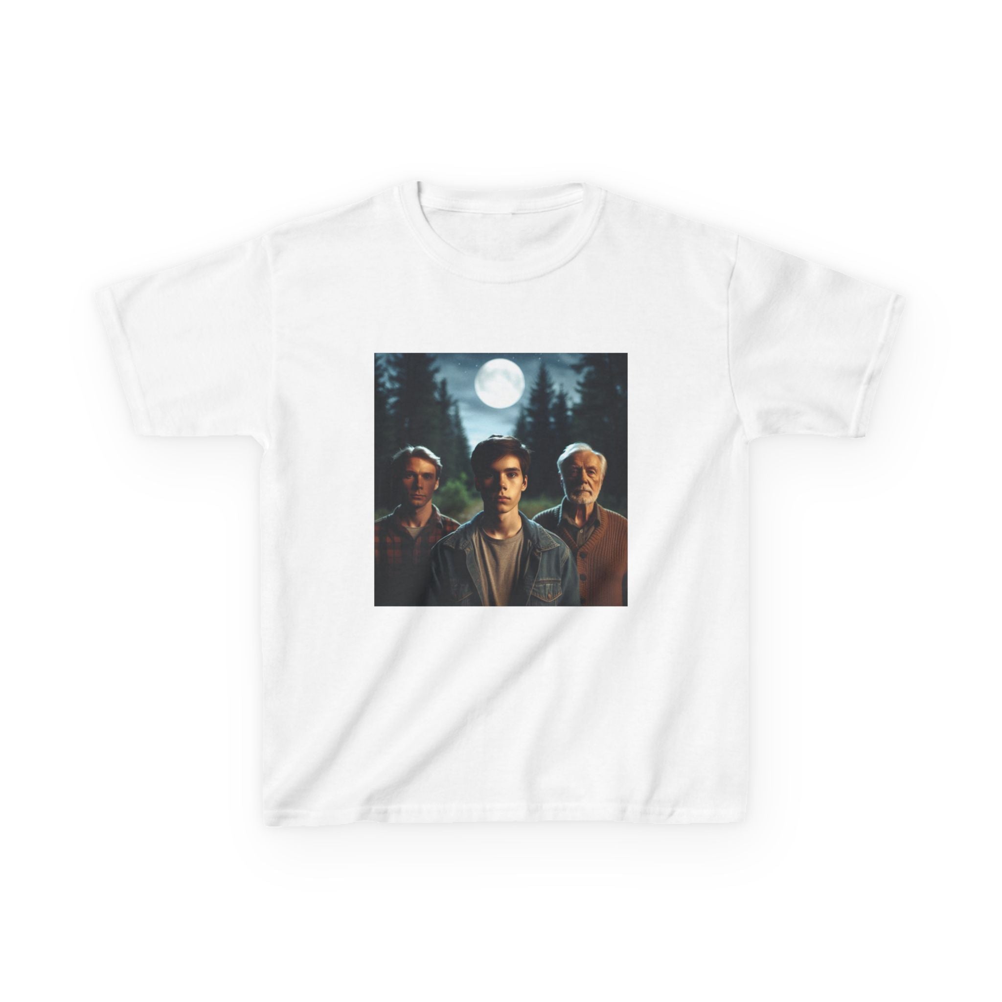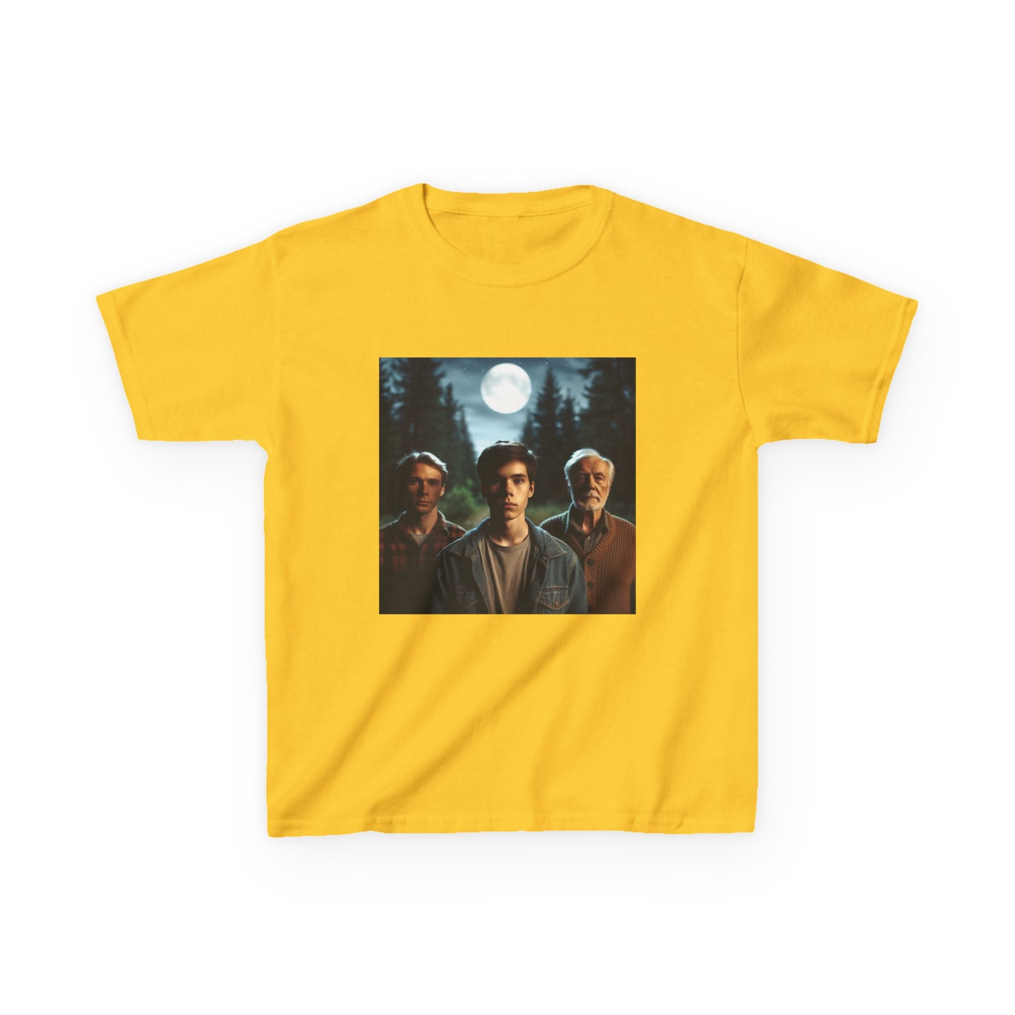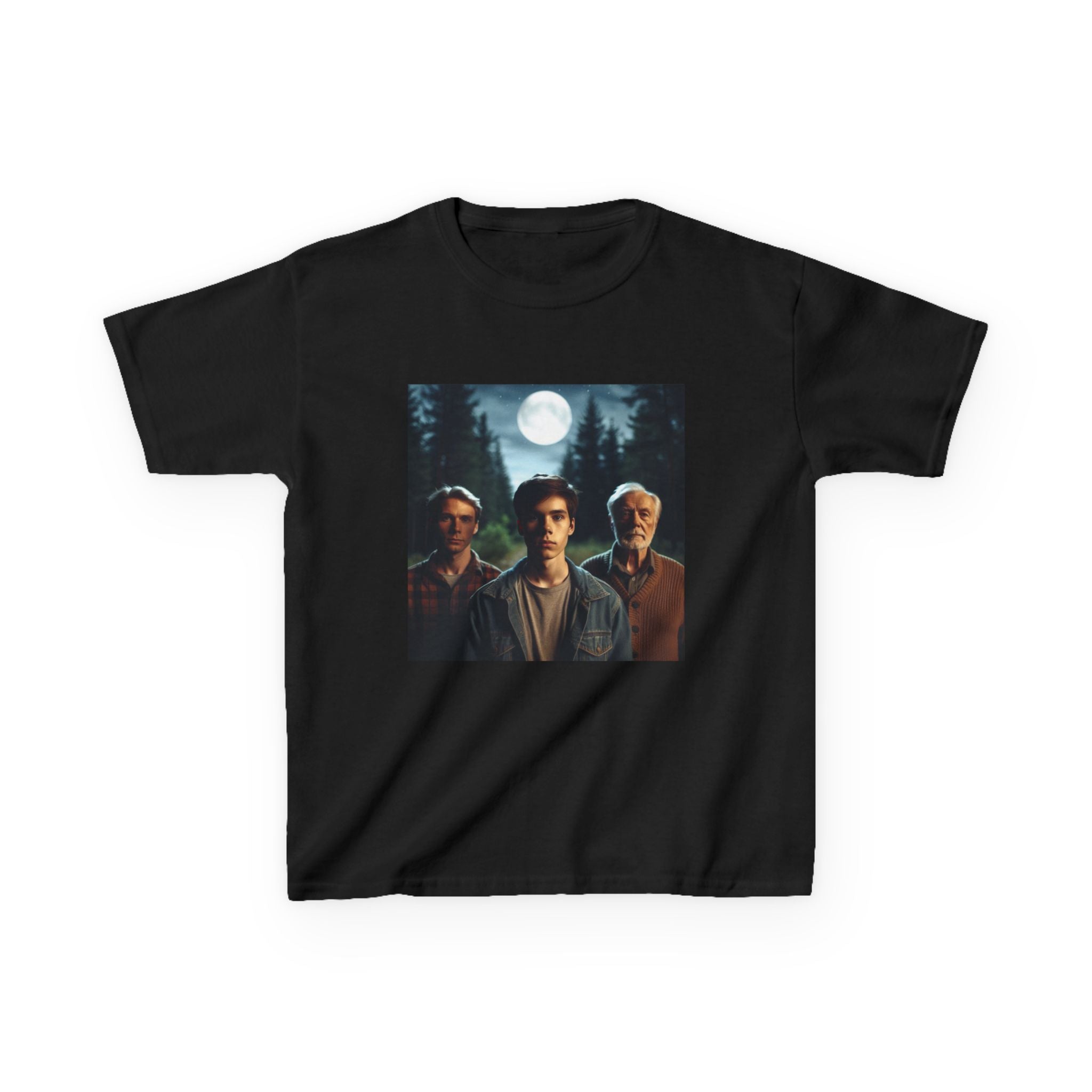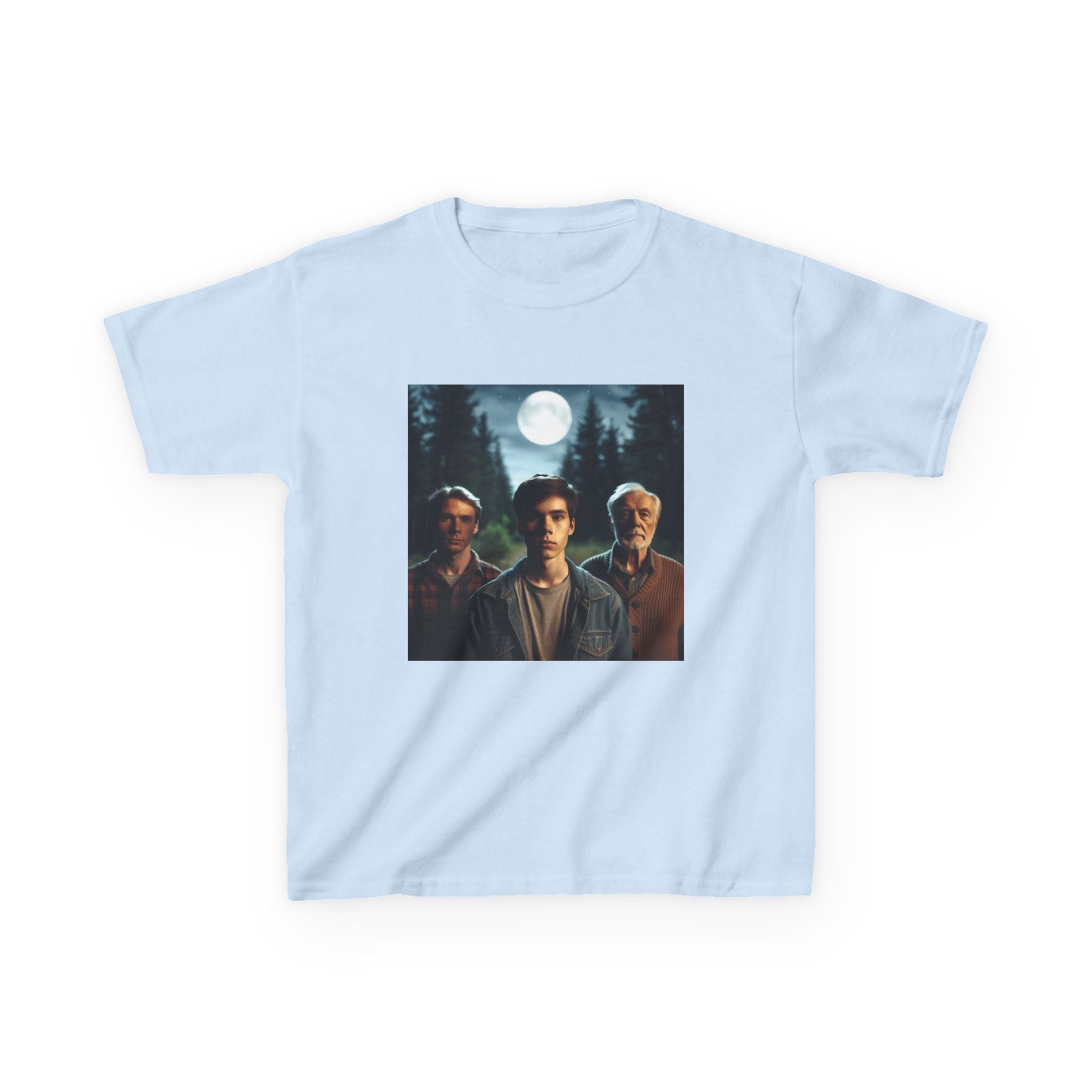 Spark imagination and celebrate connection with this Kids Heavy Cotton™ Tee, featuring an extraordinary AI-generated design inspired by the Wiccan God in his three aspects: the Youth, Father, and Sage. Set in a tranquil forest clearing beneath a luminous full moon, the artwork vividly portrays the timeless balance of youth, maturity, and wisdom. Moonlight gently illuminates the figures, emphasizing their bond with nature and the spiritual energies of the night, evoking harmony and reverence for the cycles of life.