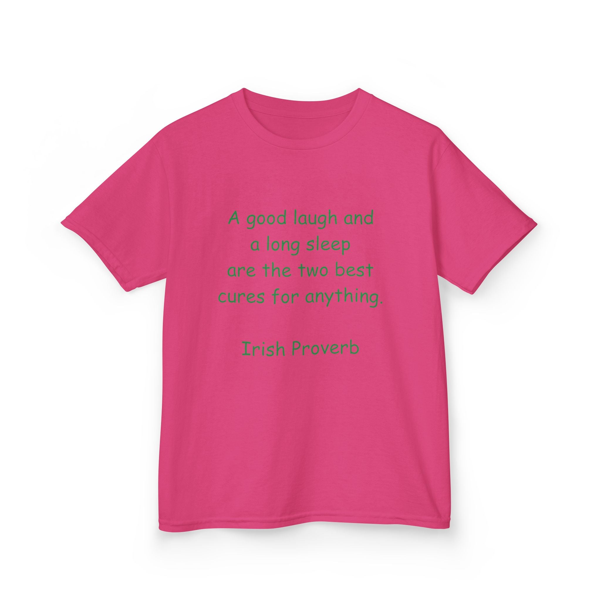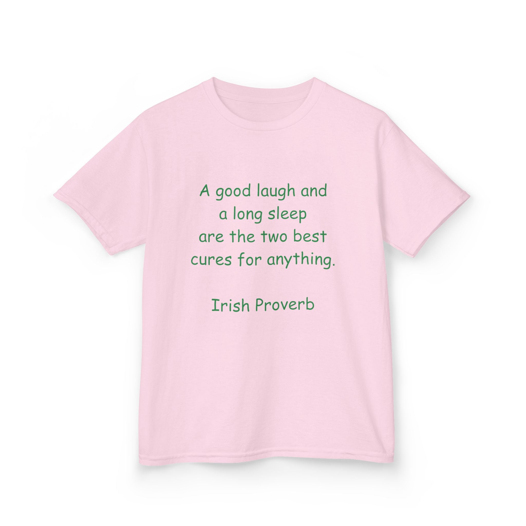 Kids Irish Proverb Tee – “Laugh & Sleep” – Comfy Cotton Shirt