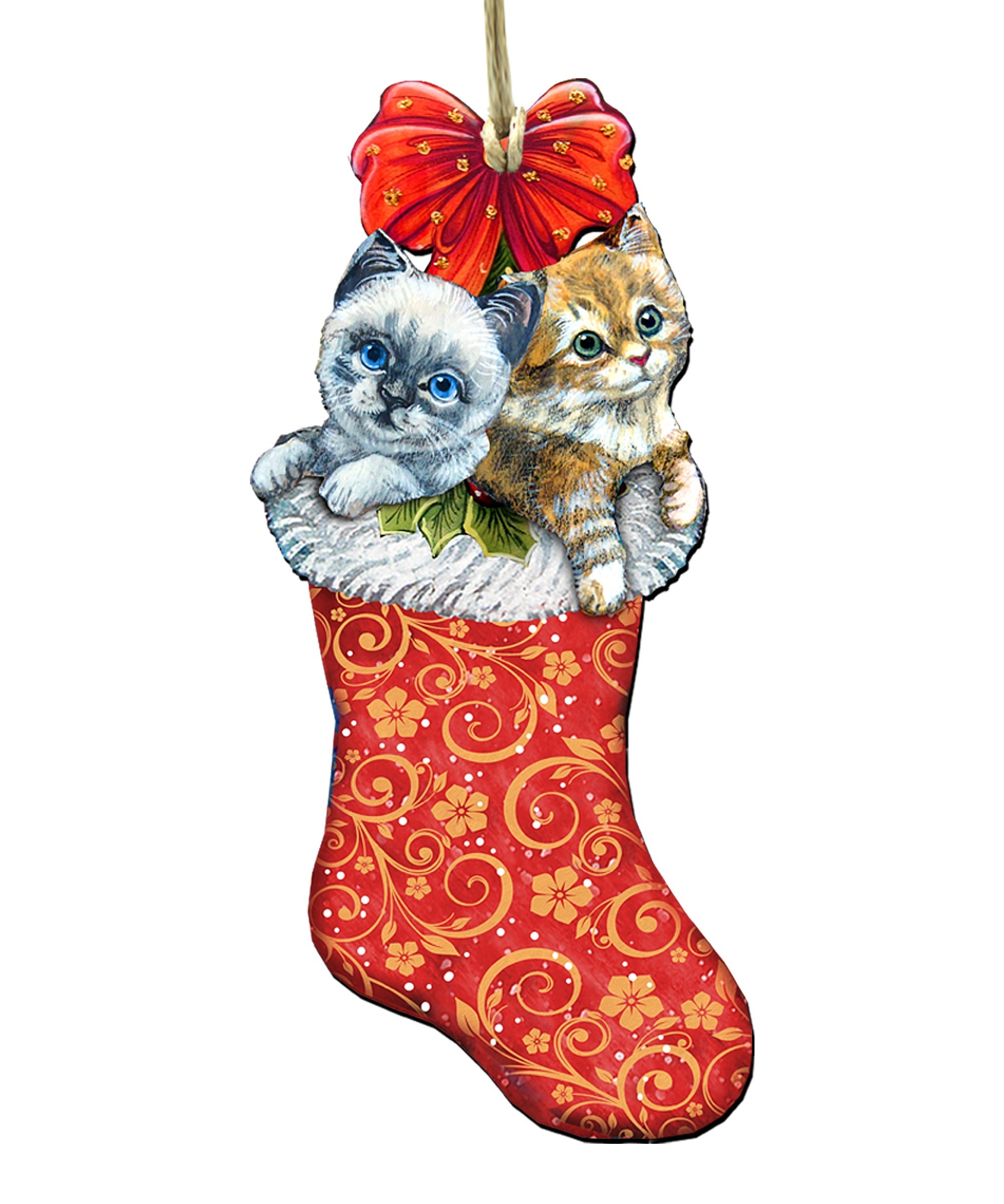 This beautiful Kitty Cats Stocking door hanger makes an elegant addition to your Seasonal and Holiday Decorations. This Front Door Christmas Decorations Decoration easily hangs on your front door to welcome guests. Handmade in the USA.